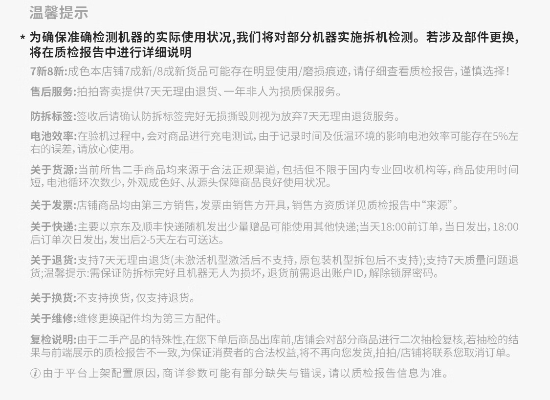 小米CC9系列 安卓 二手手机 颜色参考质检报告 内存参考质检报告