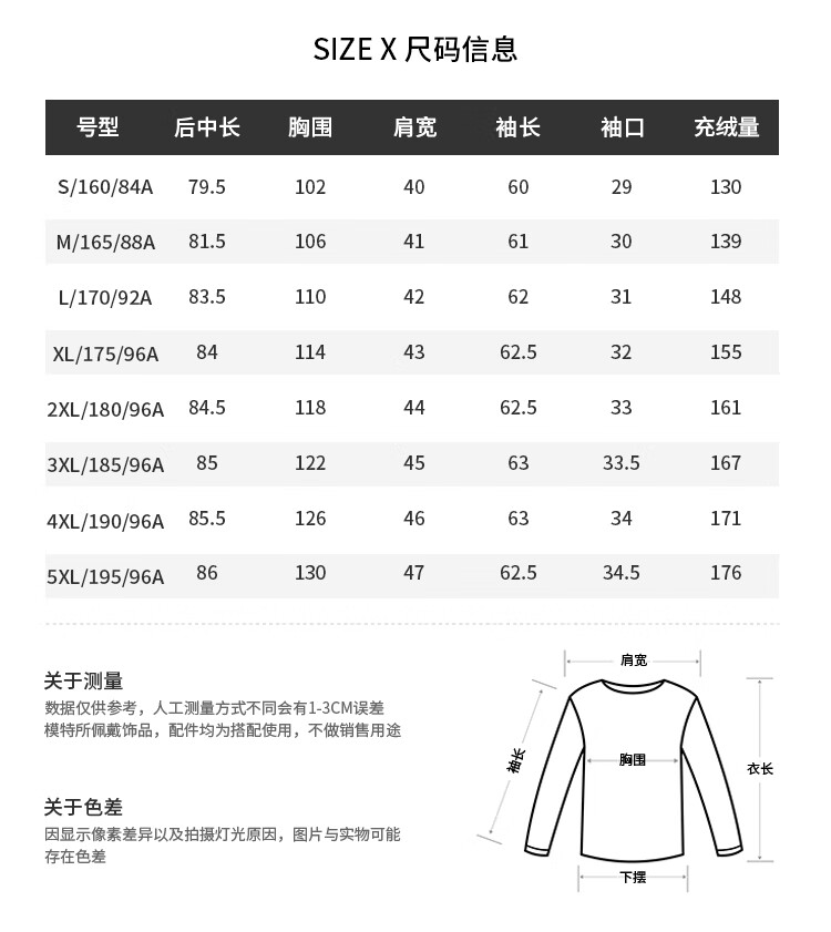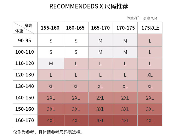 China (cm) 160-165/84-86 165-170 / 88-90 167-172 / 92-96 168-173 / 98-102 170-176 / 106-110