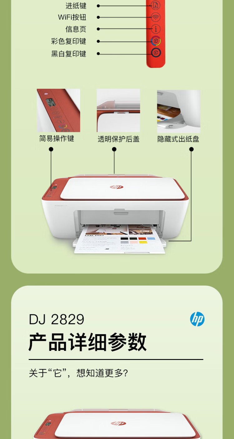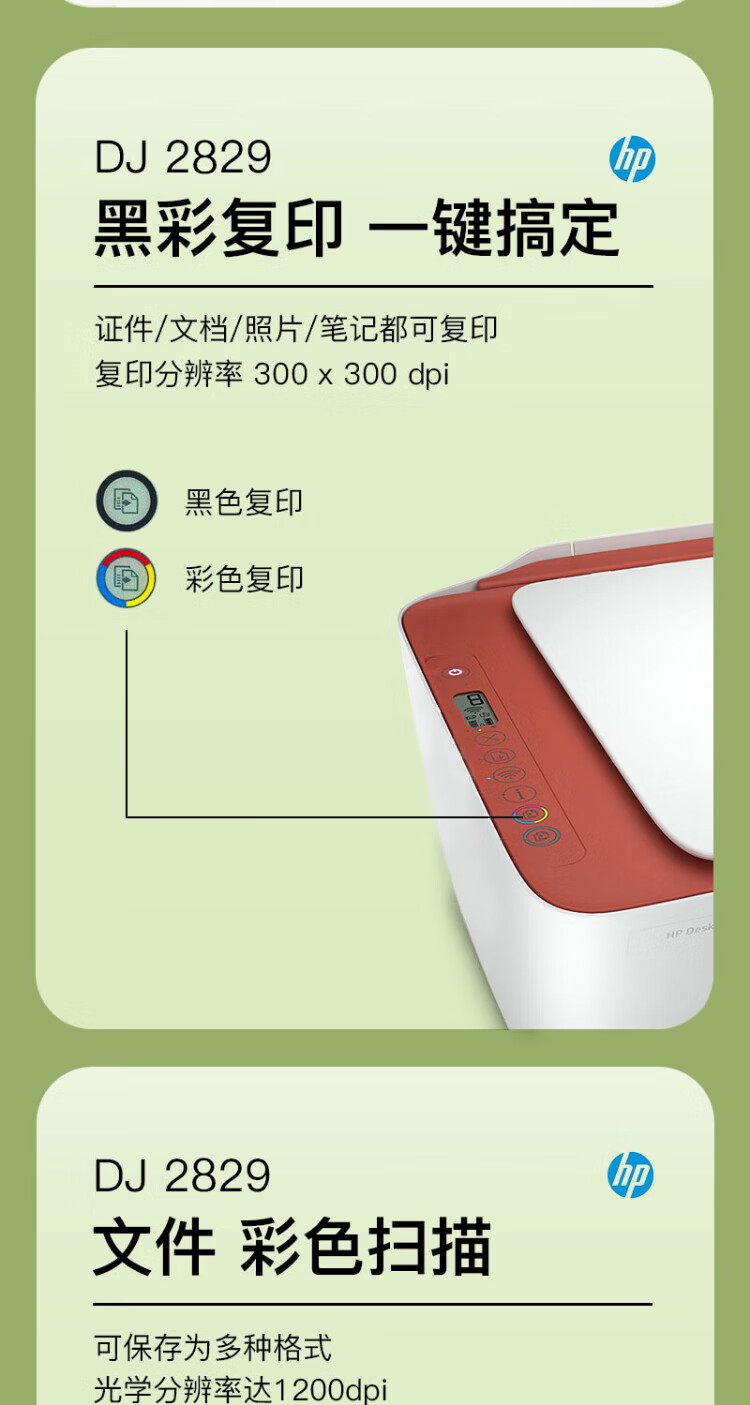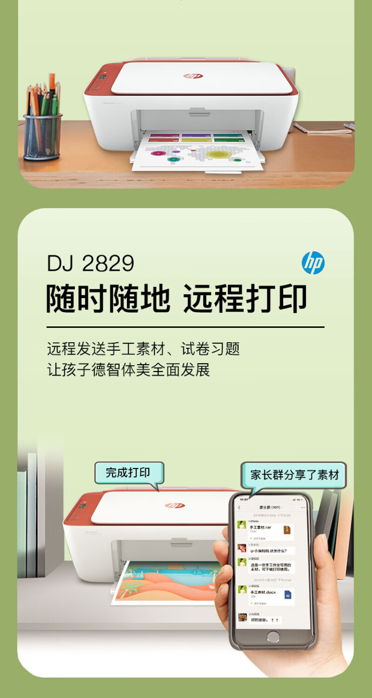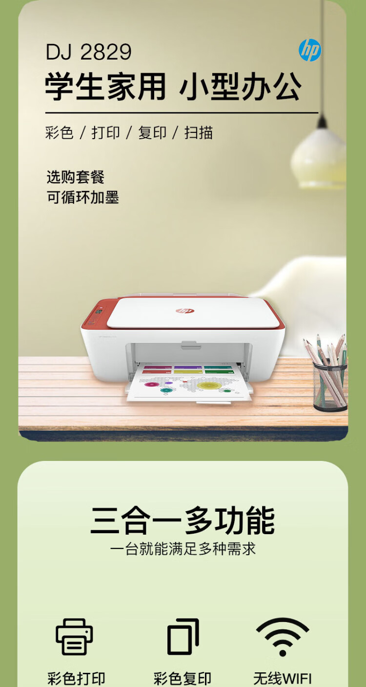 惠普(HP)2829/2729A4彩色喷墨学生打印机家用办公照片无线打印复印扫描一体机 2829新品上市(无线+打印复印扫描)远程打印 套餐四(单彩色易加墨墨盒+红黄蓝墨水各1瓶)