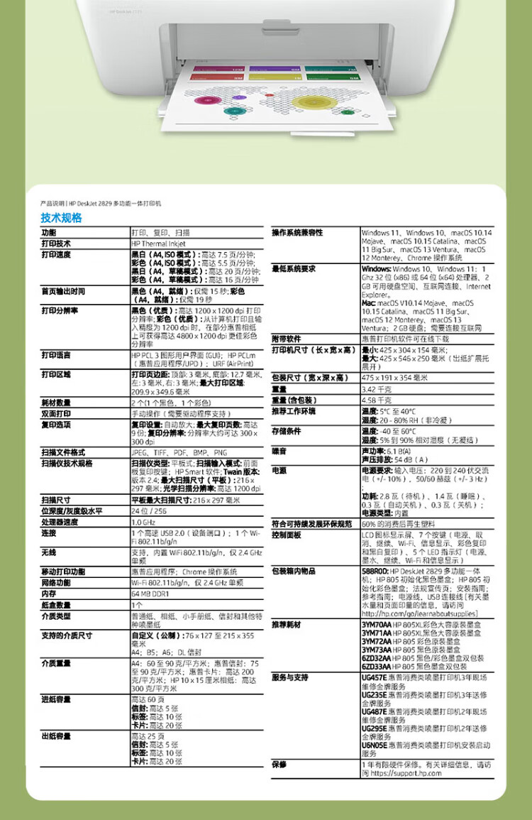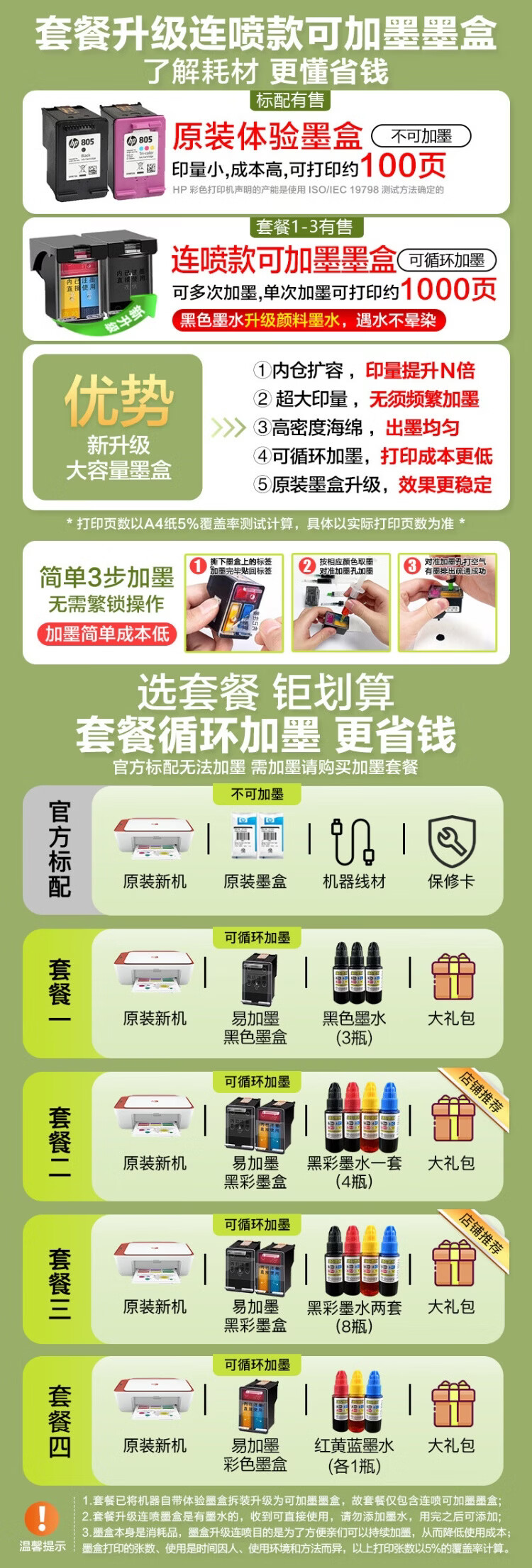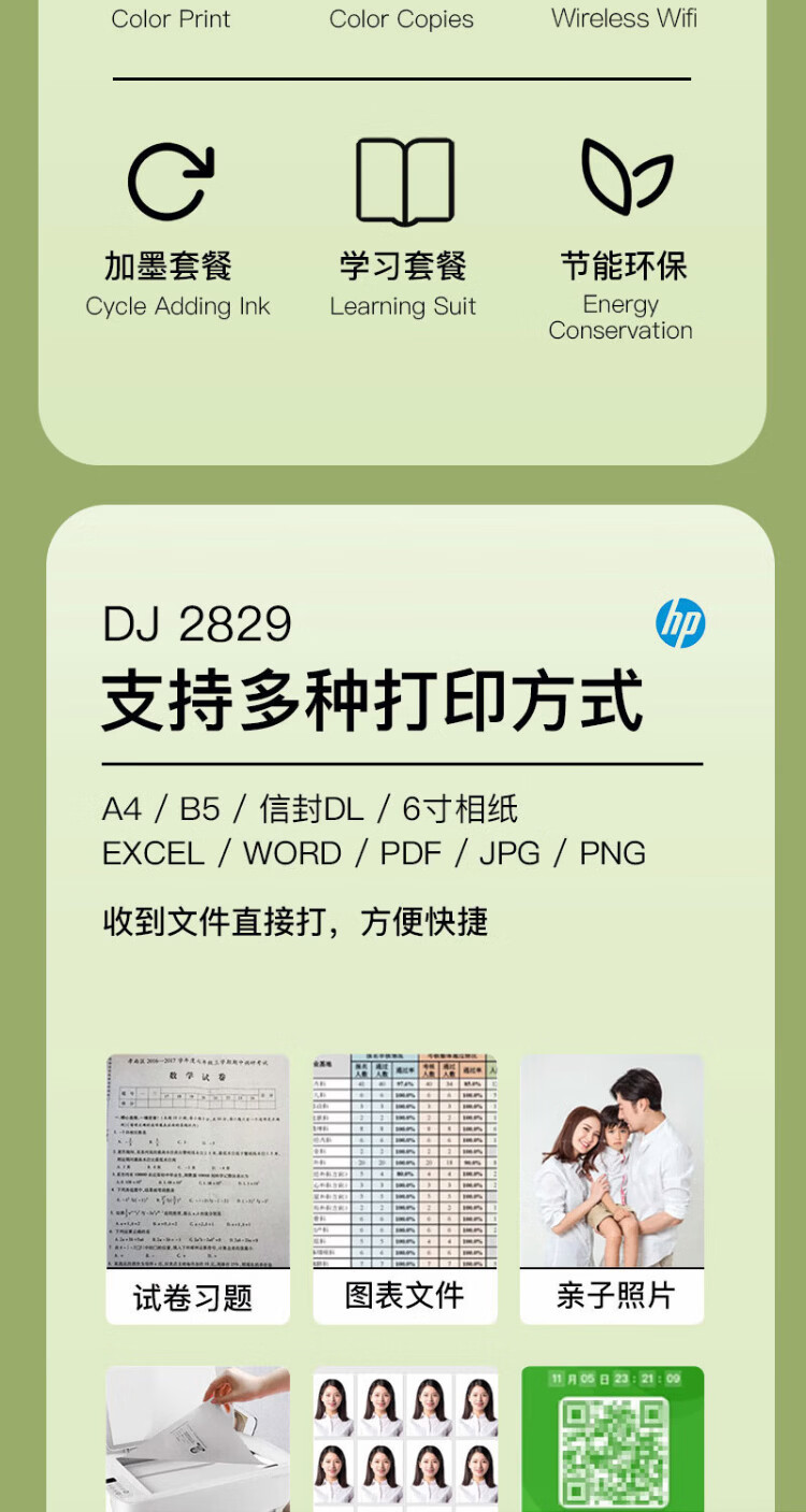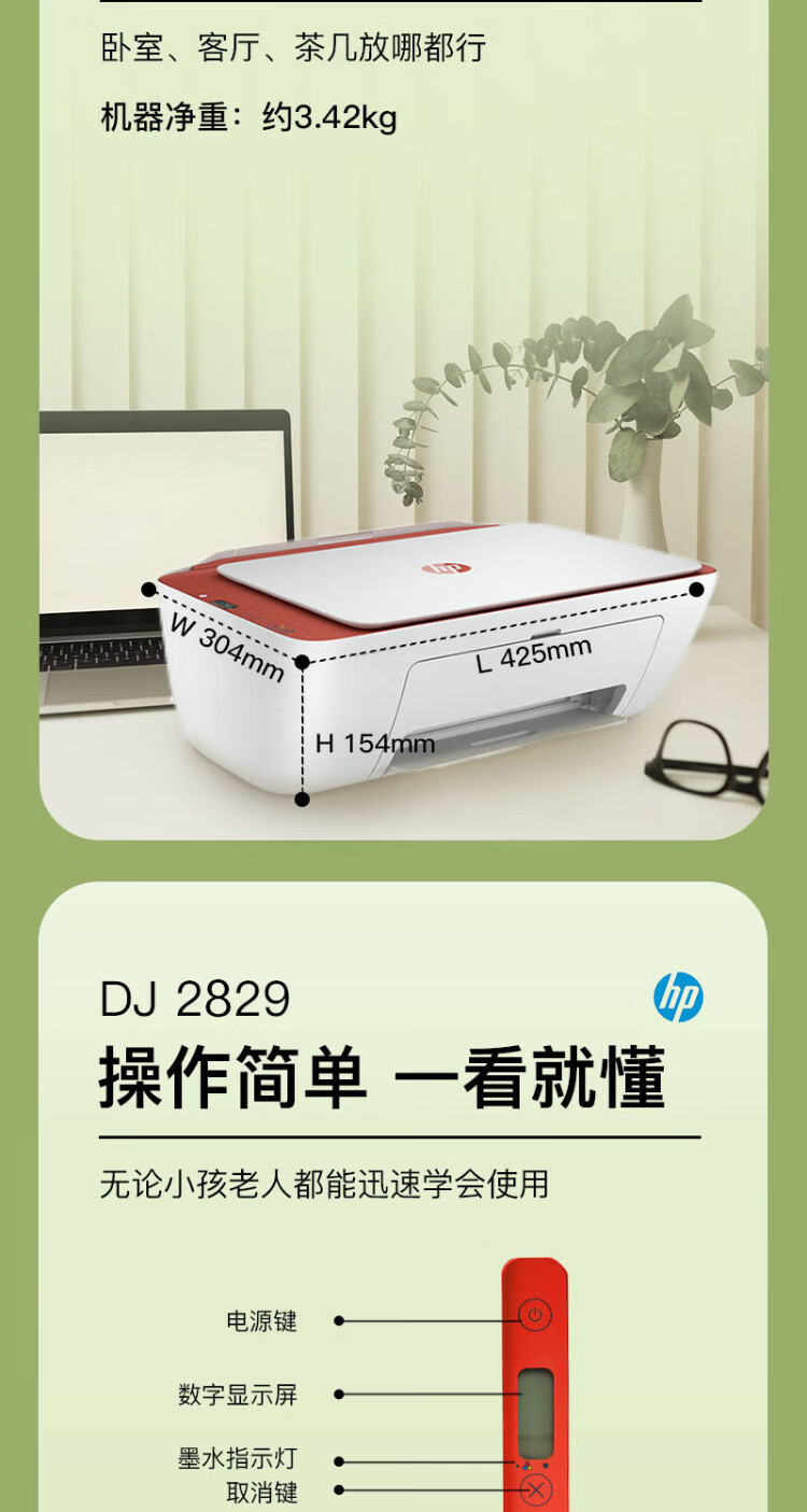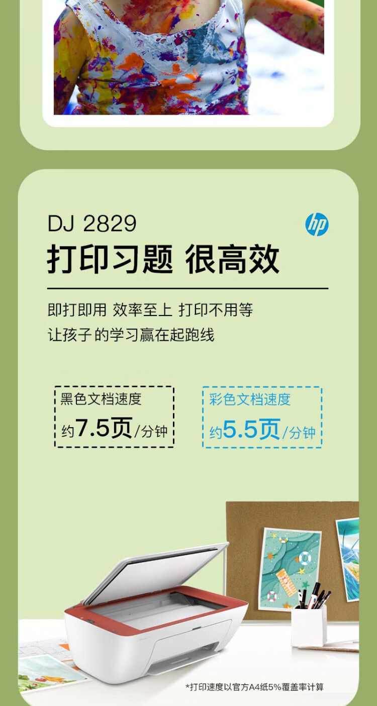惠普(HP)2829/2729A4彩色喷墨学生打印机家用办公照片无线打印复印扫描一体机 2829新品上市(无线+打印复印扫描)远程打印 套餐四(单彩色易加墨墨盒+红黄蓝墨水各1瓶)