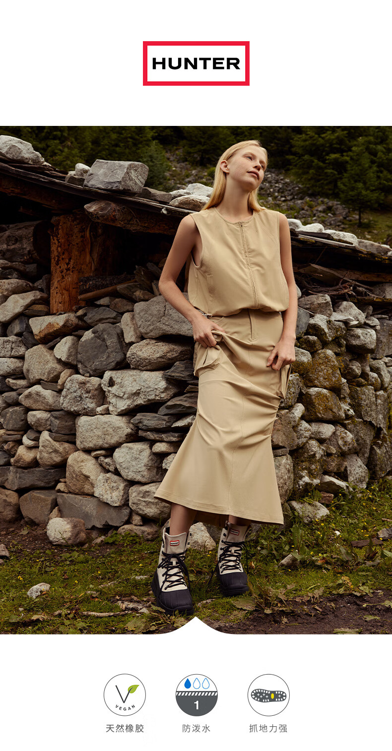 HUNTER女鞋猎鸭靴沙漠靴防滑靴高帮短靴防泼水橡胶大底废土风马丁靴登山 象牙白/CTB 36