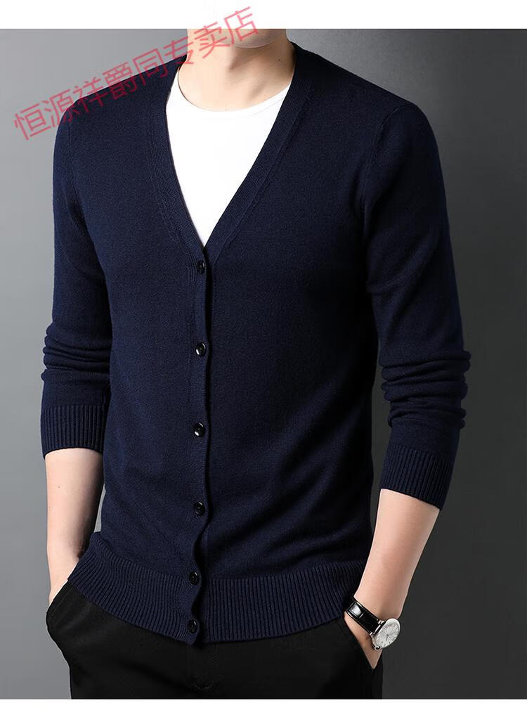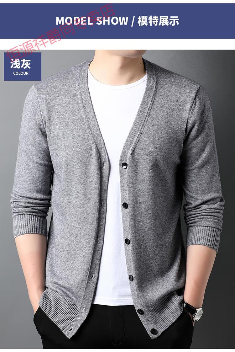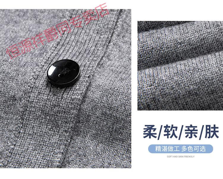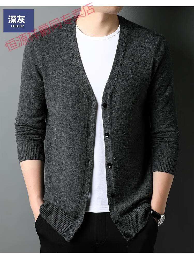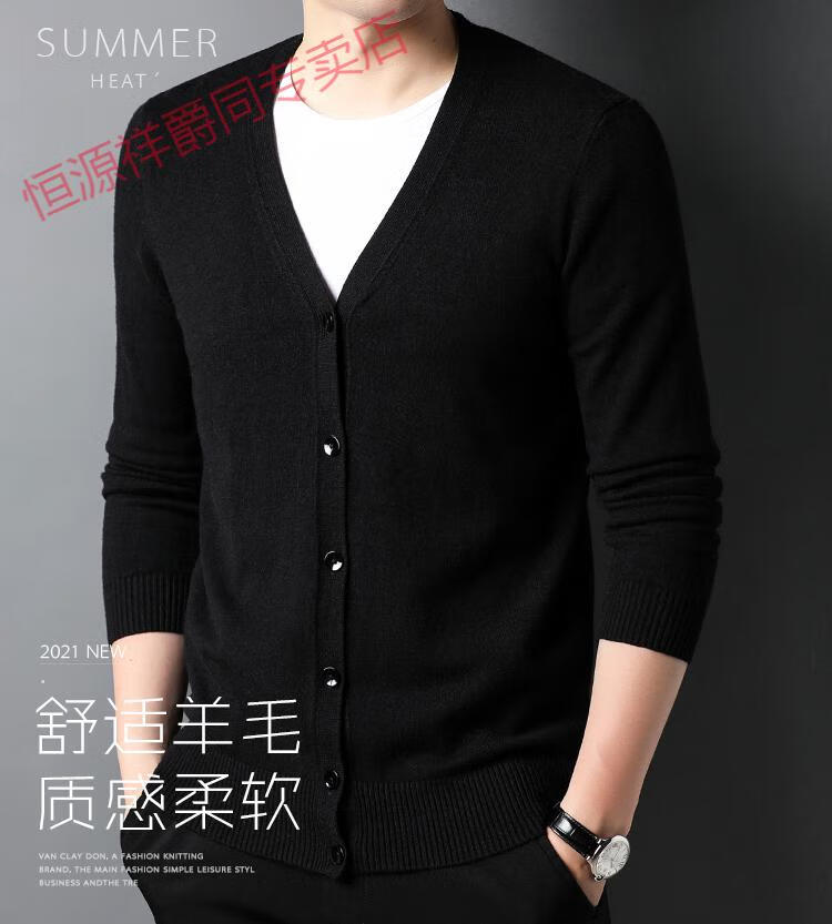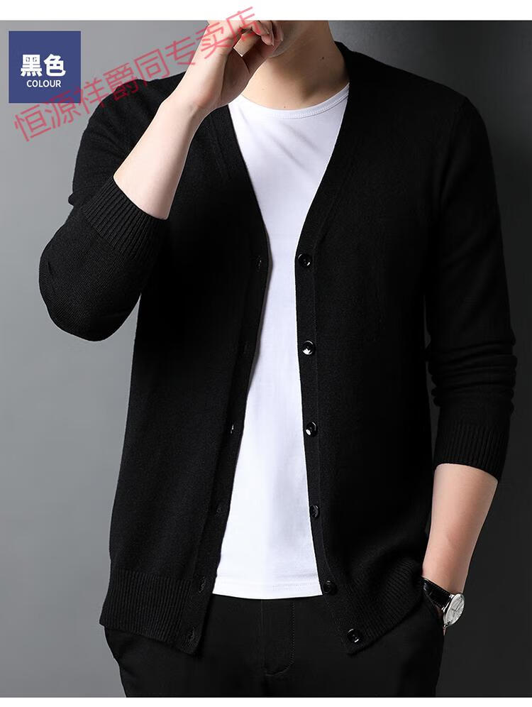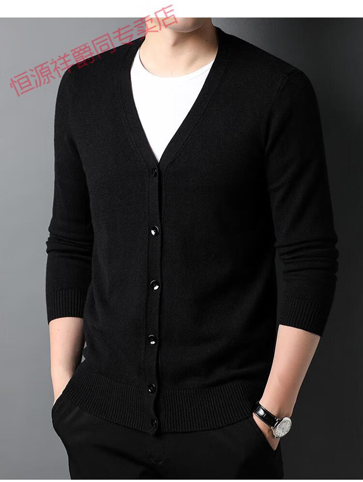恒源祥开衫毛衣男士加厚外套秋季开口羊毛秋装男式纯色外穿对襟针织衫男 黑色 S 165 (合适95-120斤穿)