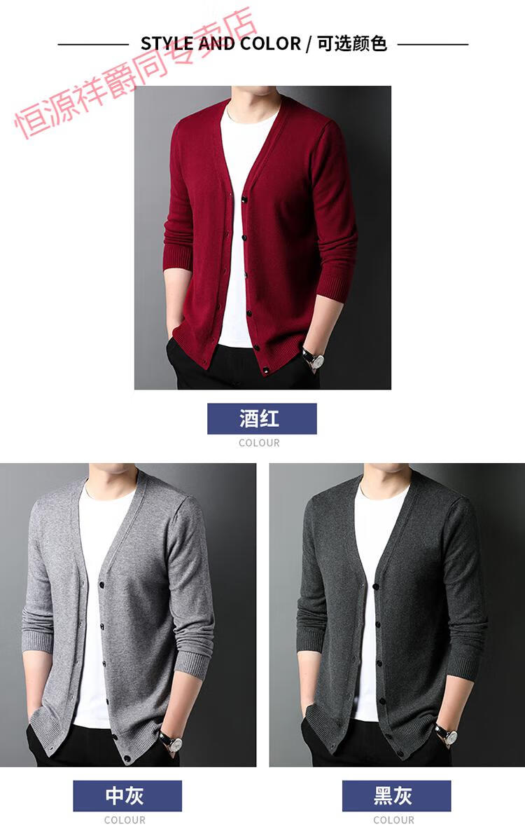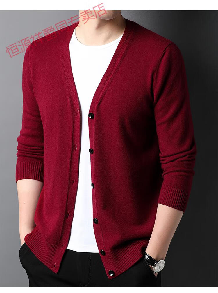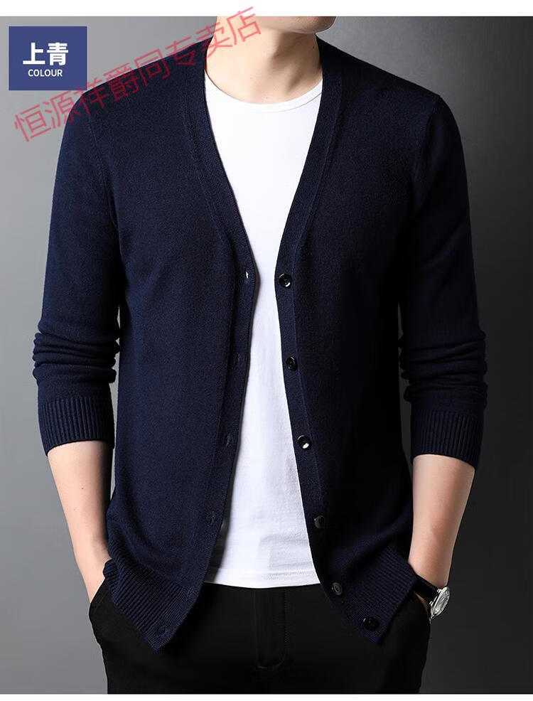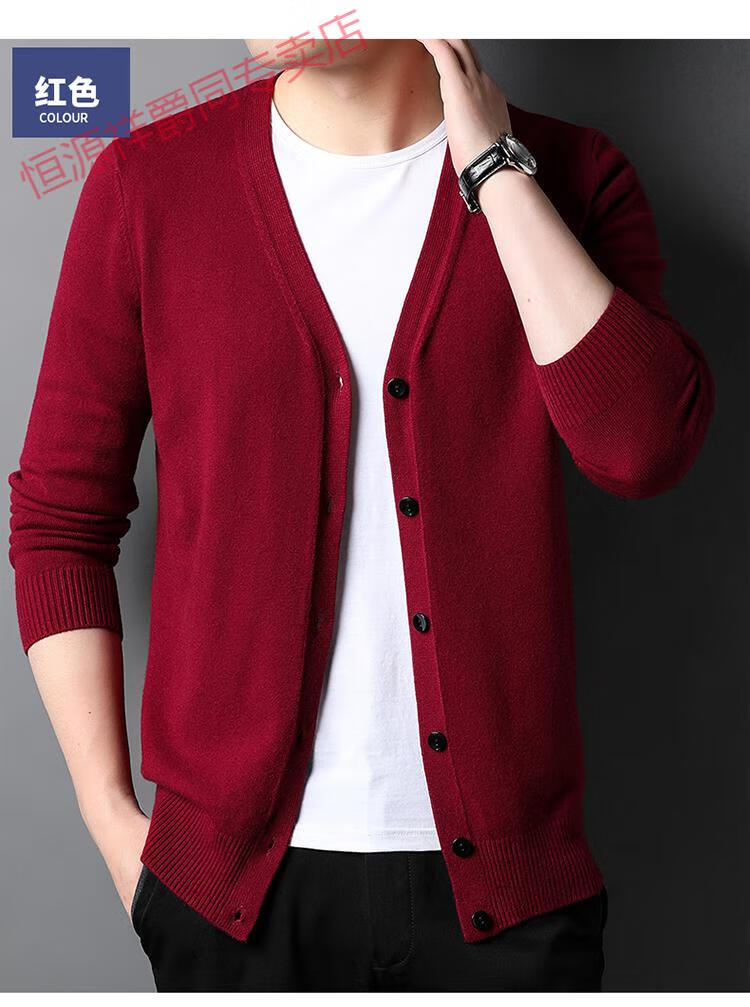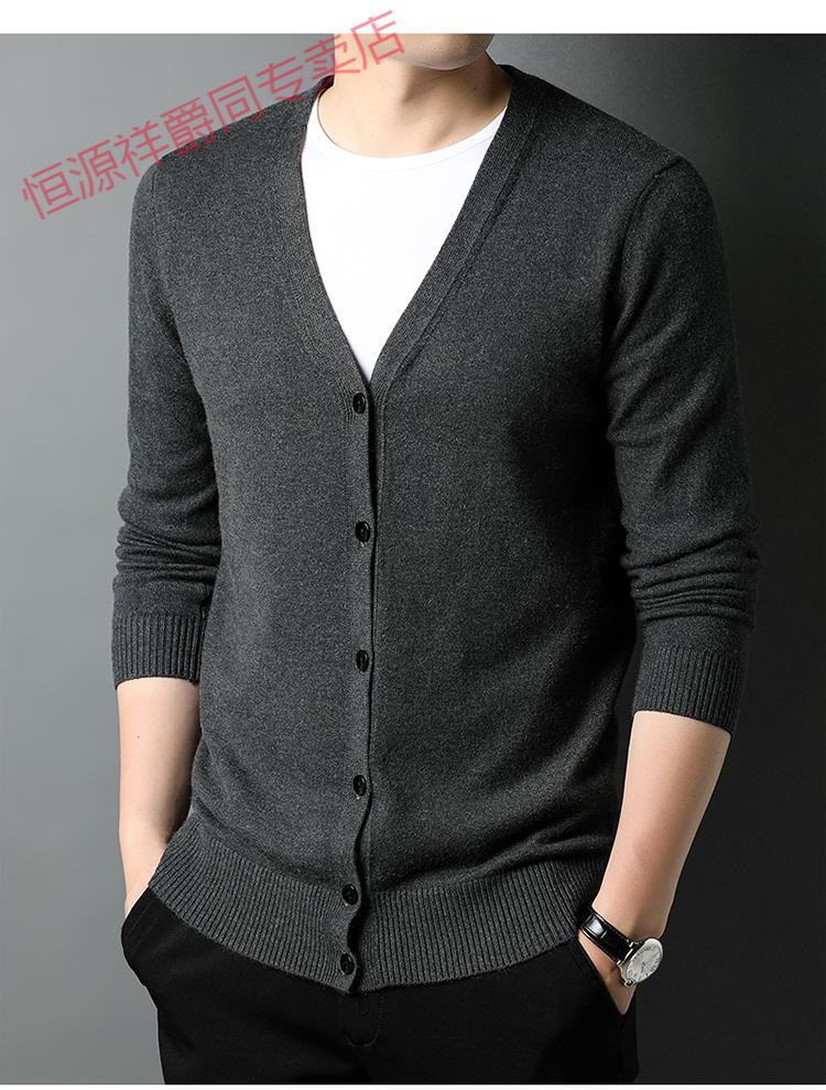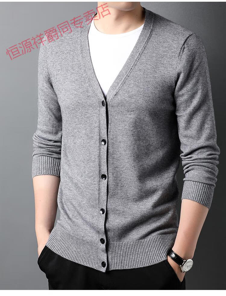 恒源祥开衫毛衣男士加厚外套秋季开口羊毛秋装男式纯色外穿对襟针织衫男 黑色 S 165 (合适95-120斤穿)