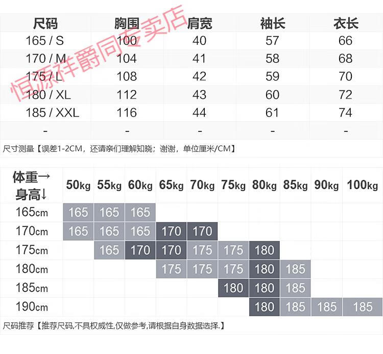 China (cm) 165 / 88-90 170 / 96-98 175 / 108-110 180 / 118-122 185 / 126-130