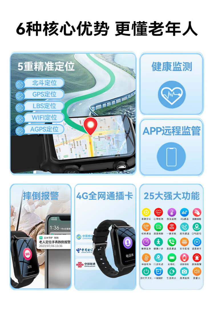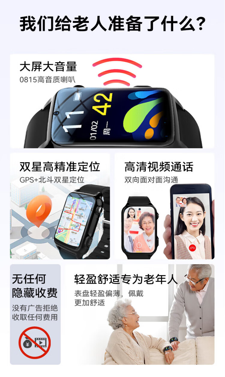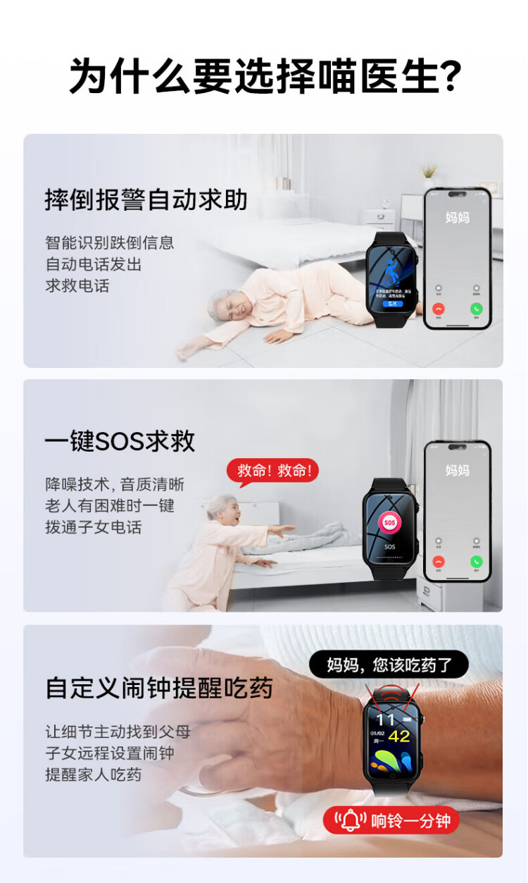 Doctor Meow Telefonuhr für ältere Menschen, Positionierungsuhr, Tracker, Sturzalarm für Erwachsene, Gesundheitsüberwachung, Blutdruck, Herzfrequenz, Videoanruf, Smartwatch, Anti-Fall-Armband, nationale Subventionierung, volle Netcom-Präzise Positionierung + Sturzalarm + Fernüberwachung + Leben wasserdicht