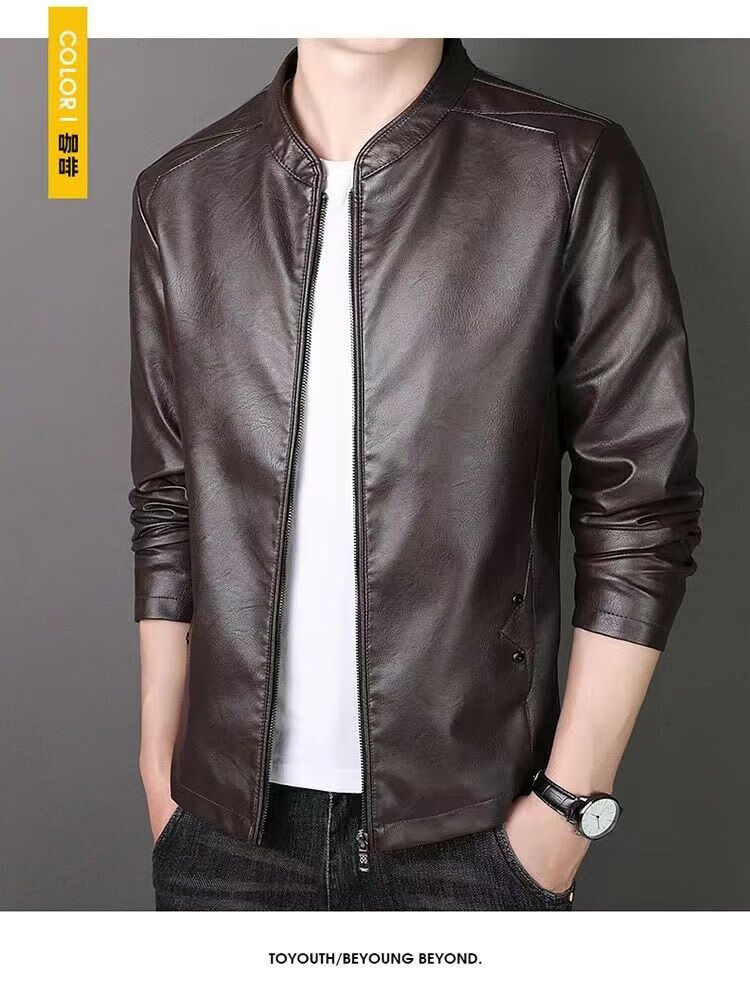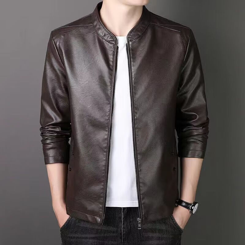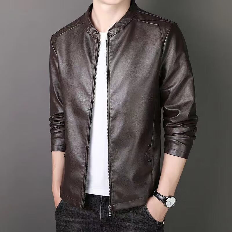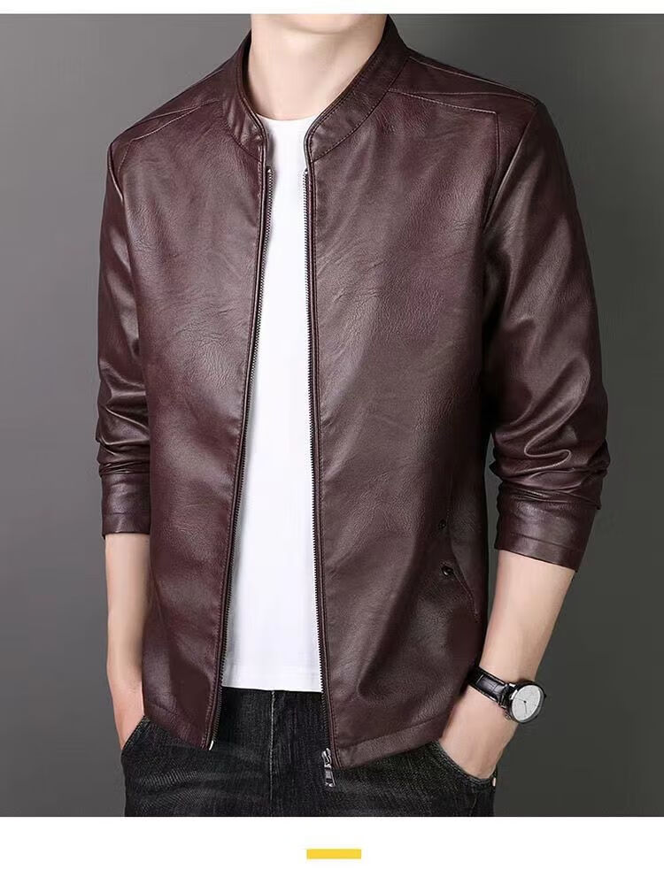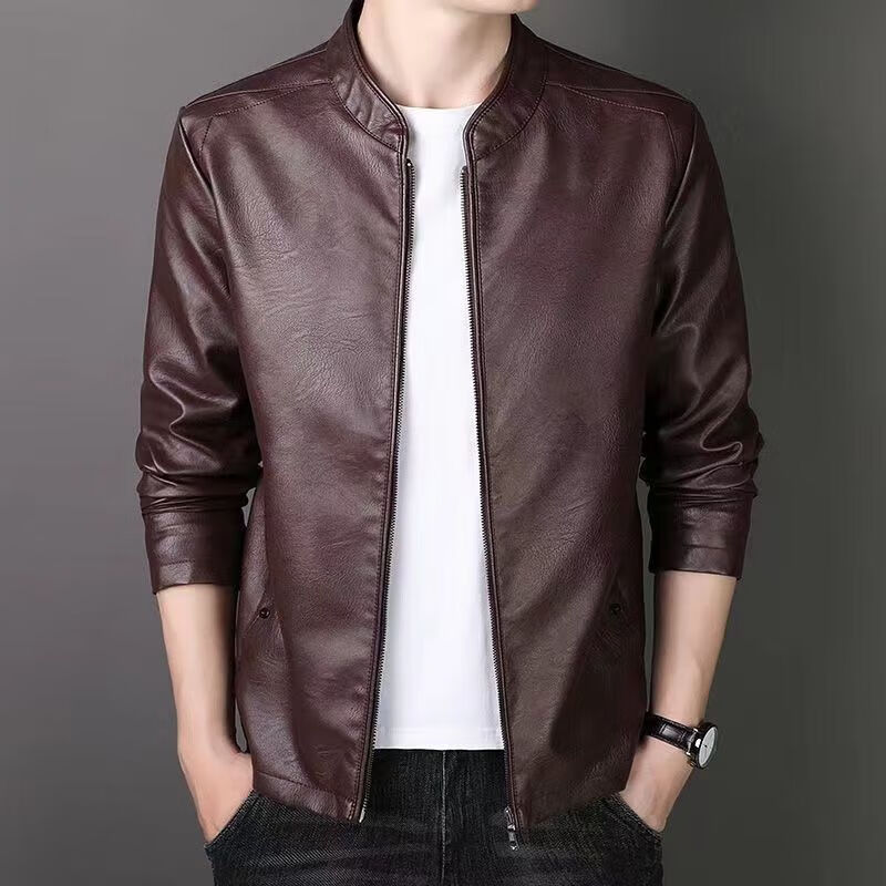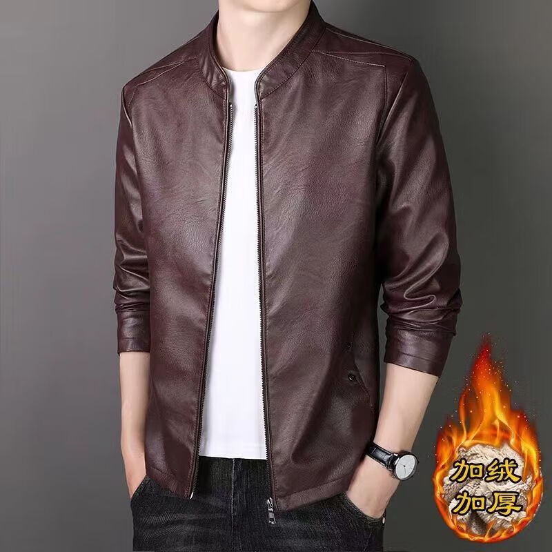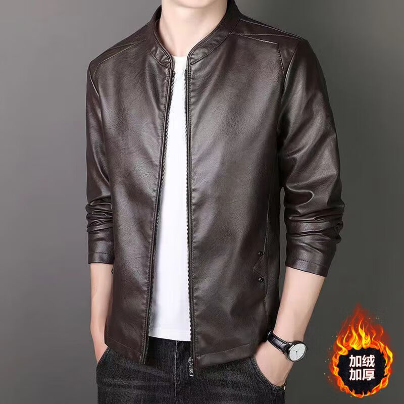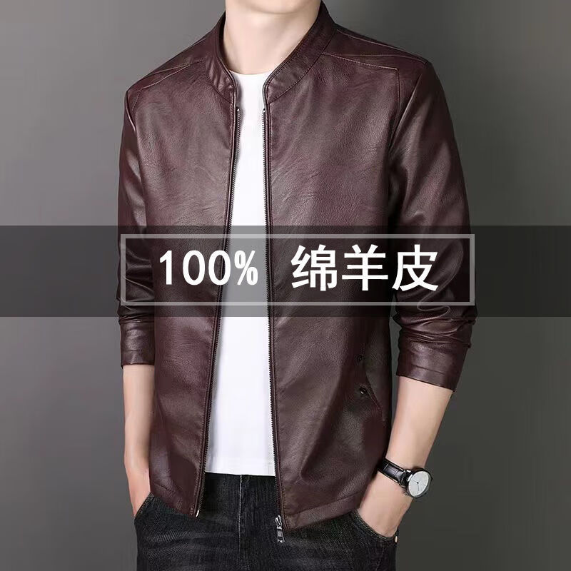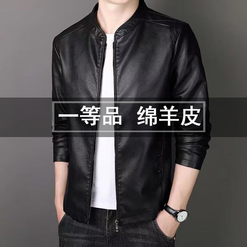 NVWNK элитный бренд Haining, куртка из натуральной кожи, мужская облегающая куртка из овчины с воротником-стойкой, повседневная кожаная куртка большого размера, плюс бархатная черная куртка 2XL 140-155Jin Jin равна 0,5 кг