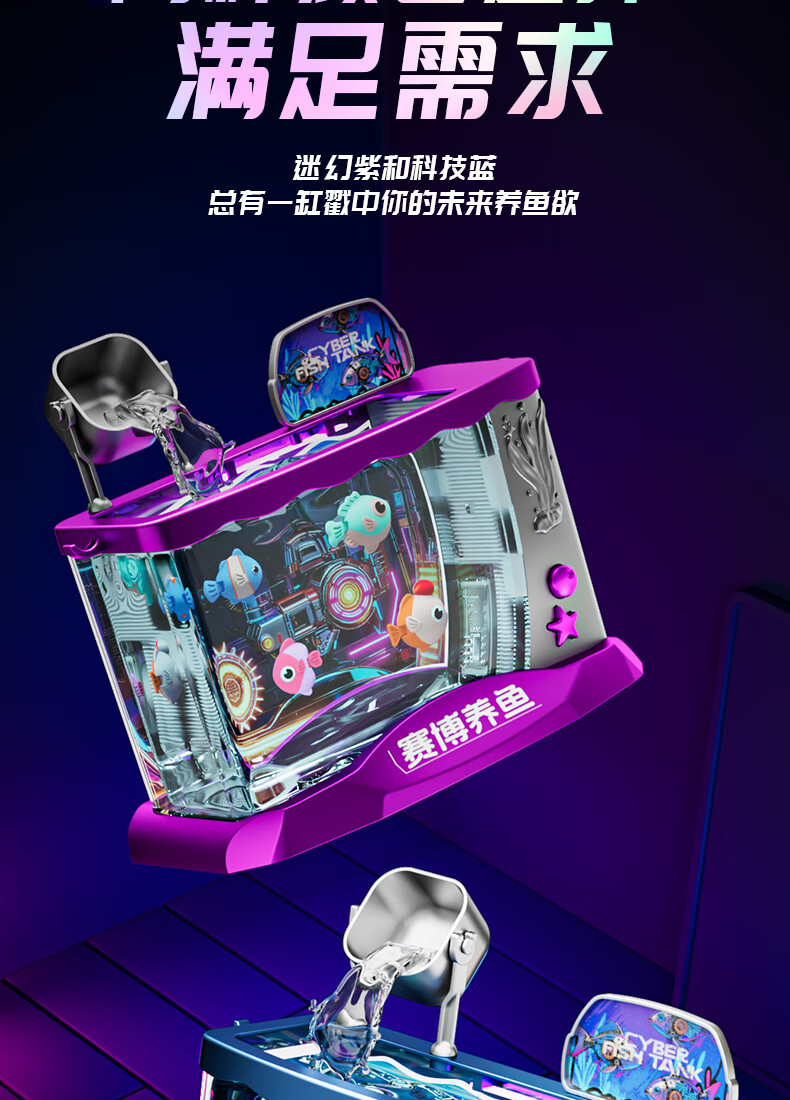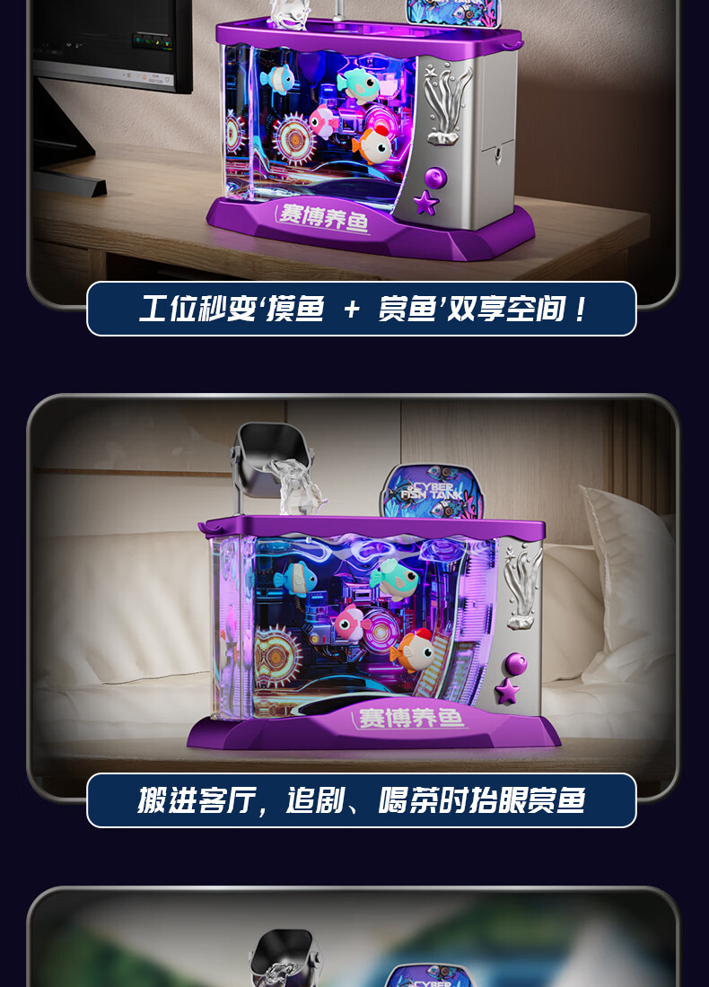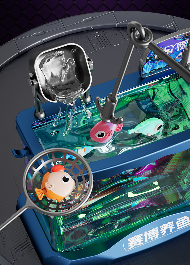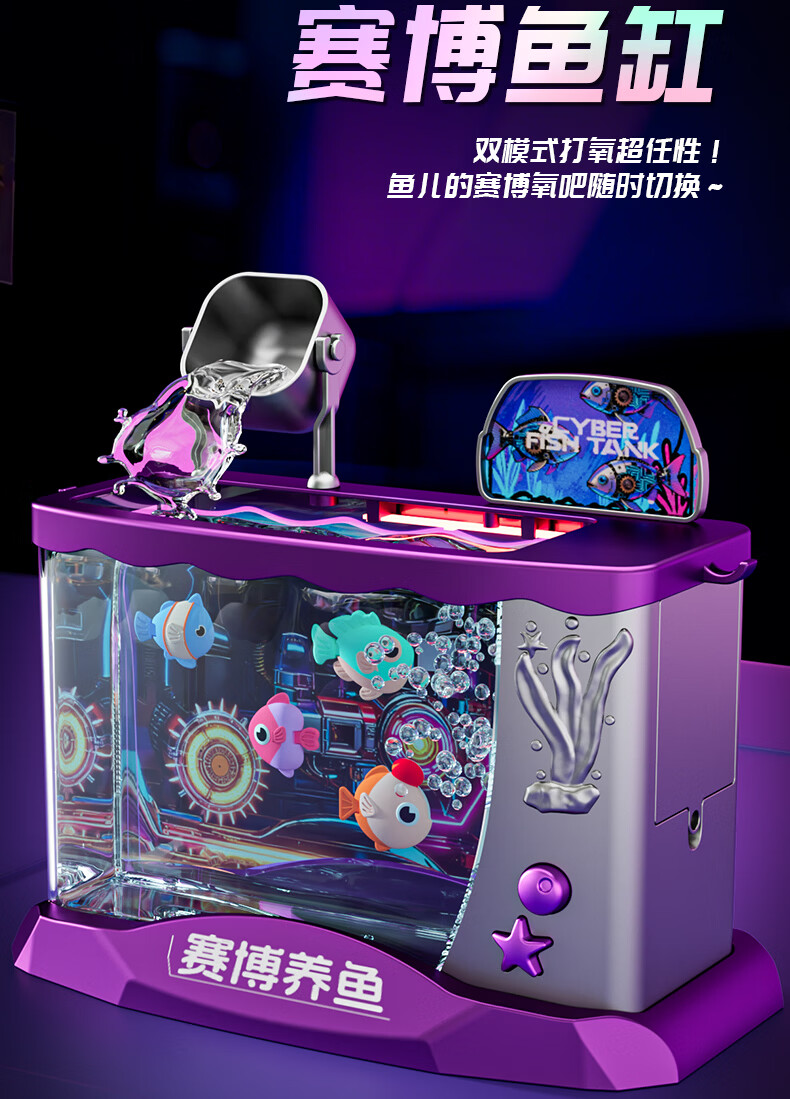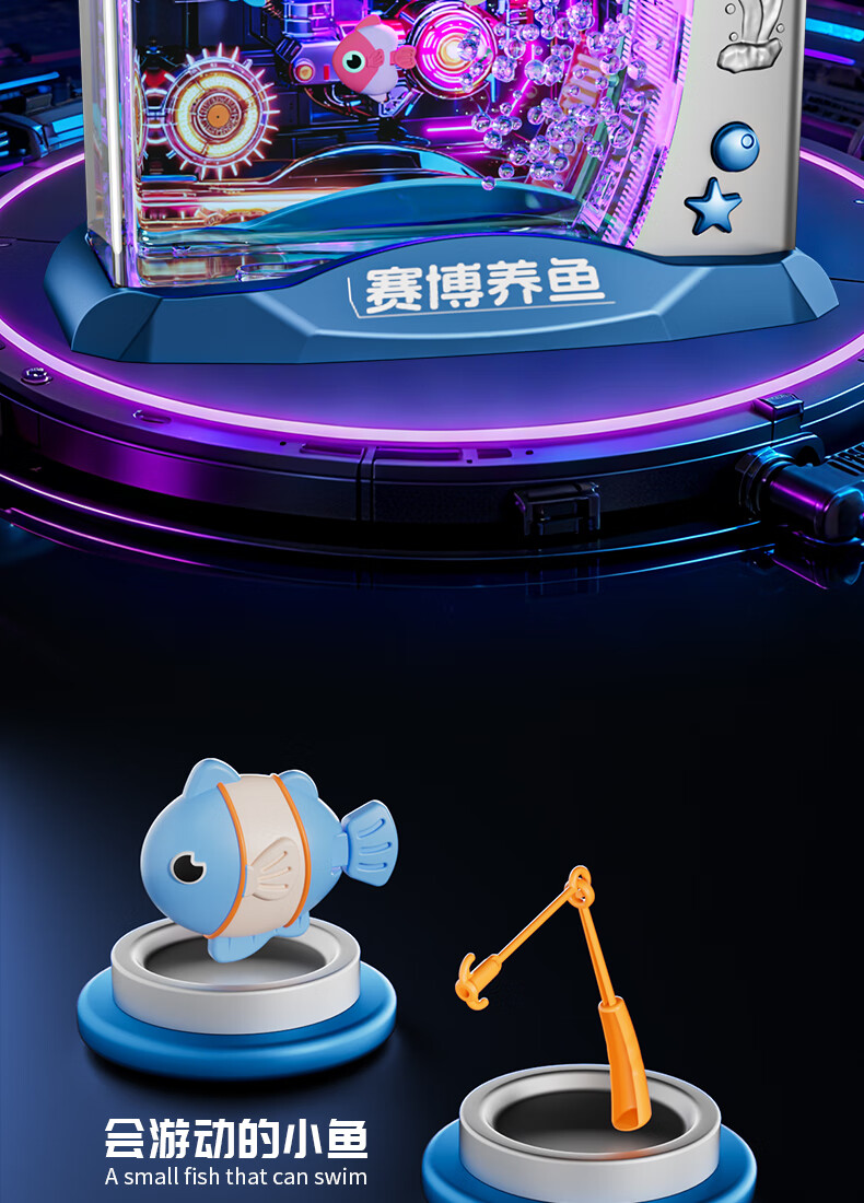 Yunya Children's Birthday New Year Gift Electronic Fish Tank Simulation Fish Creative Little Light Aquarium Cyber ​​Fishing Girl Toy Luxury Ice Cream Supermarket Table-Blue