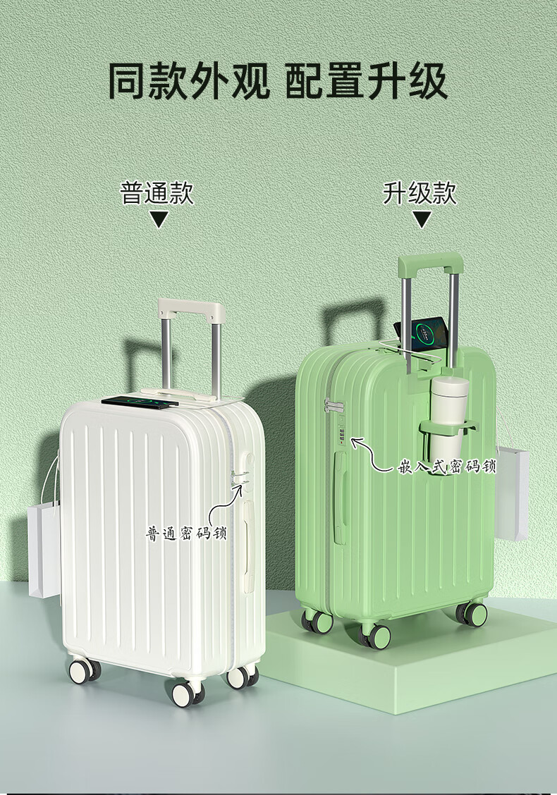 MCHNA KTCC Valise à roulettes multifonctionnelle pour femme, valise solide et durable, roue universelle légère, petite valise d'embarquement avec mot de passe, blanc grain 20 pouces - embarquement disponible