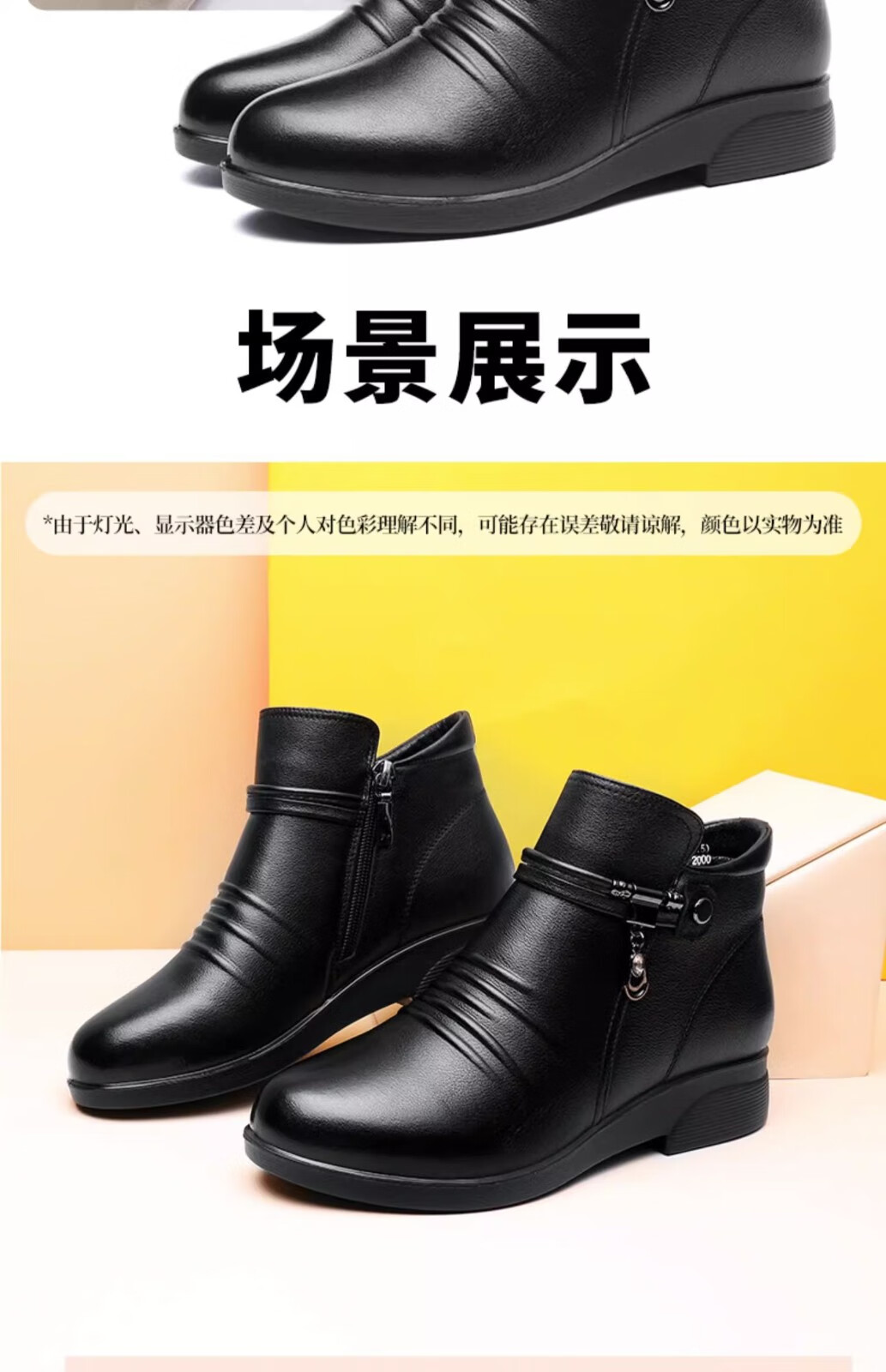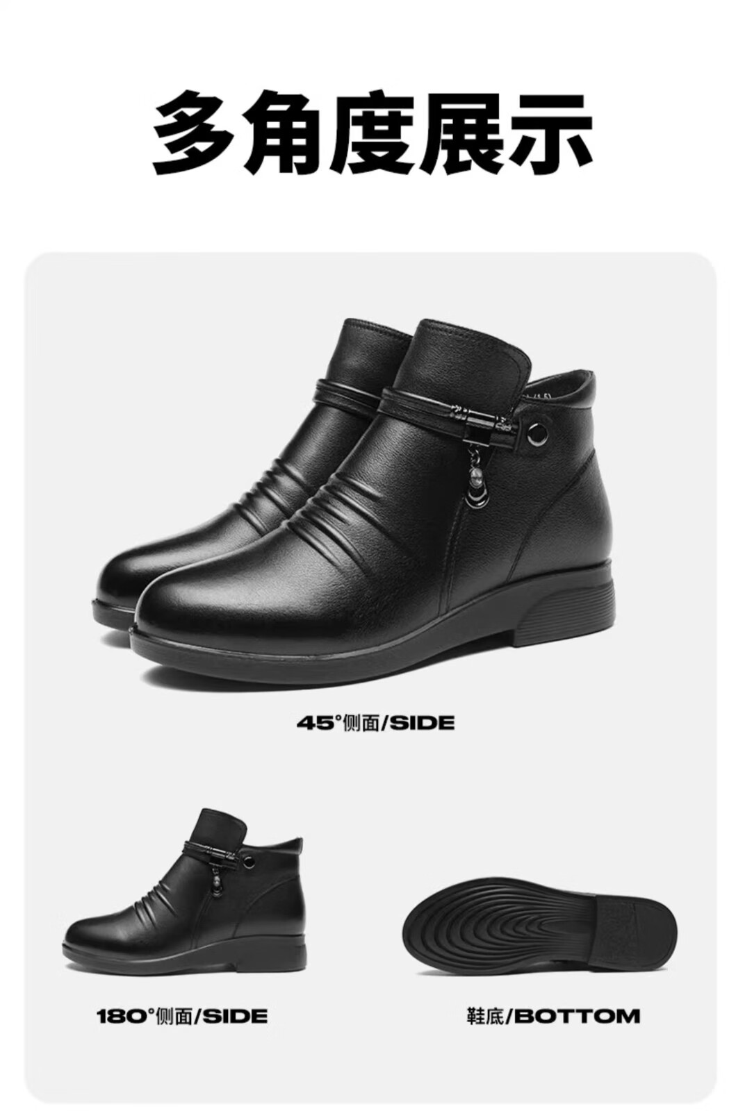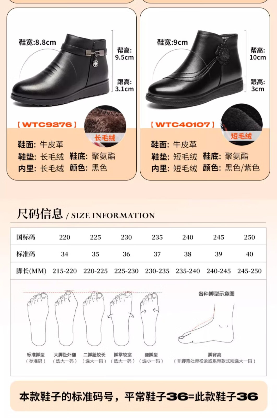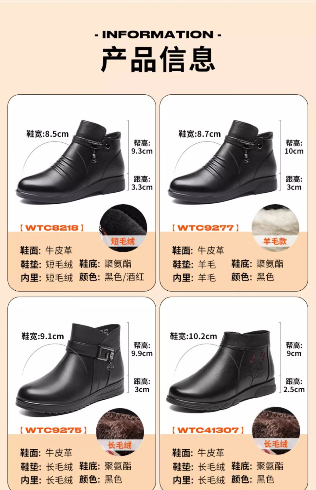 红蜻蜓真皮妈妈棉鞋冬季加绒加厚羊毛皮鞋女防滑软底中老年短靴女马丁靴 黑色WTC9277 【羊毛内里】 37