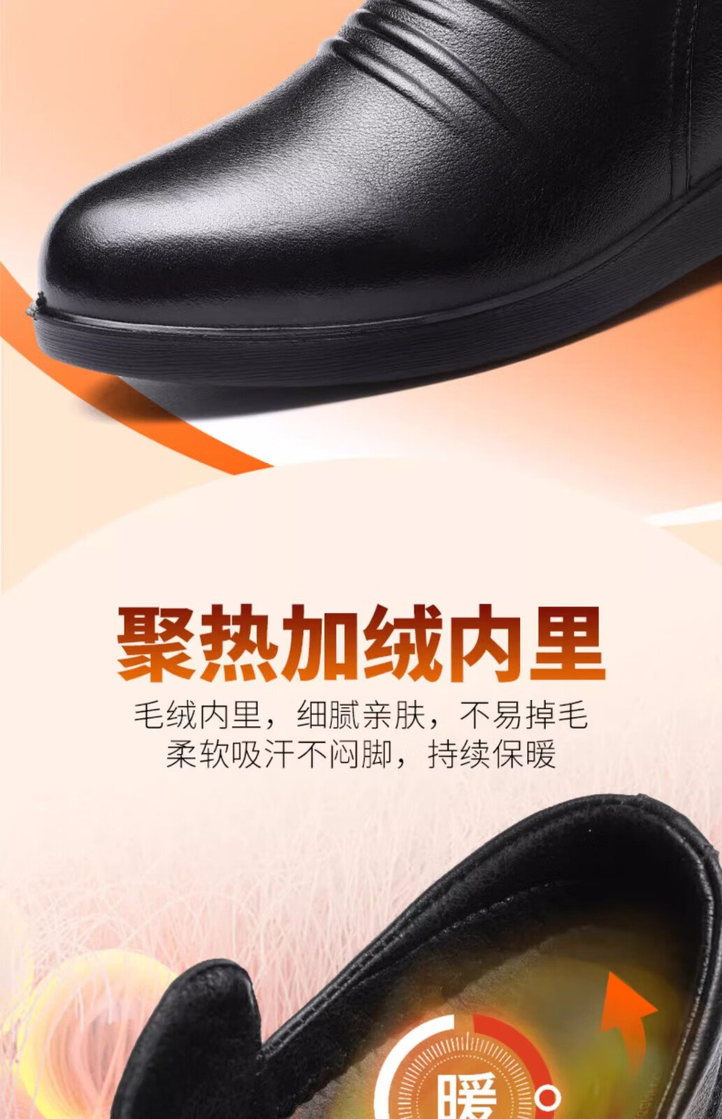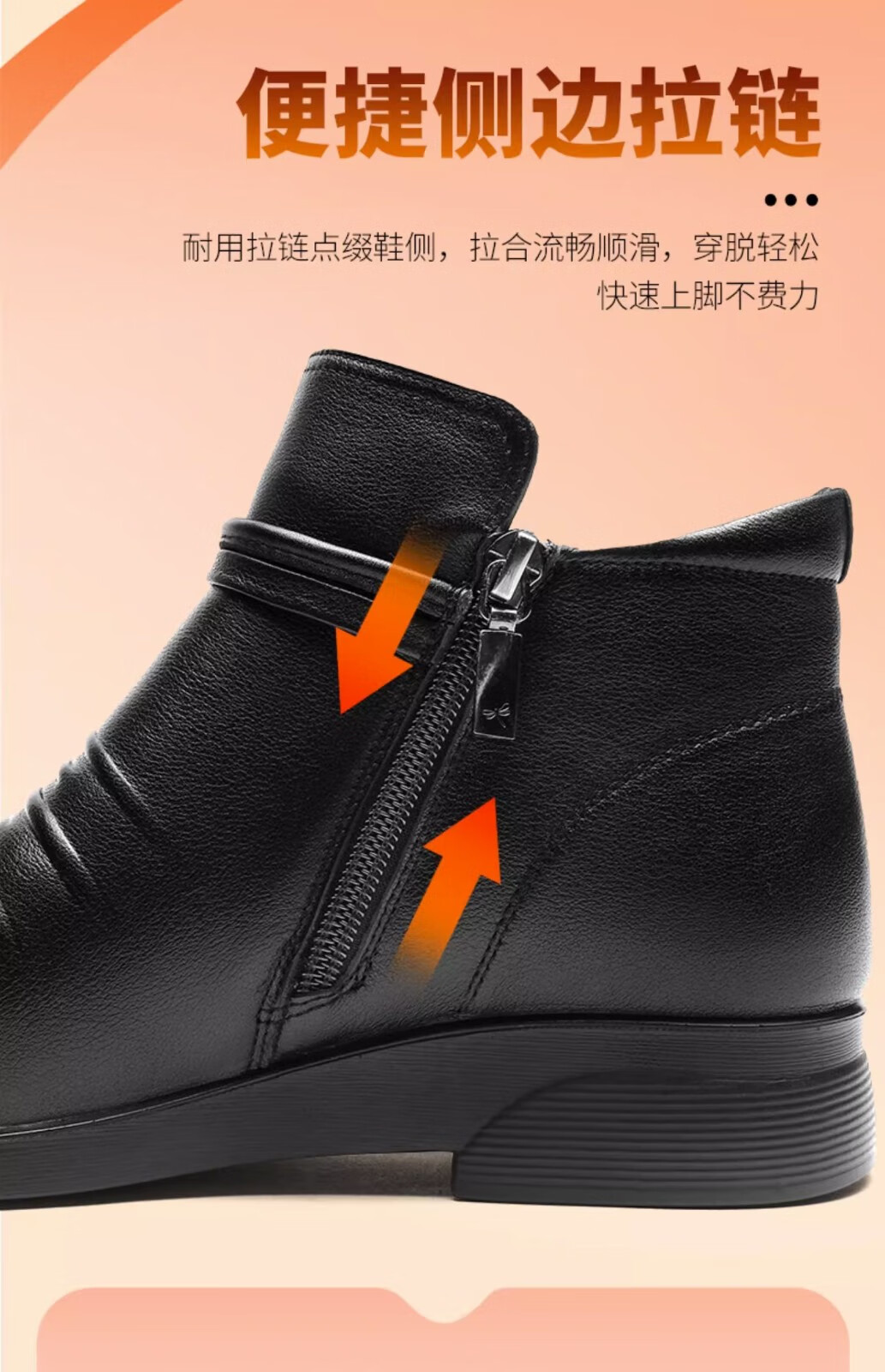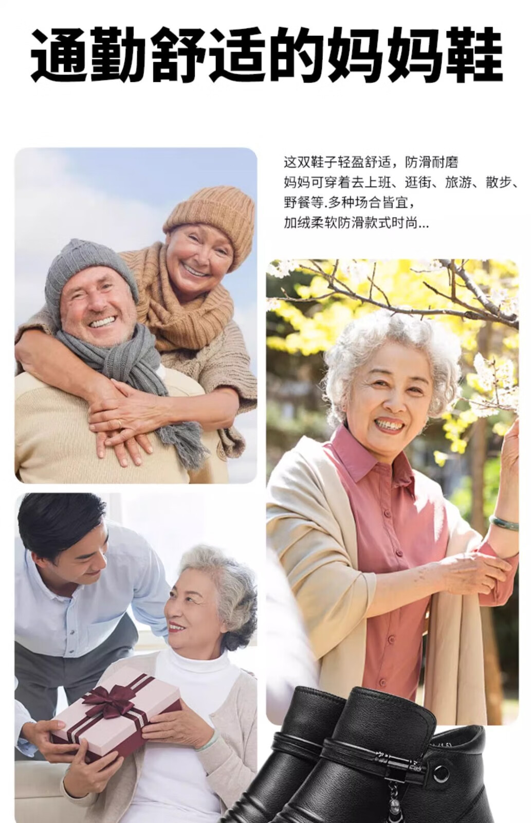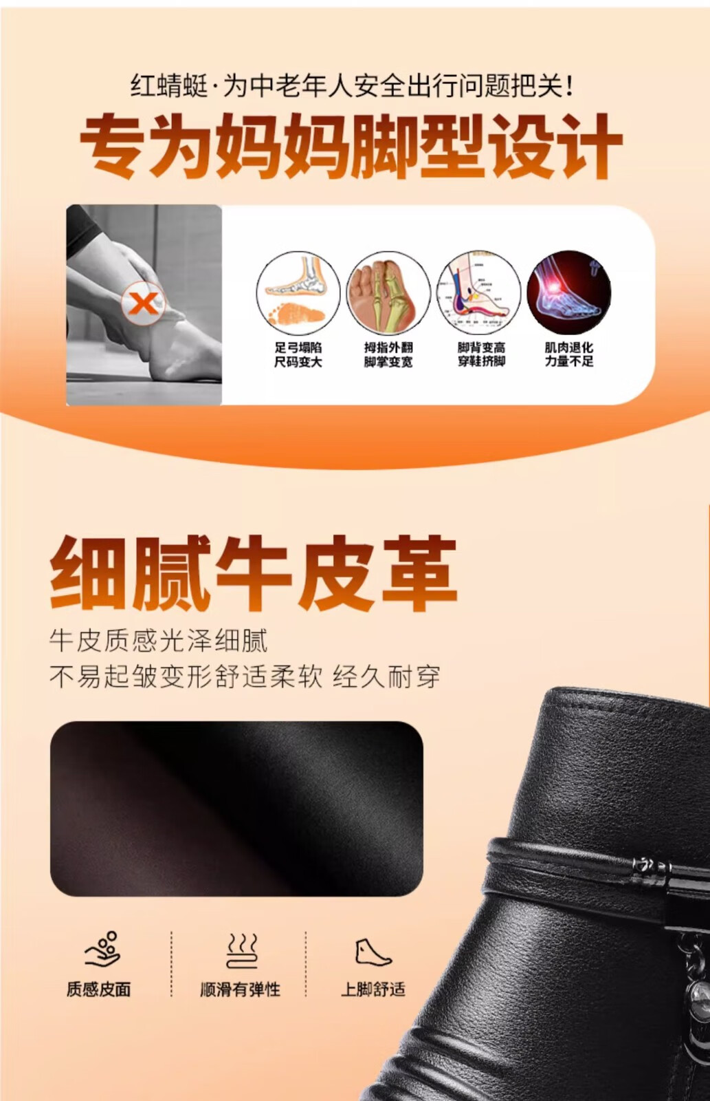 红蜻蜓真皮妈妈棉鞋冬季加绒加厚羊毛皮鞋女防滑软底中老年短靴女马丁靴 黑色WTC9277 【羊毛内里】 37