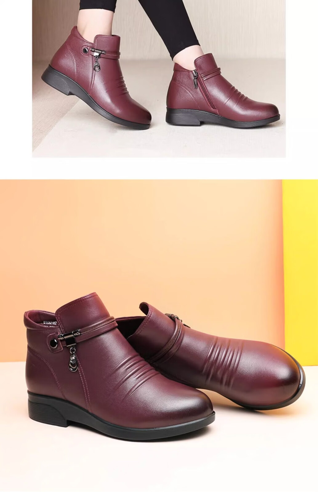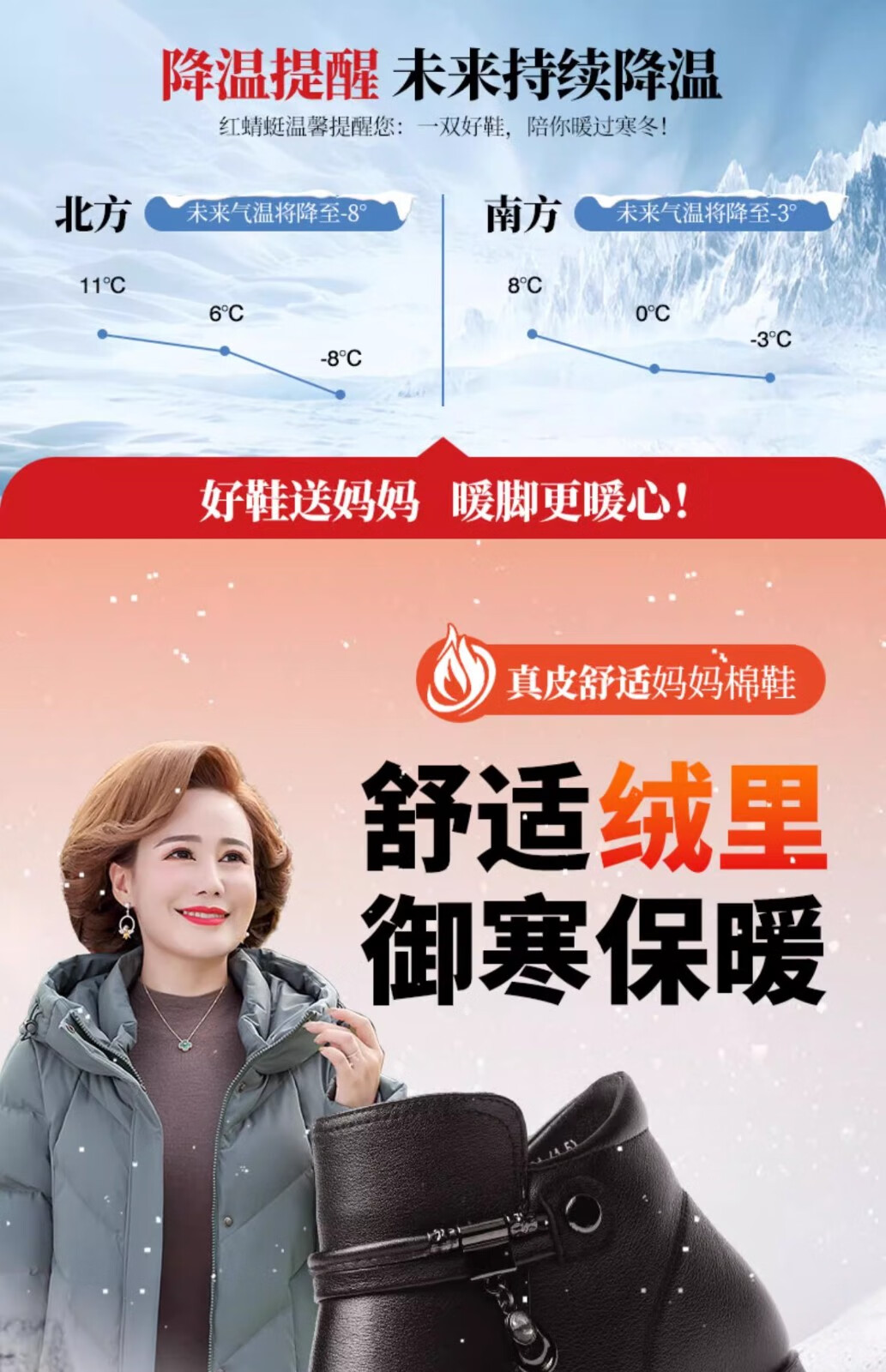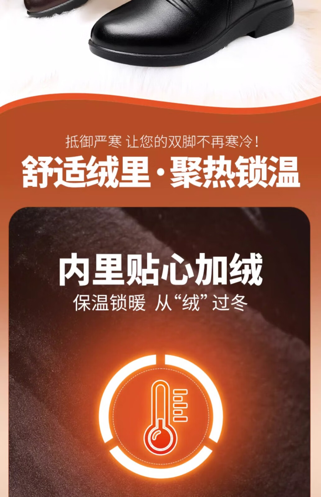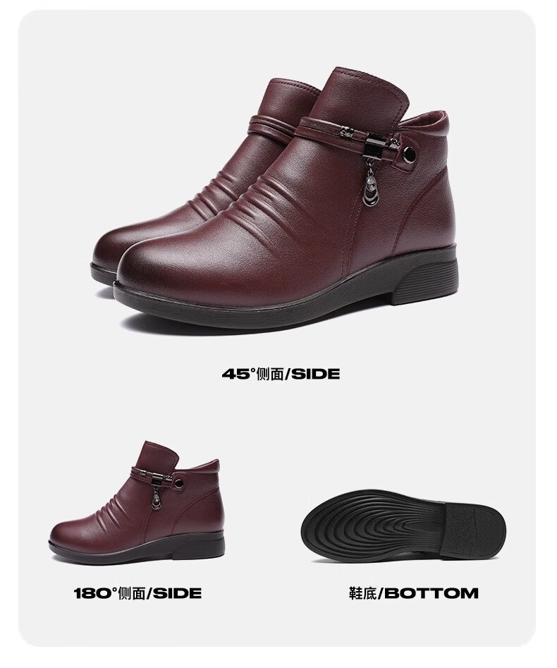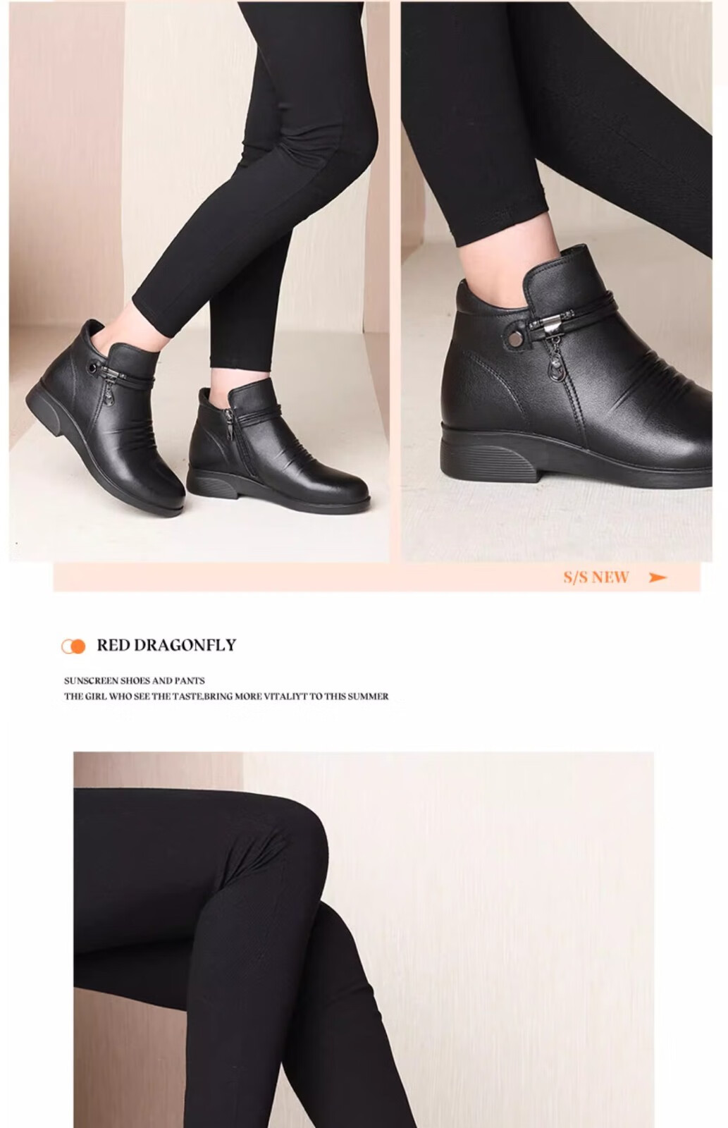 红蜻蜓真皮妈妈棉鞋冬季加绒加厚羊毛皮鞋女防滑软底中老年短靴女马丁靴 黑色WTC9277 【羊毛内里】 37