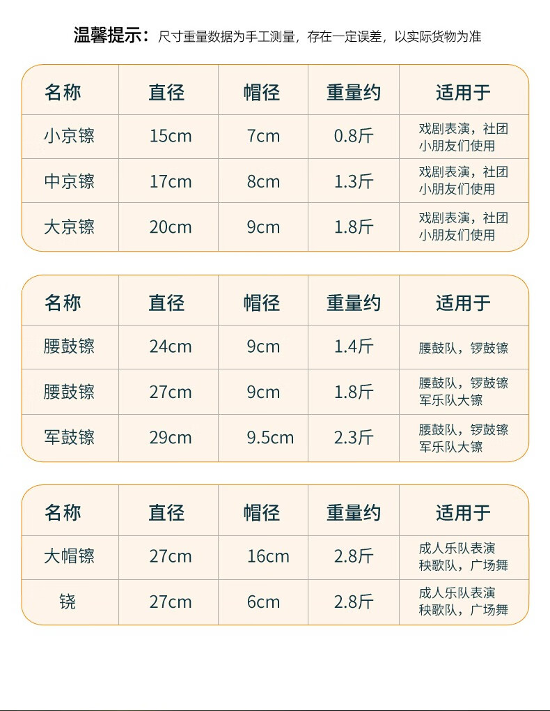 文彦鼓镲大小响铜镲水镲京镲/钹军镲 其他尺寸乐器 20cm2片重约1.8斤