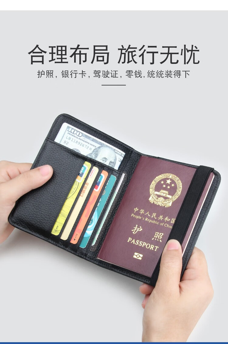 Irfankadi Multifunctional Passport Bag Genuine Leather Document Holder Passport Storage Bag Large Capacity Card Holder Men's Simple Passport Holder Protective Cover Black