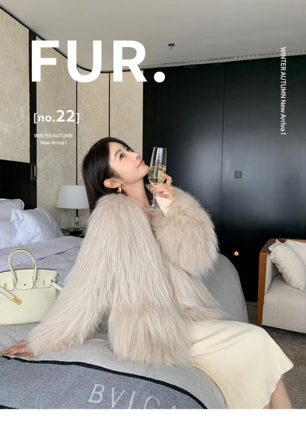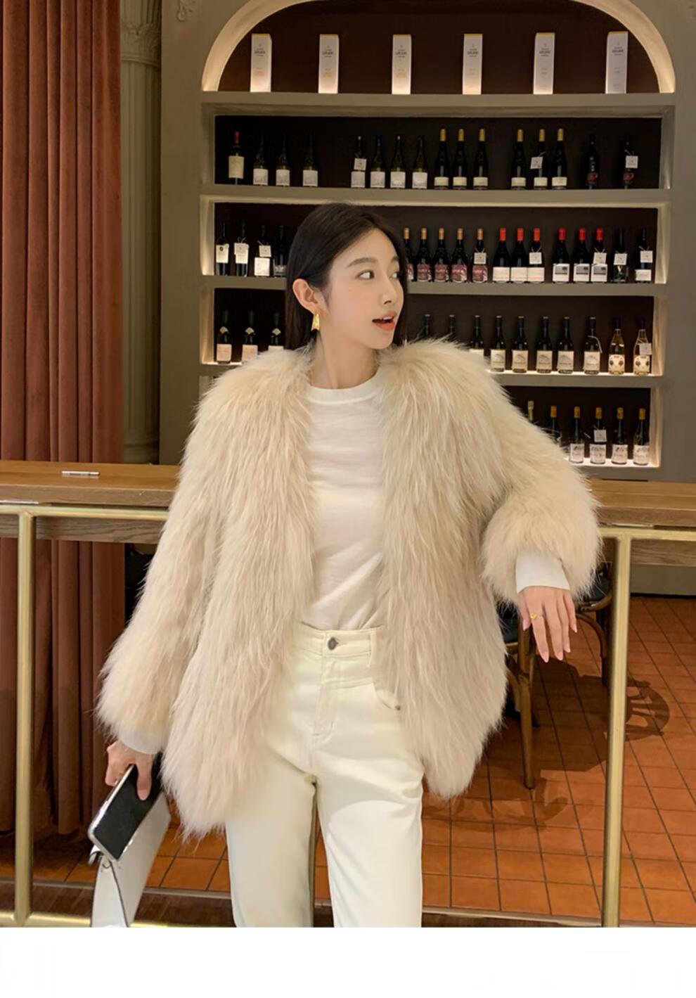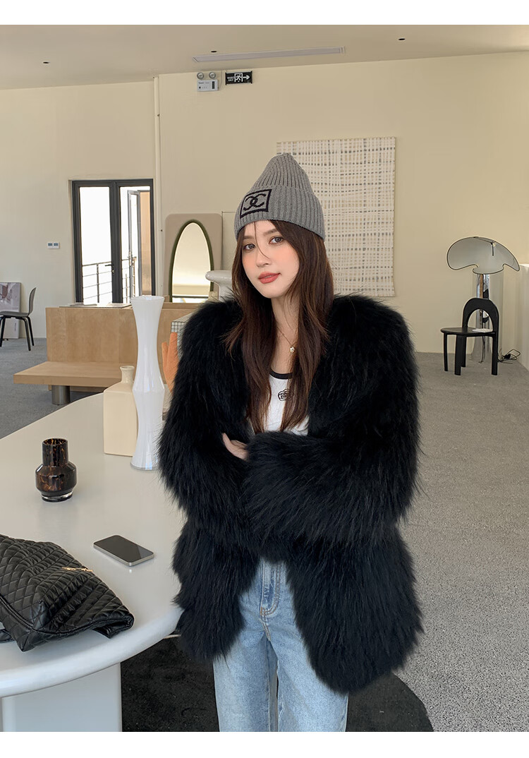 雅萨芭玛貉子毛双面编织皮草外套女中长款狐狸毛2025年新款P9731 奶茶色 均码