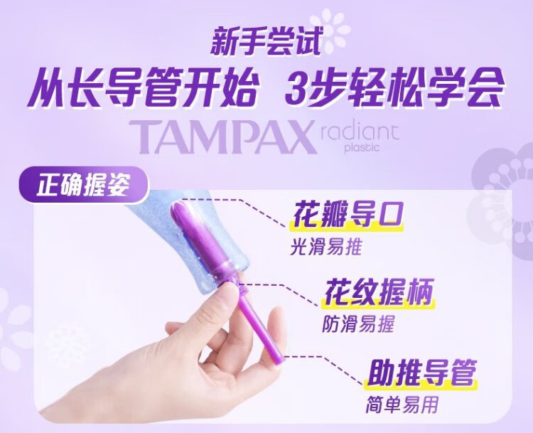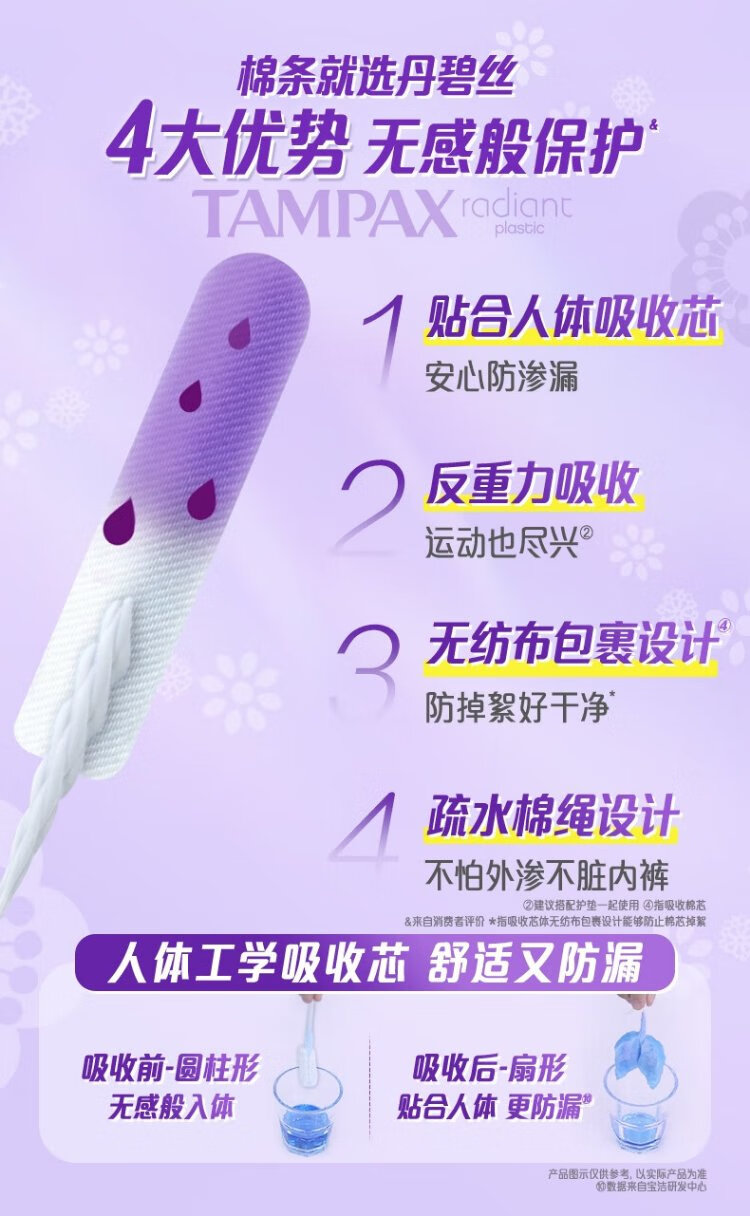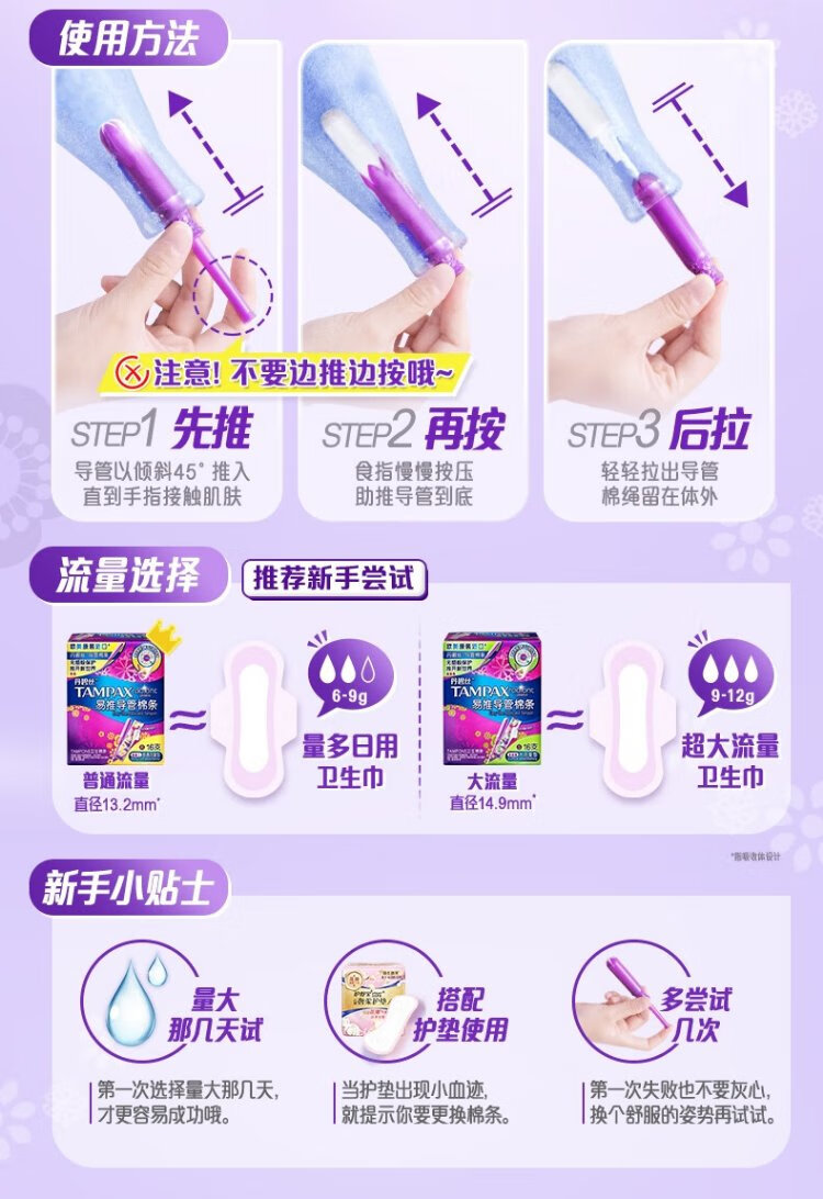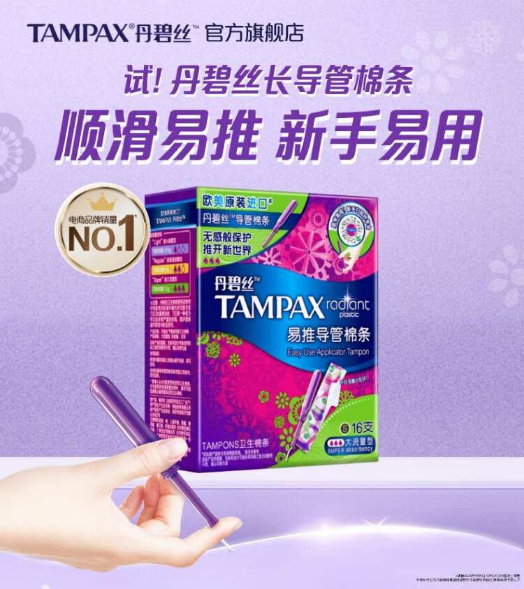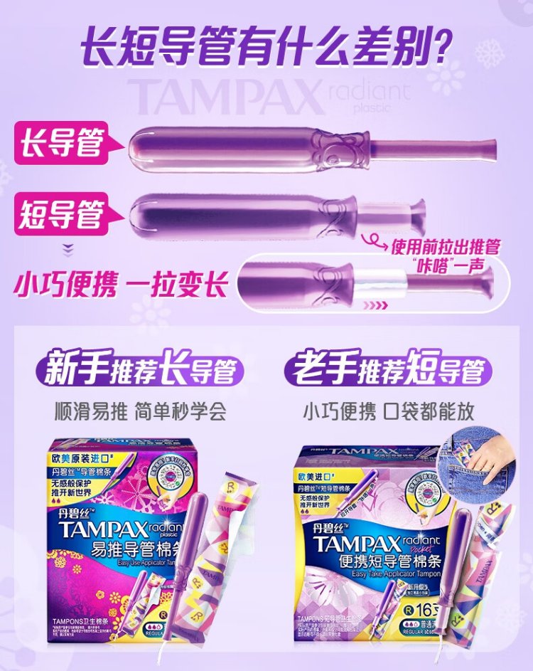 丹碧丝进口易推长/短导管式卫生棉条日夜新手试用易用游泳内置式 长导管-普通流量16支