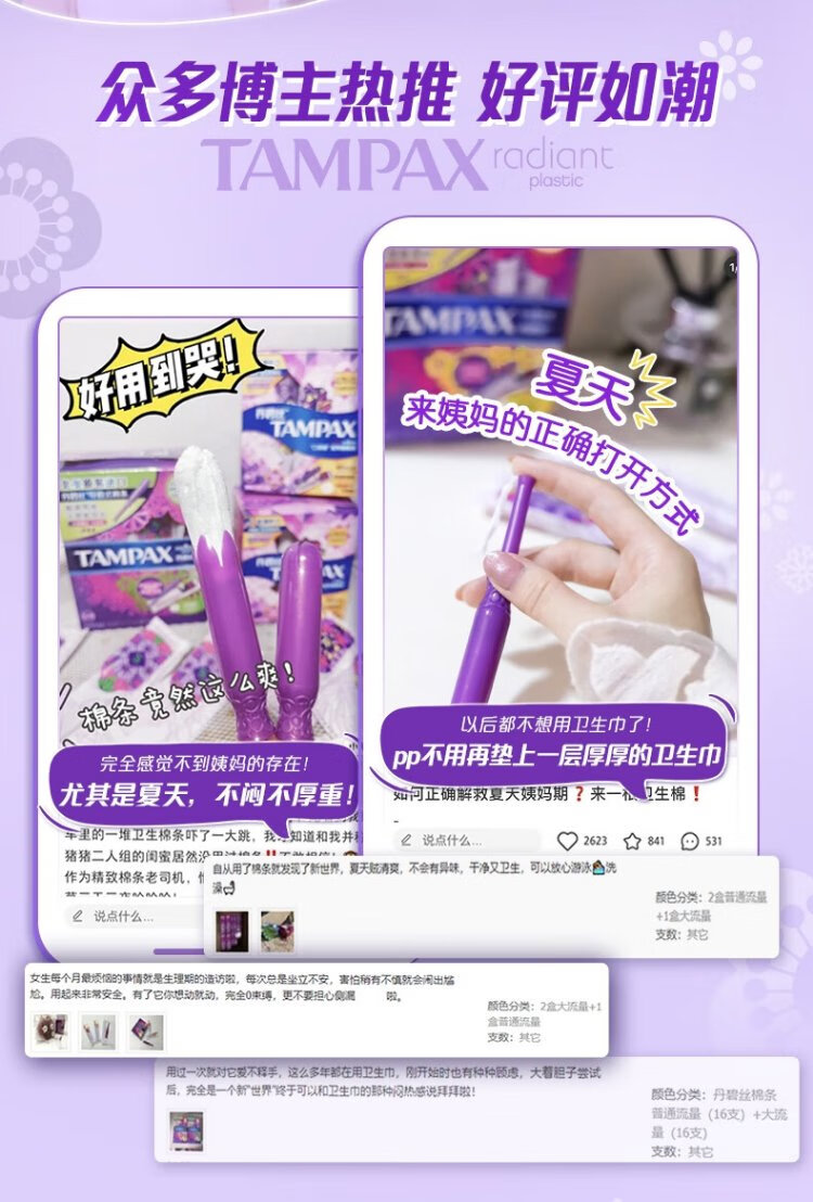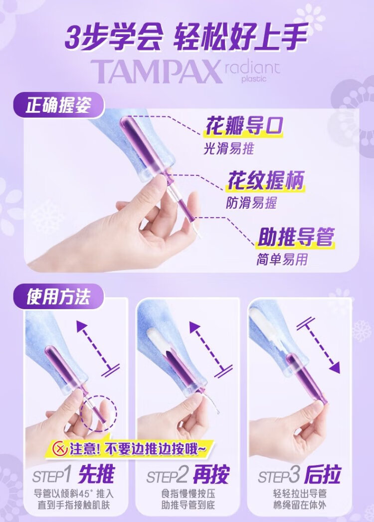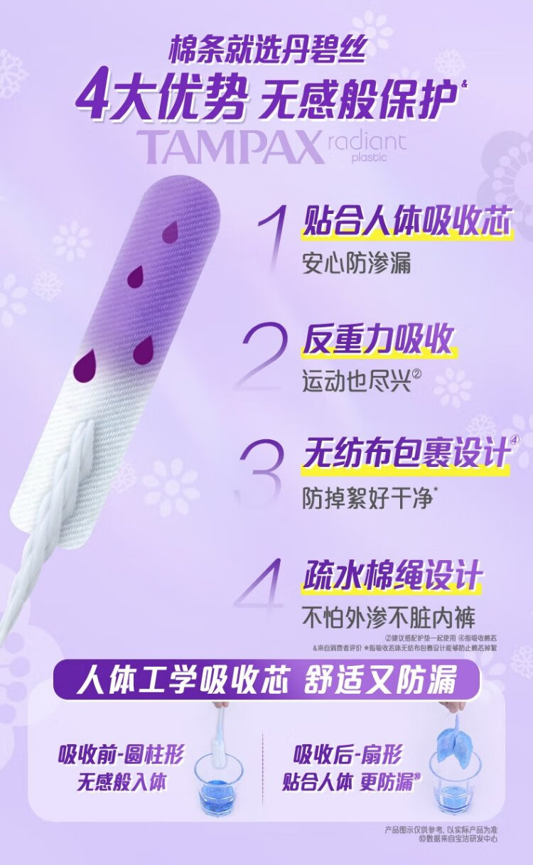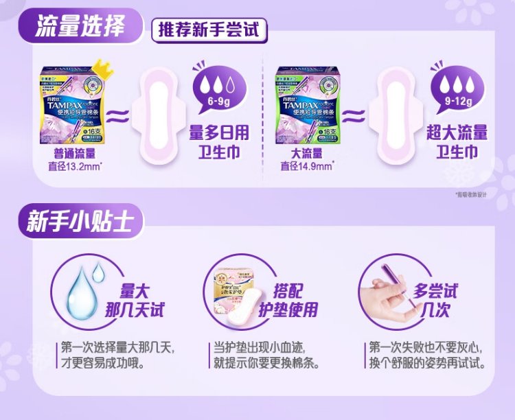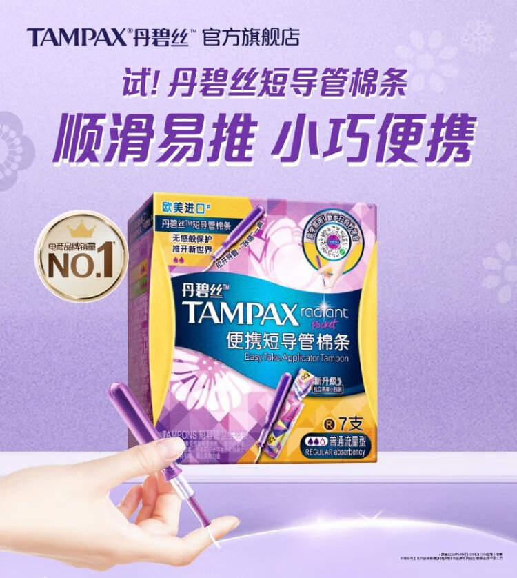 丹碧丝进口易推长/短导管式卫生棉条日夜新手试用易用游泳内置式 长导管-普通流量16支