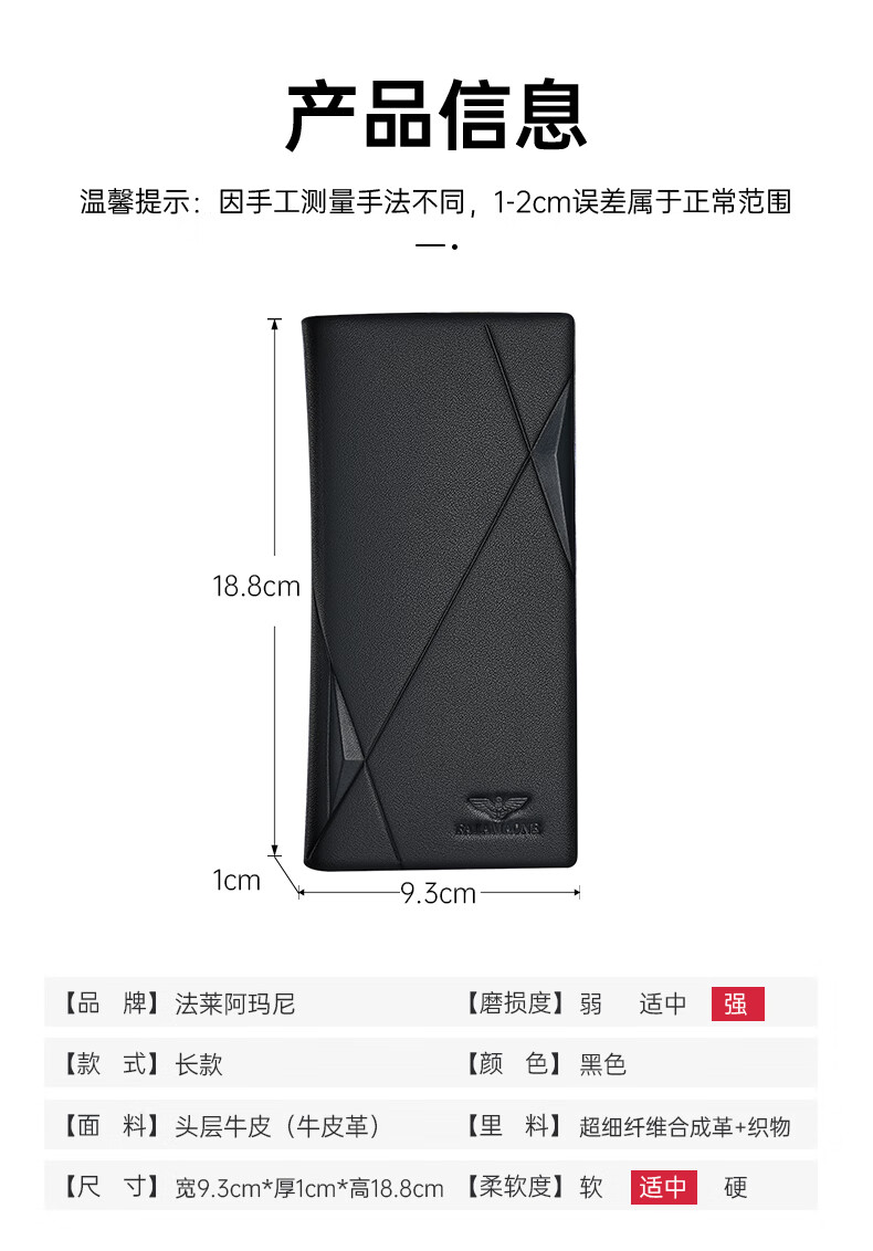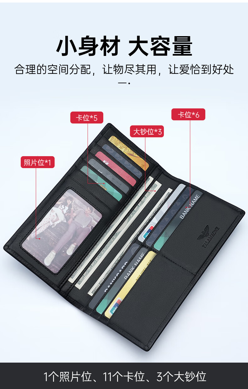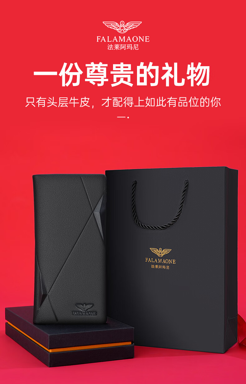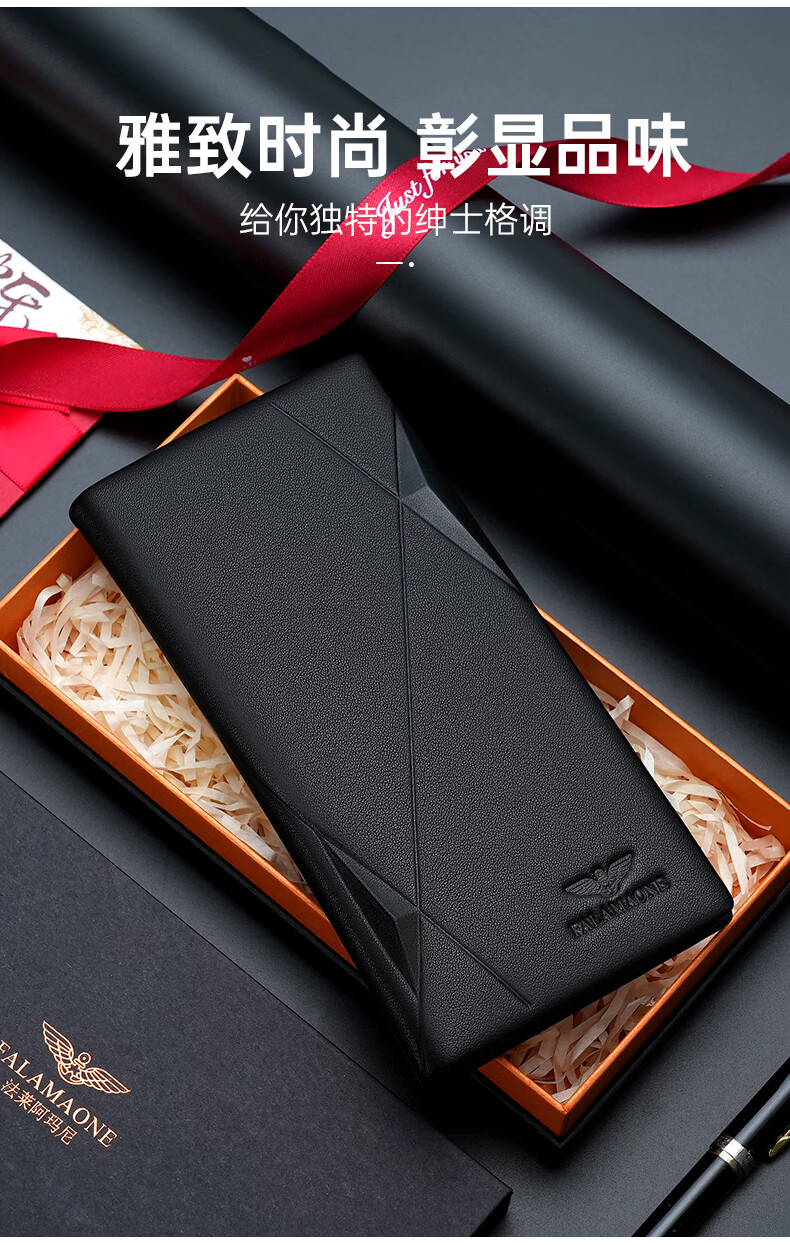 FALAMAONE男士钱包男短款头层牛皮真皮钱夹商务皮包高档生日礼物老公男朋友 长款/专柜礼盒