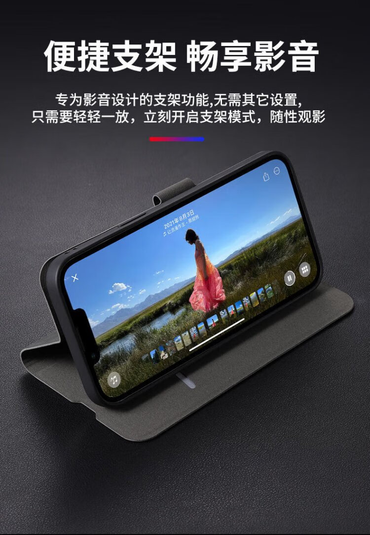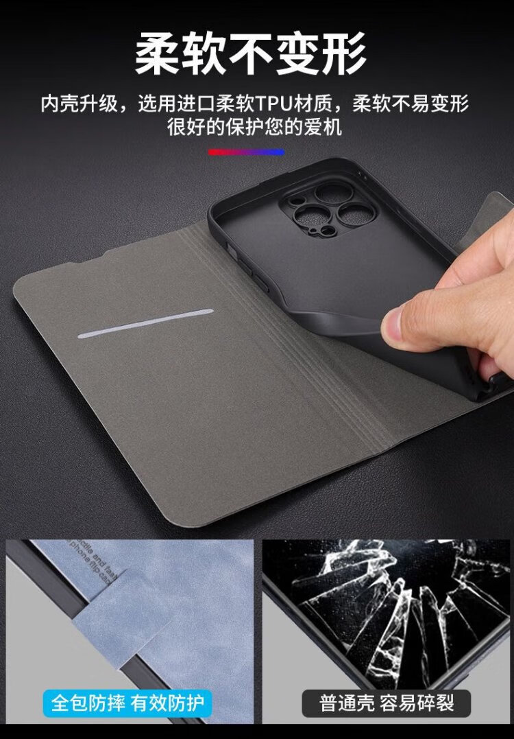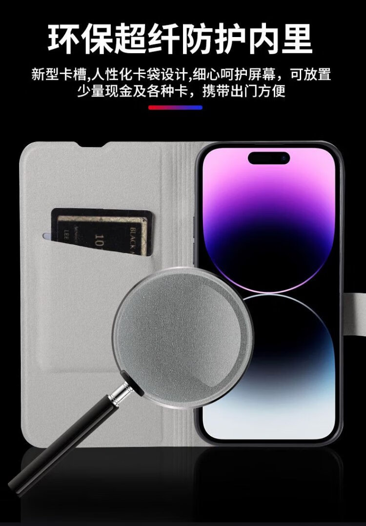 Jiangke eignet sich für Apple 14Pro-Handyhülle, All-Inclusive-Clamshell-Lederhülle, neue hautähnliche Schaffellleder-Anti-Fall-Schutzhülle, Business-High-End-Light-Luxus-tragbarer Ständer mit Steckkarte für Herren, Apple 14Pro Graphitgrau, All-Inclusive-Clamshell-Lederhülle mit Lanyard