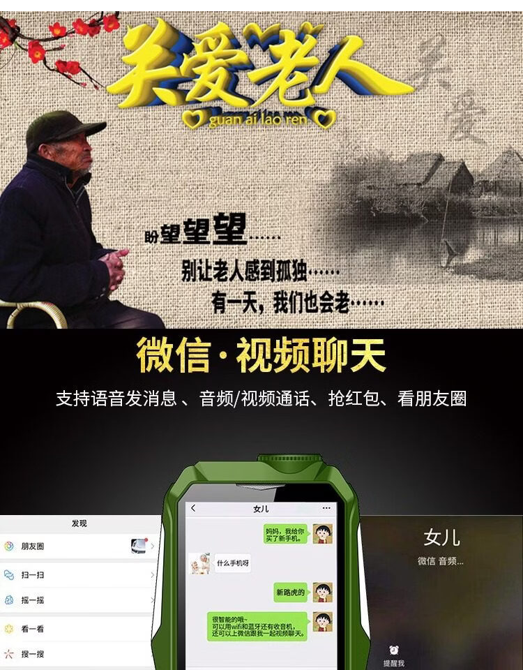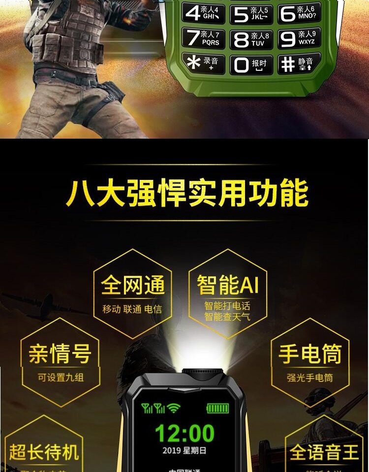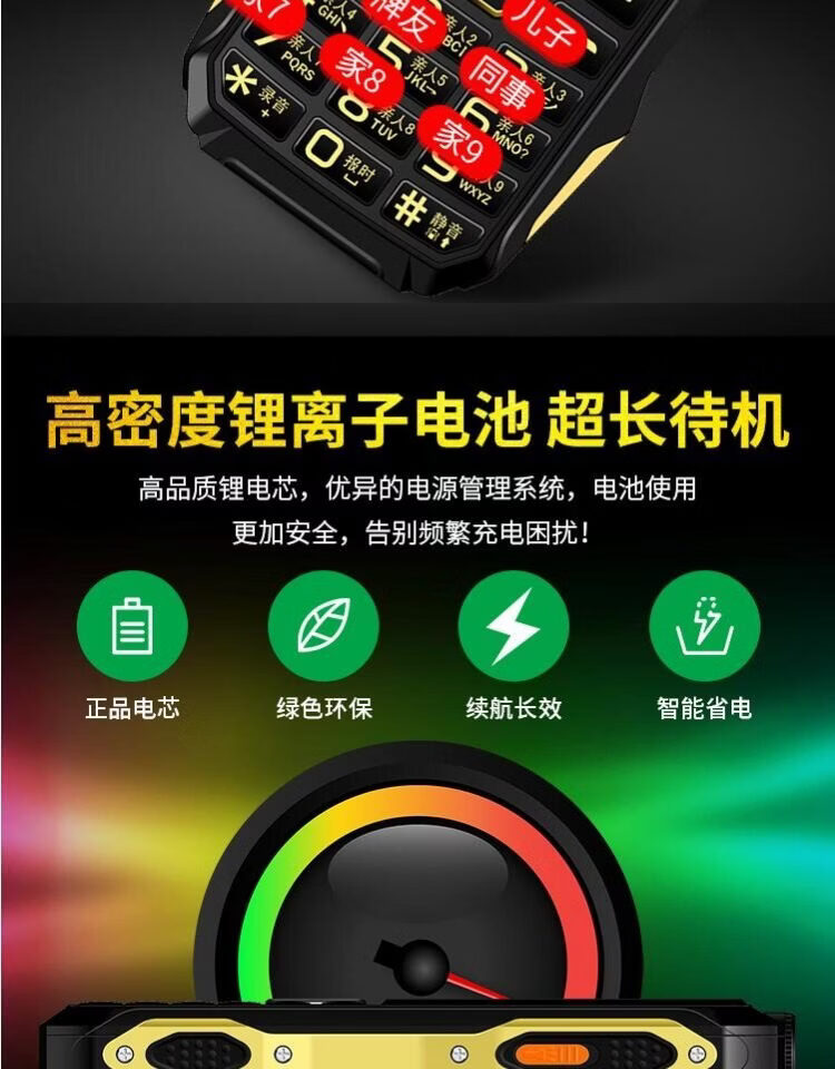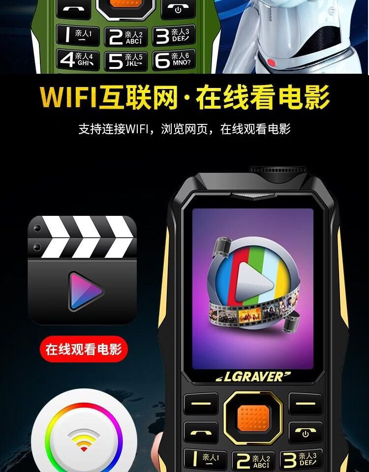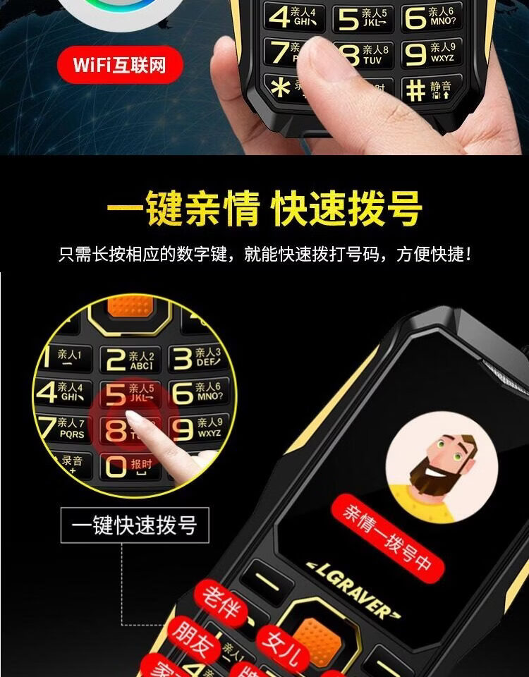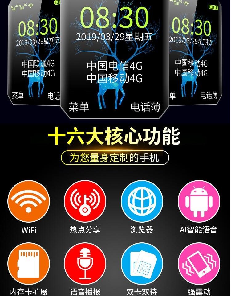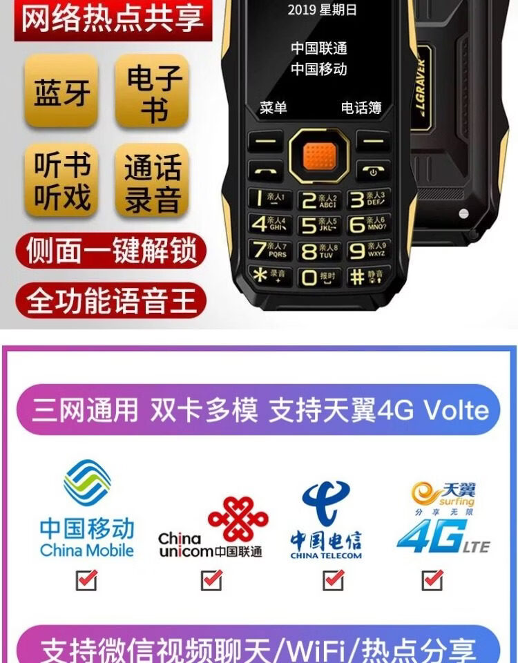 Yimi WeChat Douyin Himalaya 4G Full Netcom Button Straight Board Elderly Mobile Phone Super Long Standby Loud Big Button Positioning Can Brush Video WeChat Three-proof Elderly Phone Really Domineering Black