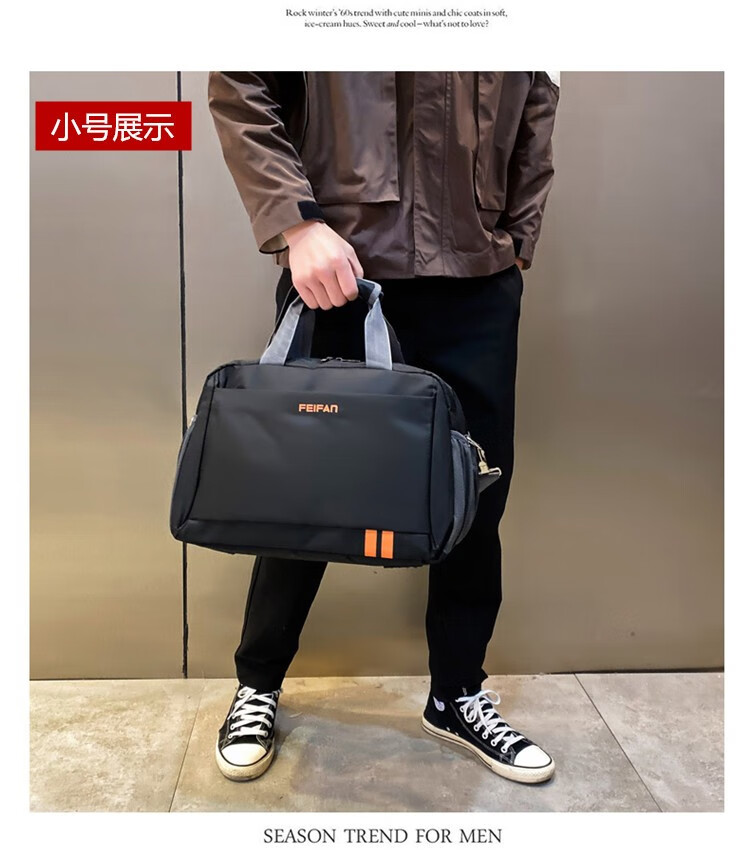 AOSIMAN手提旅行包男士大容量行李包袋休闲运动健身包商务登机出差旅游包 黑色 小号