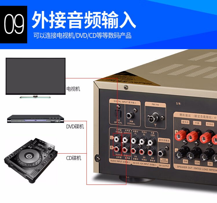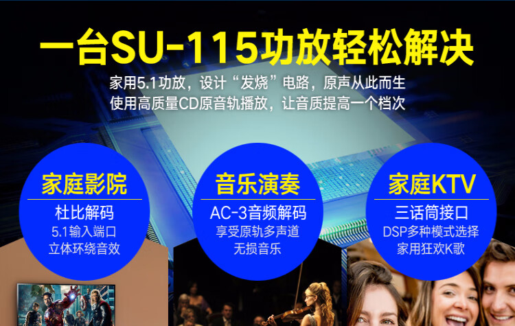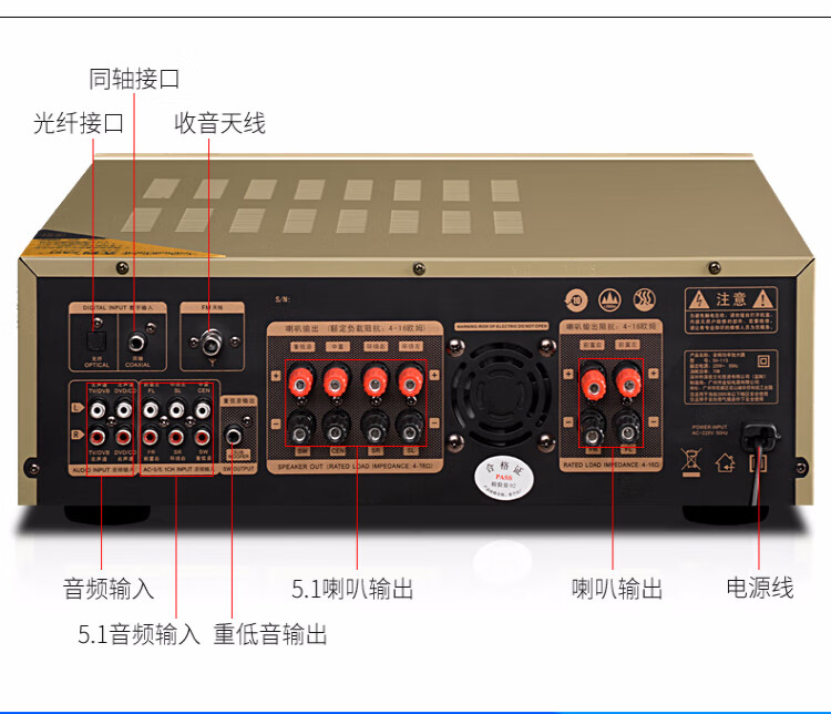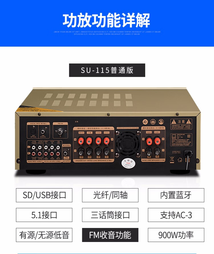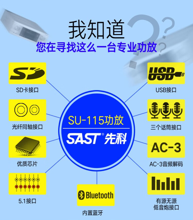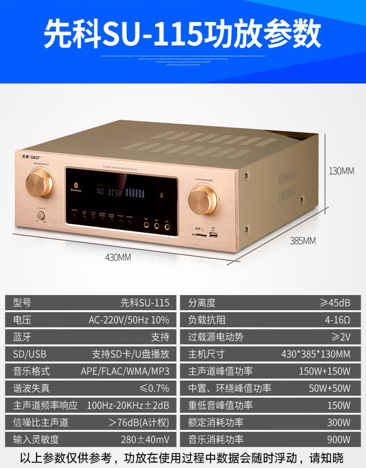 先科(SAST) 功放机大功率家用5.1声道重低音家庭影院数字蓝牙功放支持同轴光纤播放 【SU-115】