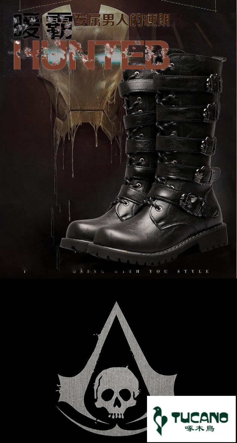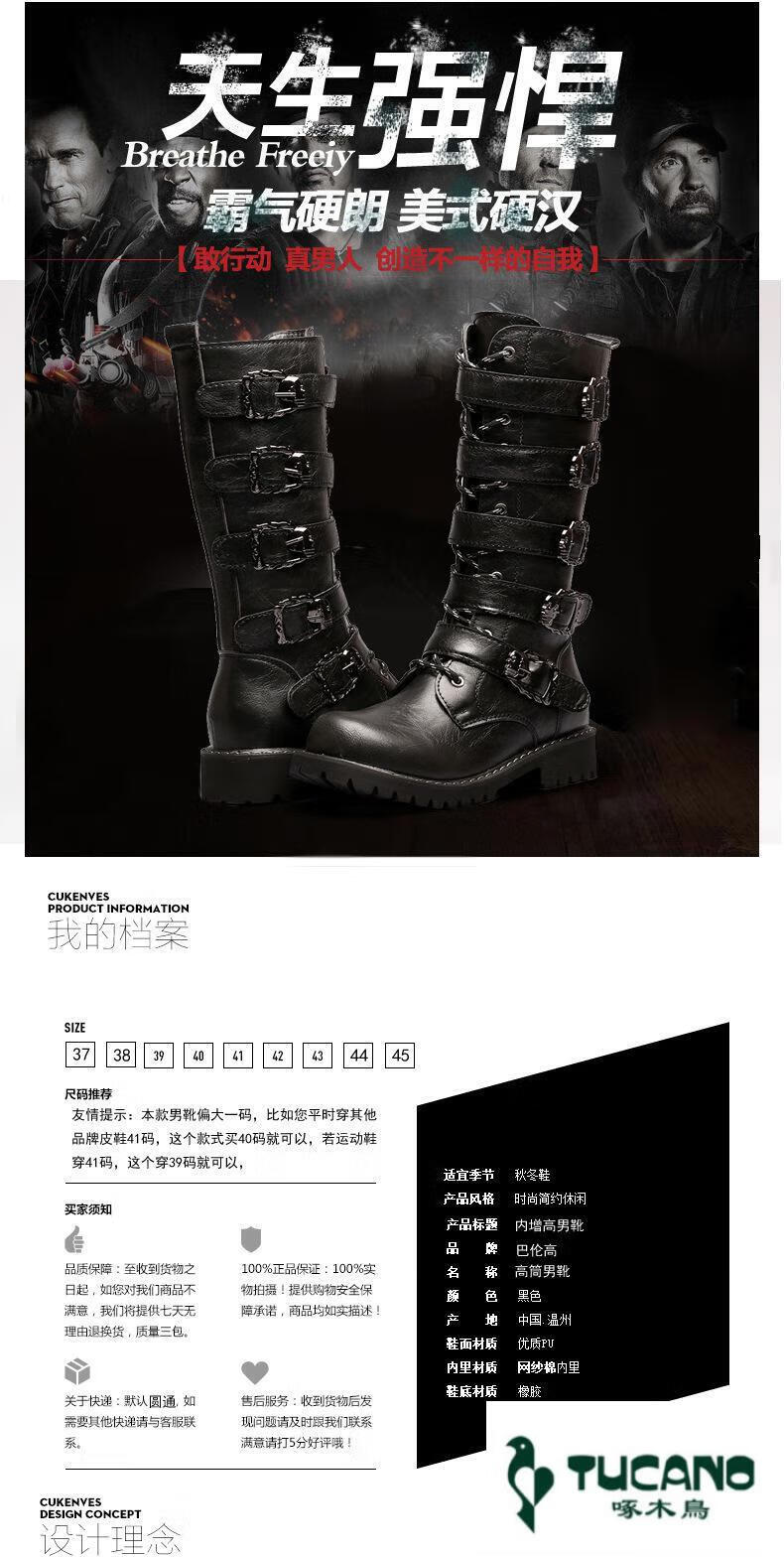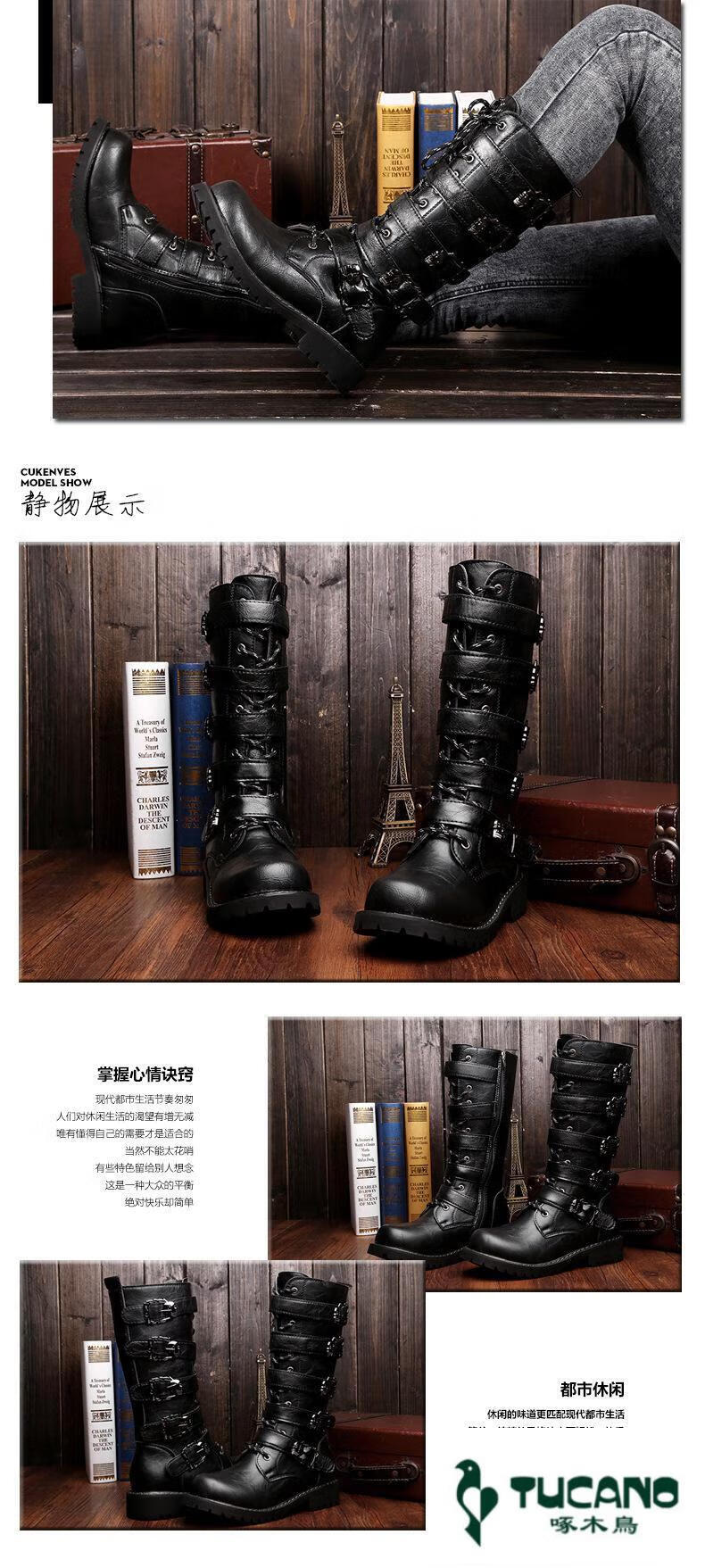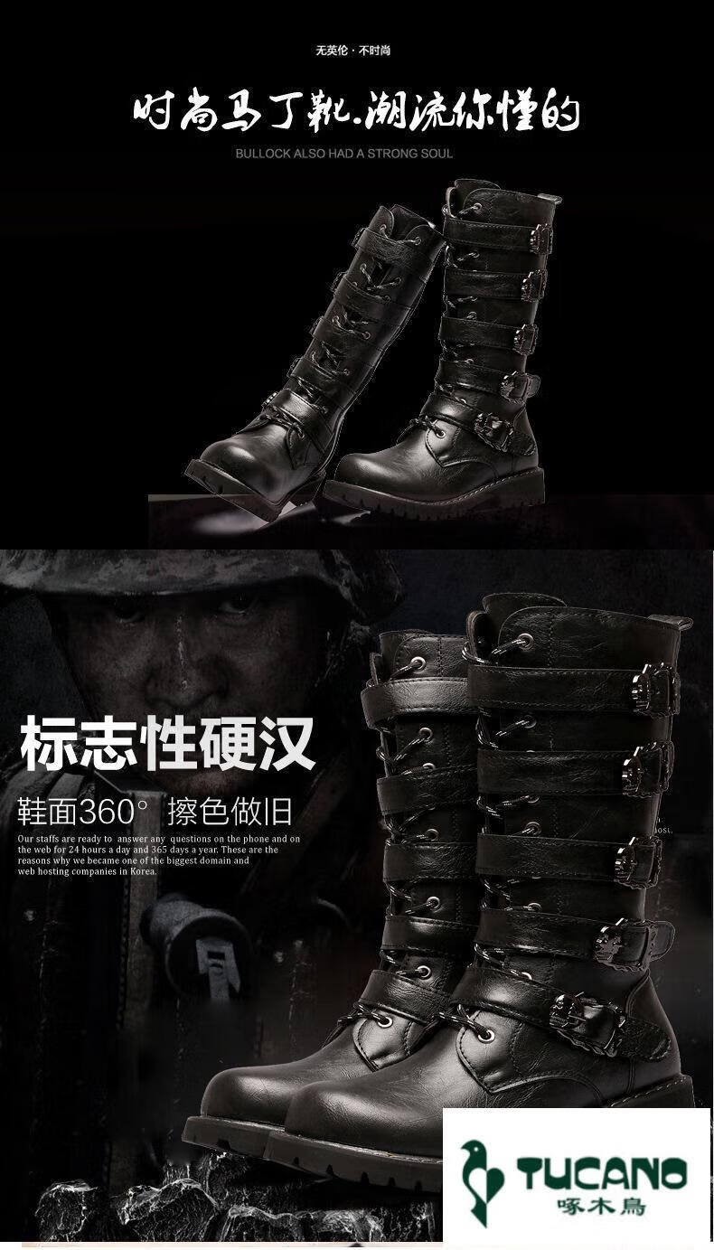 啄木鸟高档轻奢男大码高帮长靴韩版潮流马丁靴男士疯马皮靴英伦高筒靴子 黑色 42