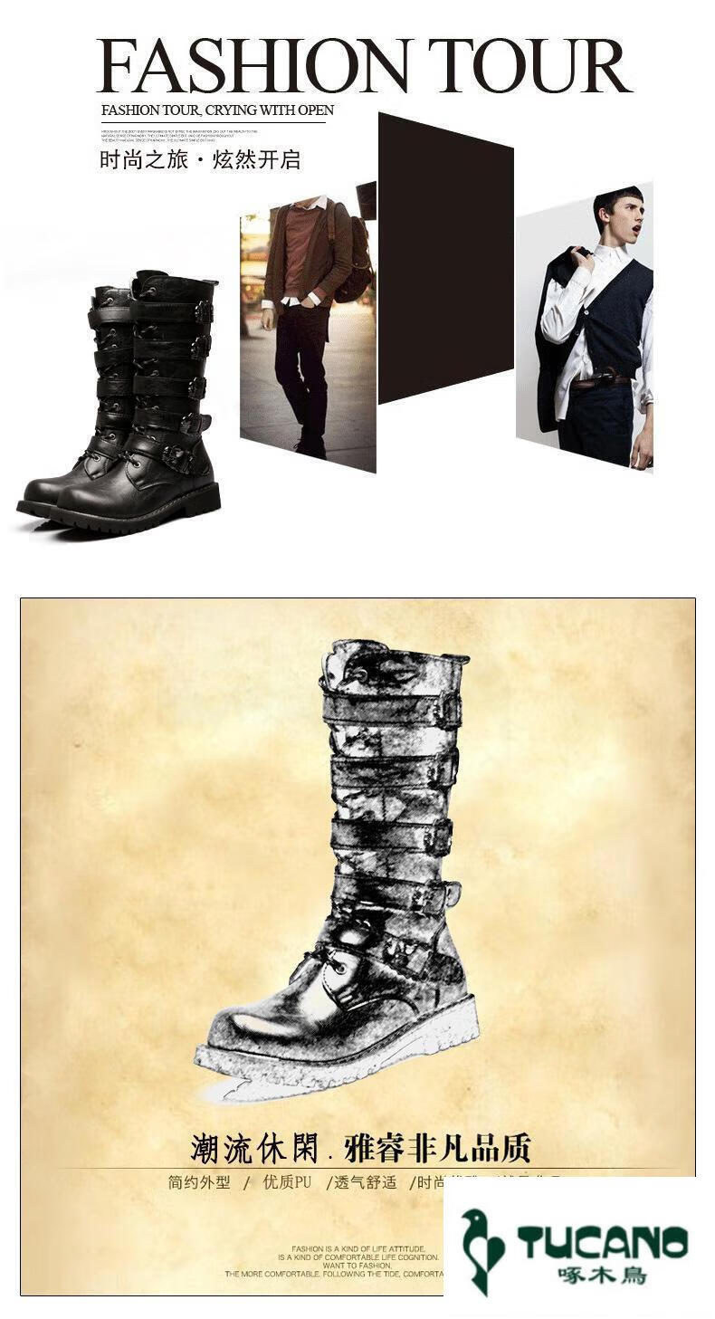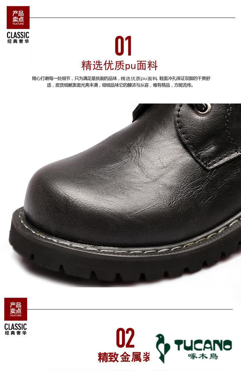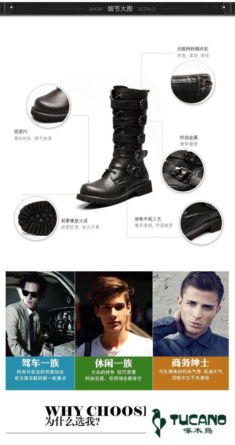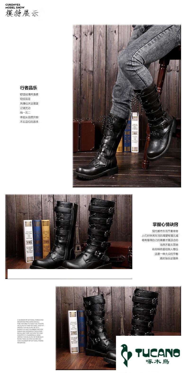啄木鸟高档轻奢男大码高帮长靴韩版潮流马丁靴男士疯马皮靴英伦高筒靴子 黑色 42
