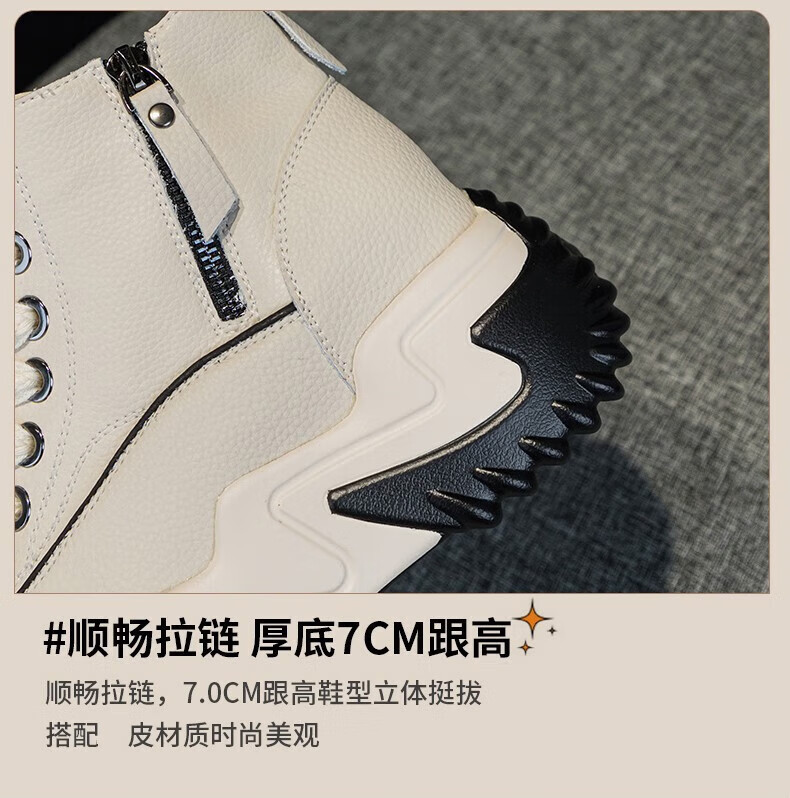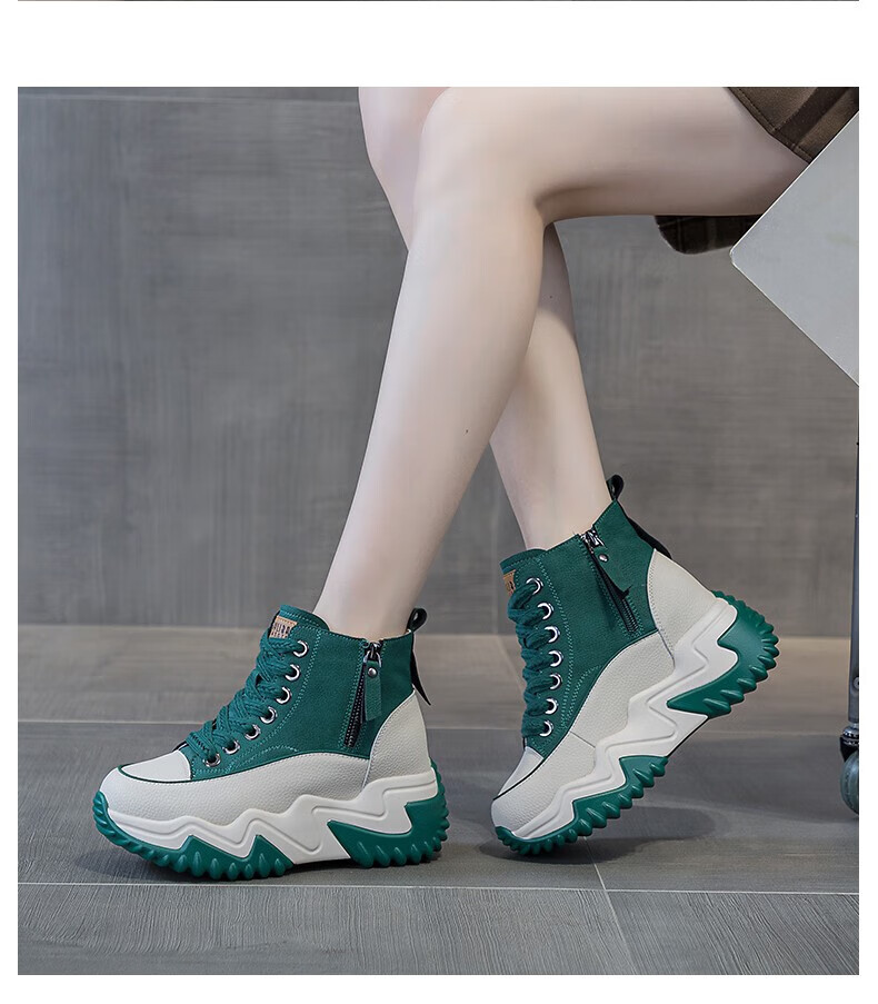 OTMX老爹鞋女休闲鞋牛皮高帮女鞋子2025春秋季新款百搭厚底旅游运动鞋 677黑色单里 38