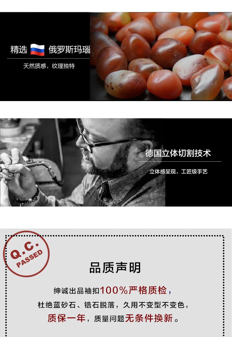 Shencheng natural agate men's shirt cufflinks high-end French cuff nails light luxury birthday gift gift box natural Russian agate cufflinks