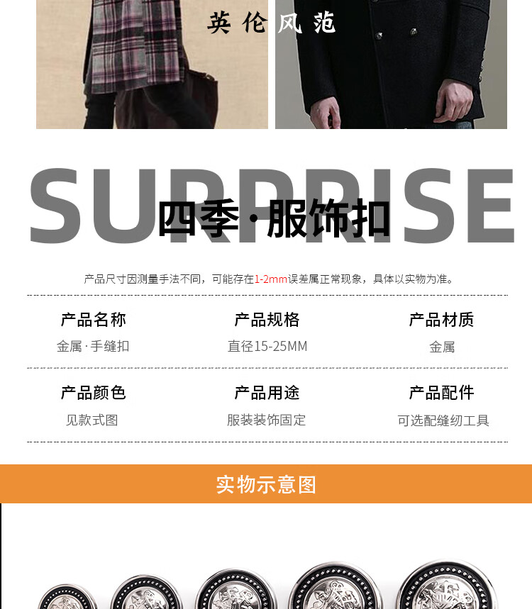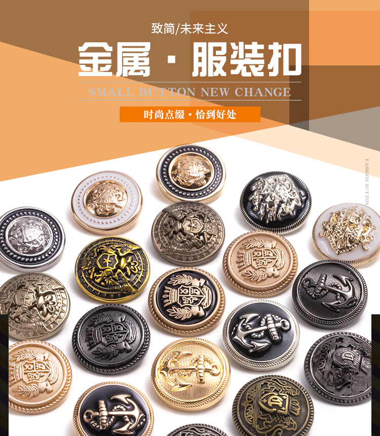 睿爸纽扣金属扣子大衣西装扣西服风衣袖扣男上衣女收腰裤扣高档大钮扣 亮金撞黑色【船锚造型】 22-23MM可用【4颗】