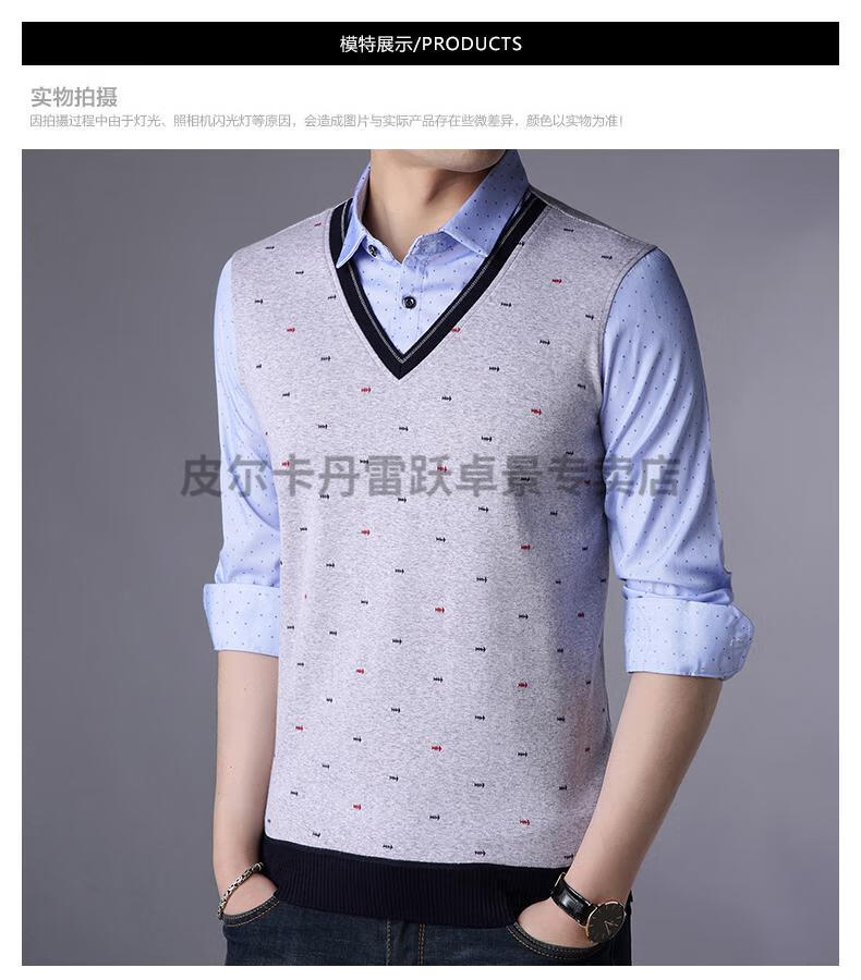 Pierre Cardin camisa cálida falsa de dos piezas 2025 otoño e invierno nueva camisa de manga larga para hombres camisa engrosada de terciopelo de una sola pieza 3878 terciopelo azul engrosado 185 / 3XL recomendado 175-190Jin Jin equivale a 0,5 kg