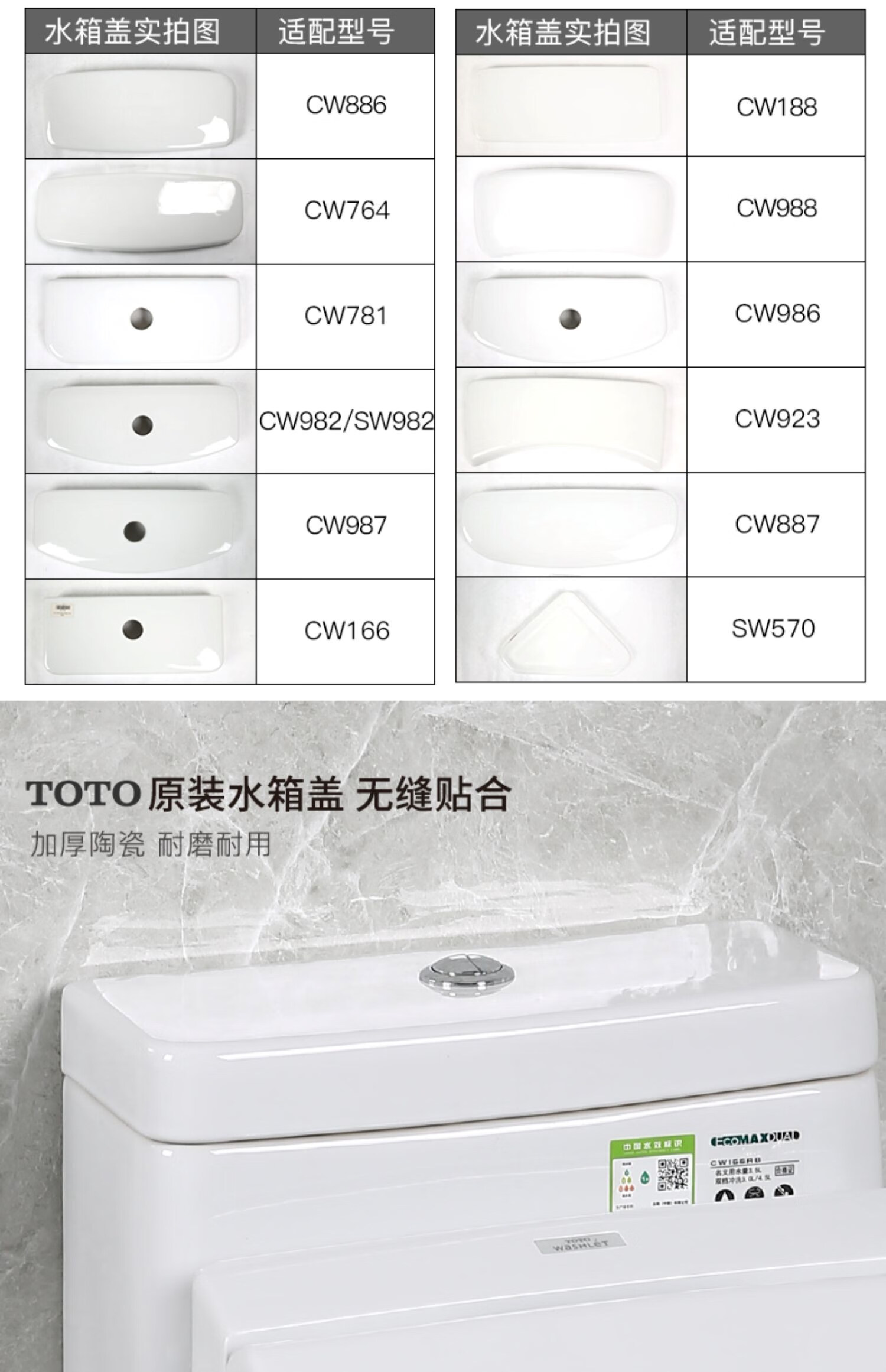 TOTO原装马桶水箱盖配件通用陶瓷盖CW854 988 188 886 764(11) CSW719/CSW739GB水箱盖