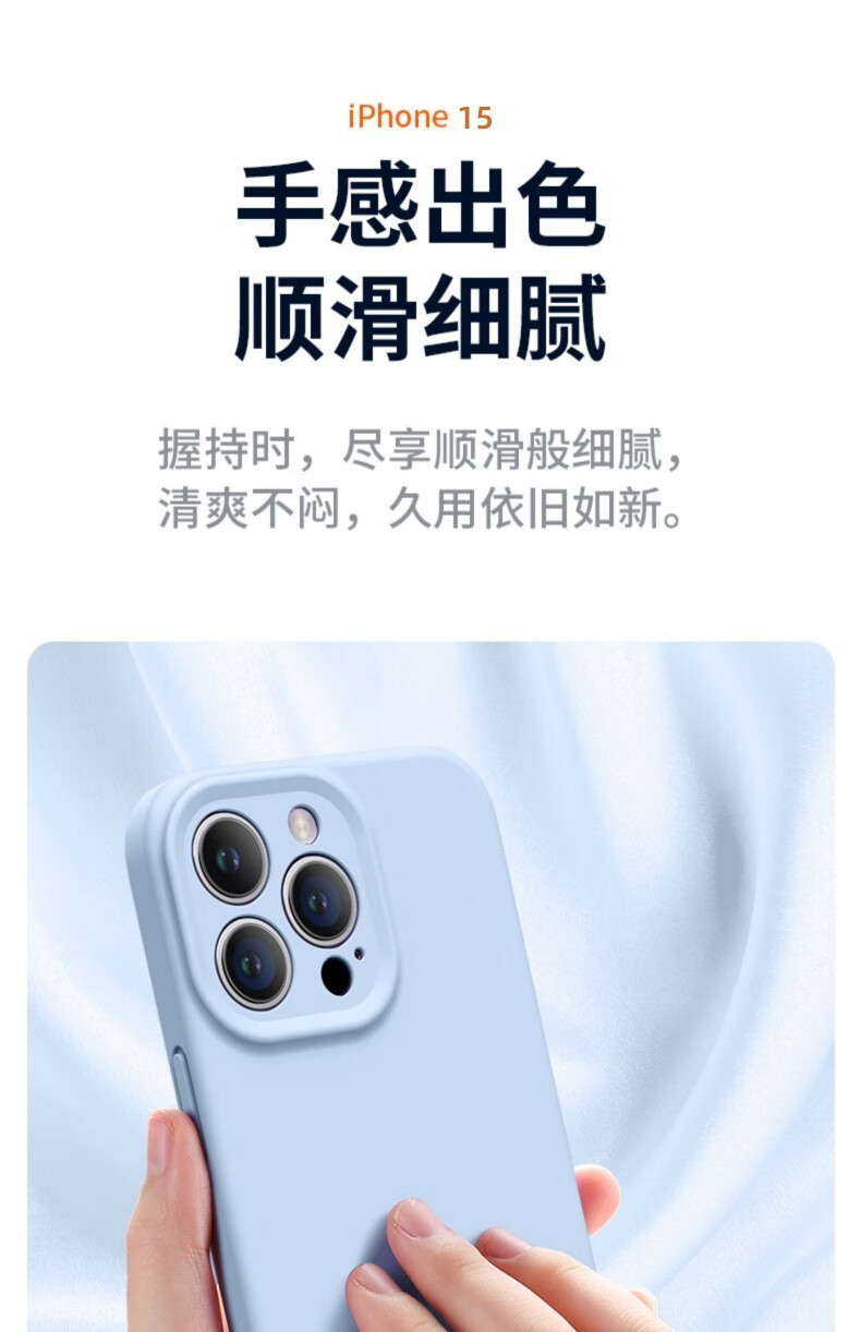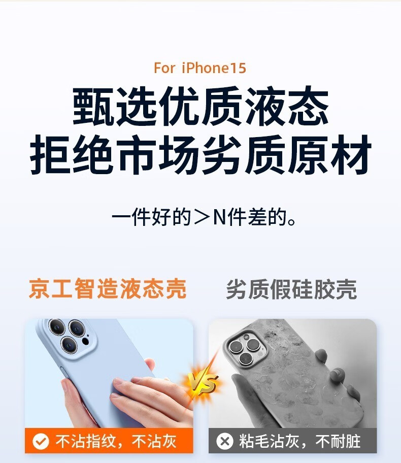 Made by Jinggong Intelligent Manufacturing, the skin feels really liquid, suitable for Apple 15 mobile phone case, iPhone 15promax, all-inclusive anti-fall liquid silicone plus case, simple and ultra-thin men and women, Apple 15ProMax, titanium original color, free tempered film, liquid skin feel, inner bottom border flocking