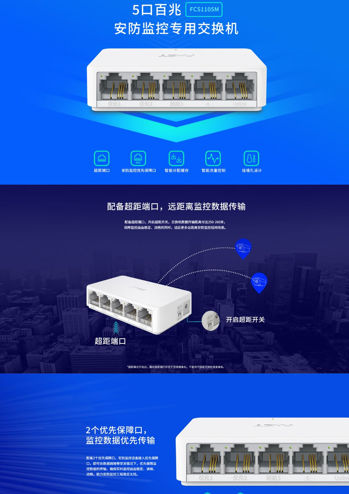 FCS1105M 5口百兆塑壳安防监控专用交换机