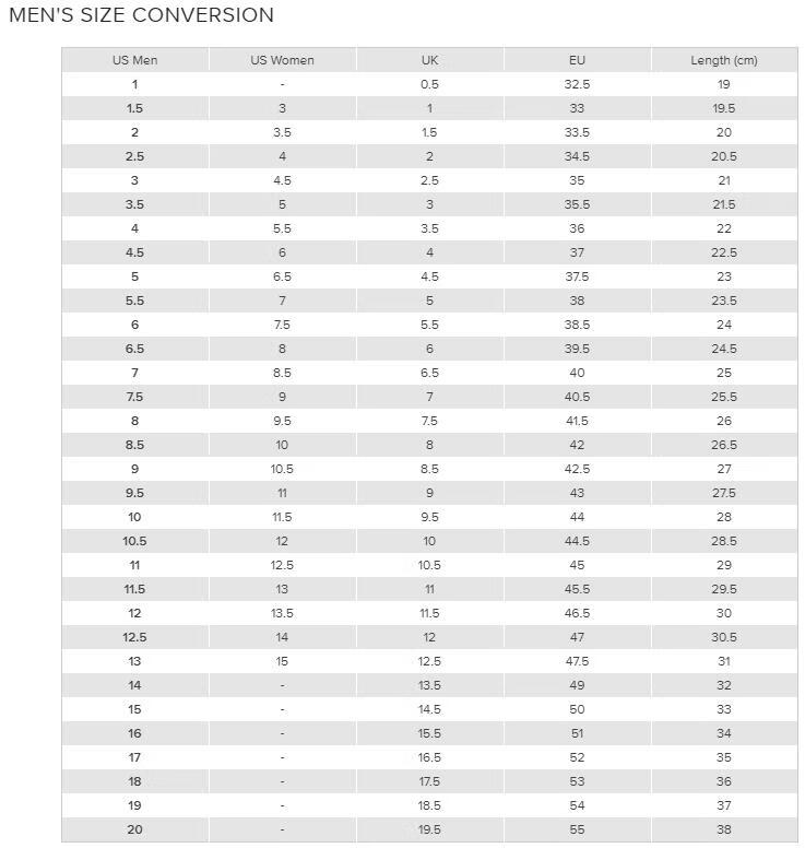 USA 5 5.5 6 7 7.5 8.5 9.5 10 10.5 12 13 14 15.5