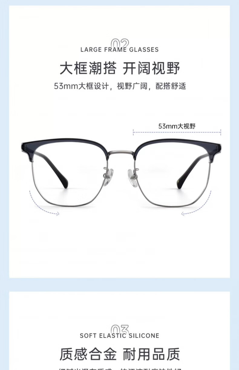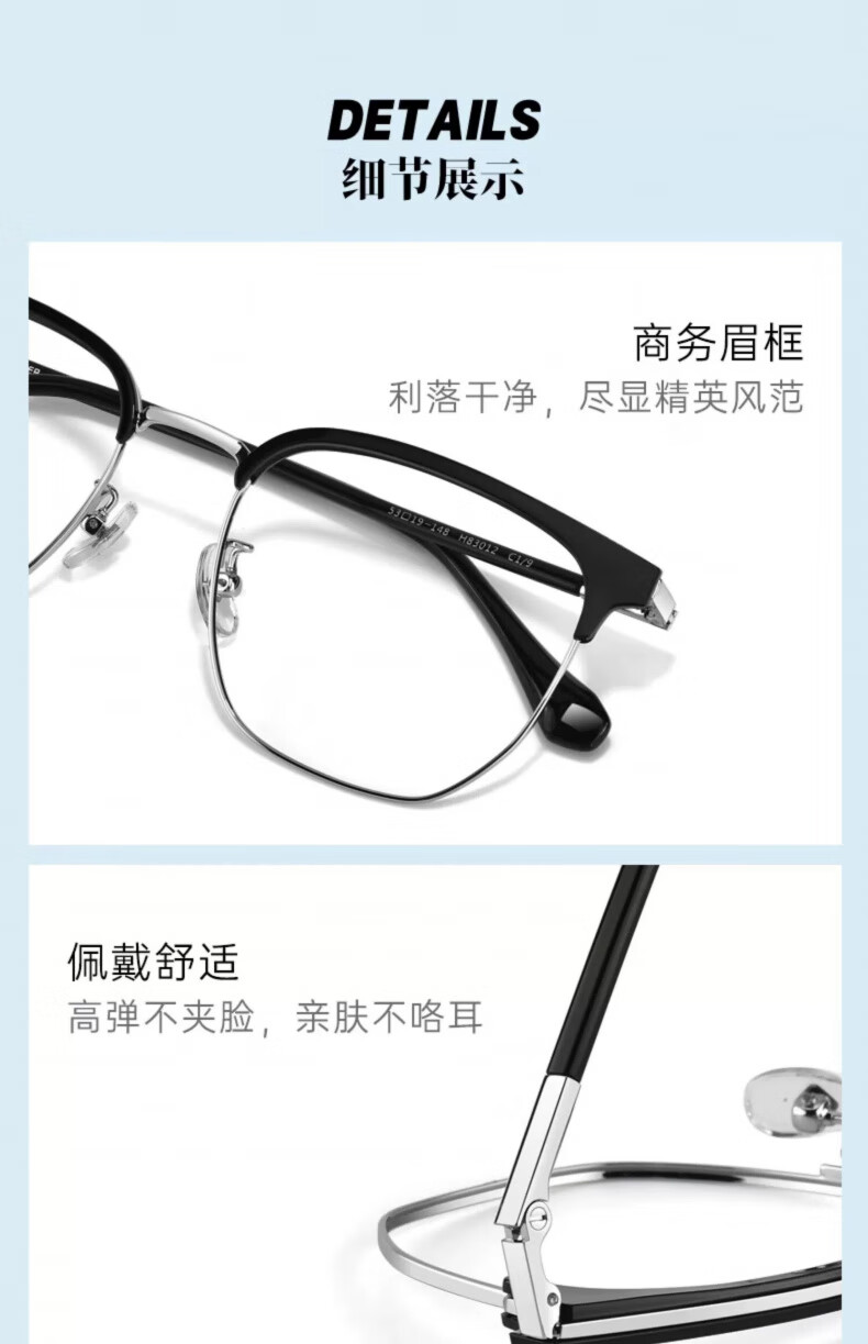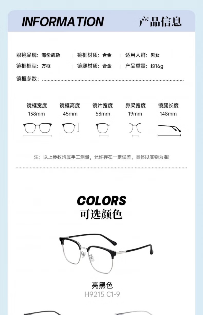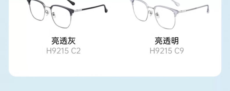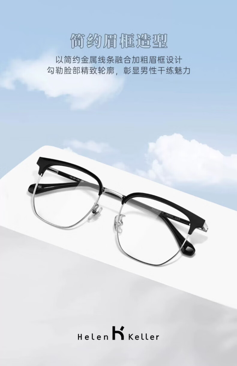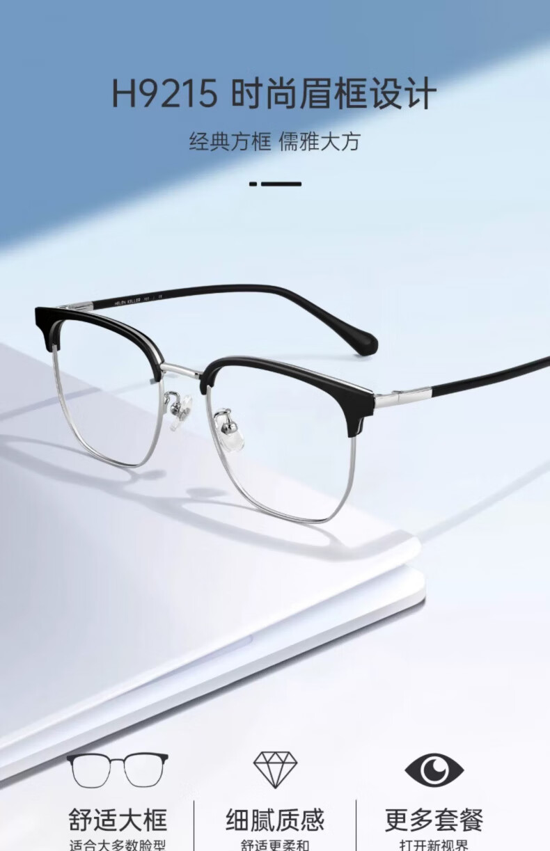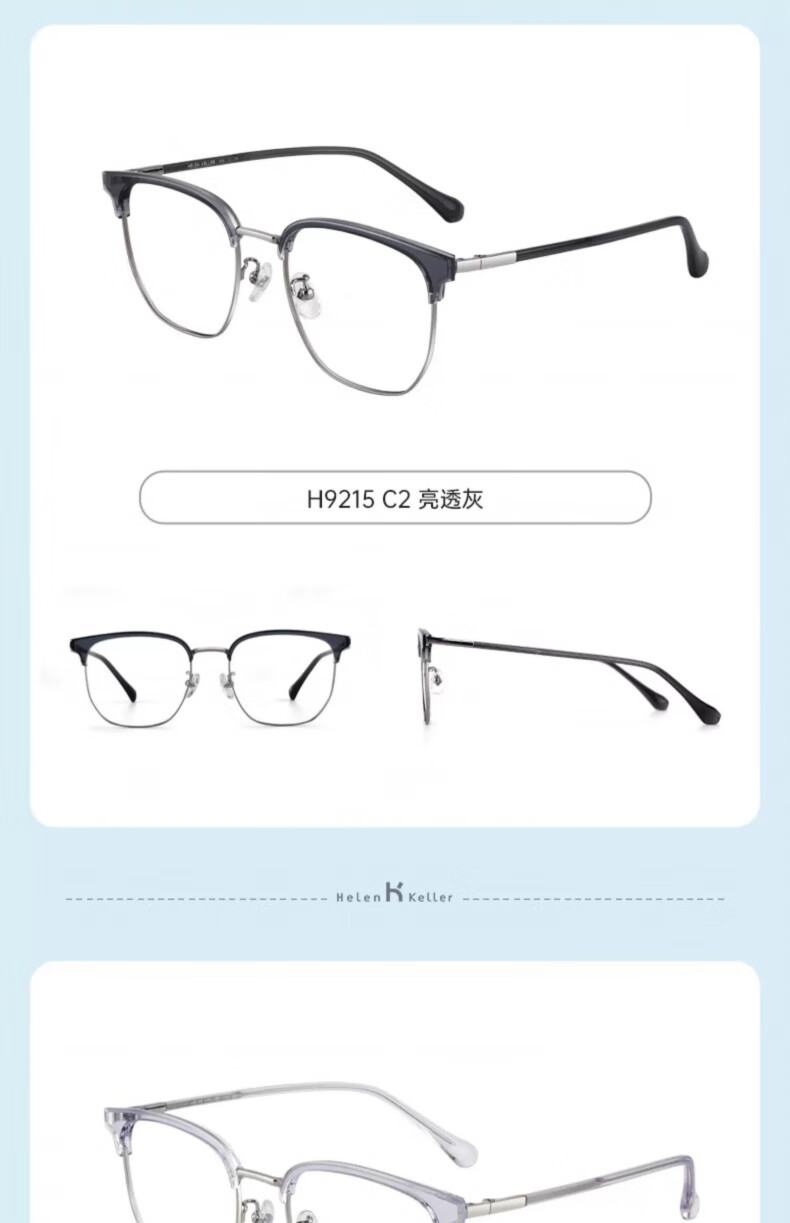 海伦凯勒近视半框款眼镜男商务眉框近视眼镜配度数眼镜H9215 H9215C2透灰框+浅枪
