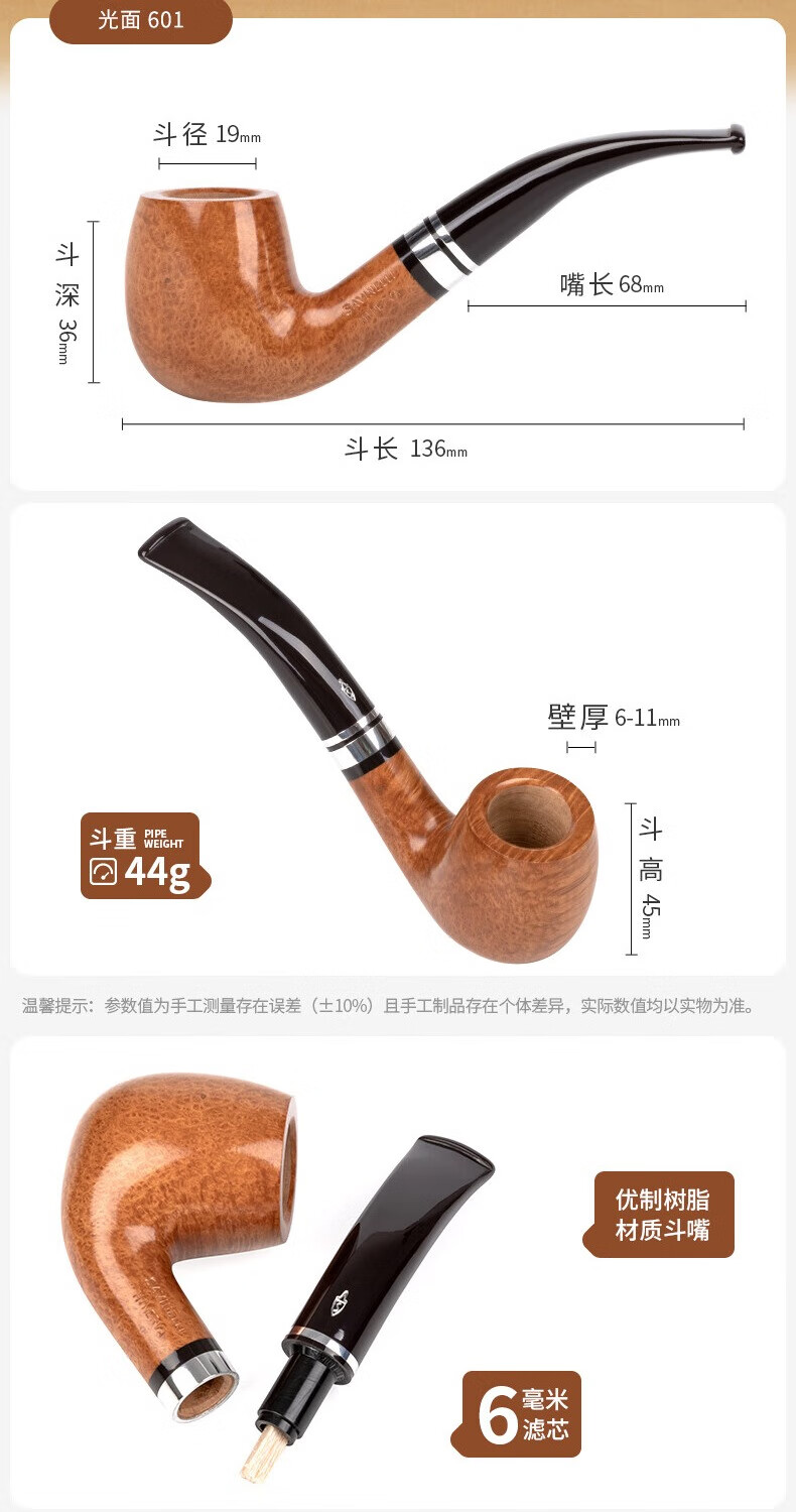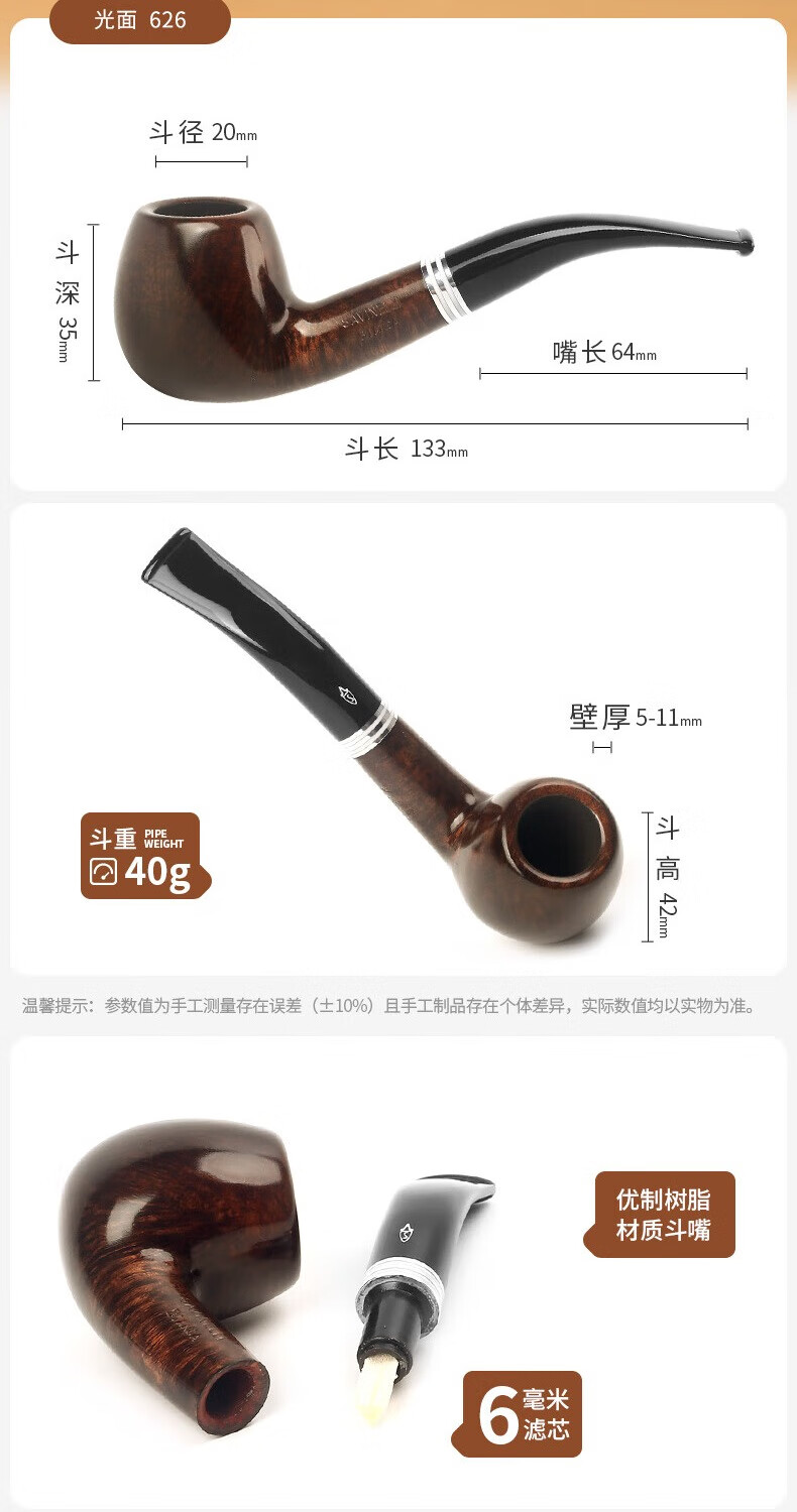 SAVINELLI recommends 626 high-end men's solid wood filter pipe briar wood imported from Italy, 677 pipe type, classic large size, gift recommendation