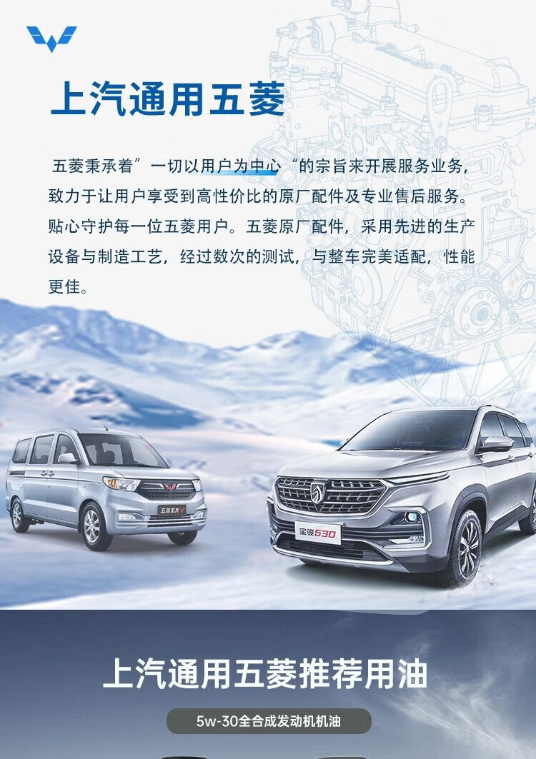 Das vollsynthetische Motoröl SN 5W-30/Rongguang/Baojun 730/Capgemini Baojun von Wuling Hongguang ist für mehrere Fahrzeuge geeignet. Ein 1,2-Liter-Maschinenfilter + eine Flasche Motoröl, 4 Liter