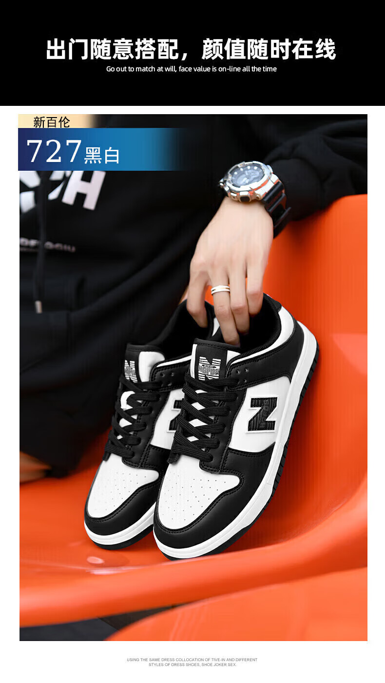 New Balance Men's Shoes N Sneakers 2025 Spring and Summer Shoes Casual Shoes Couples Sports Shoes White Shoes Black and White Panda Travel Shoes 3 727 Black and White 39