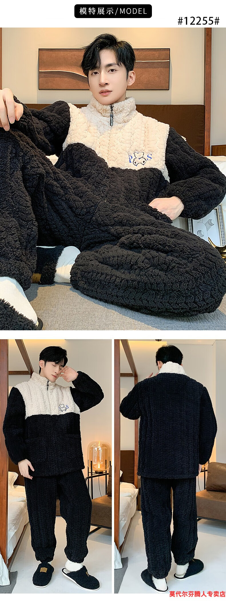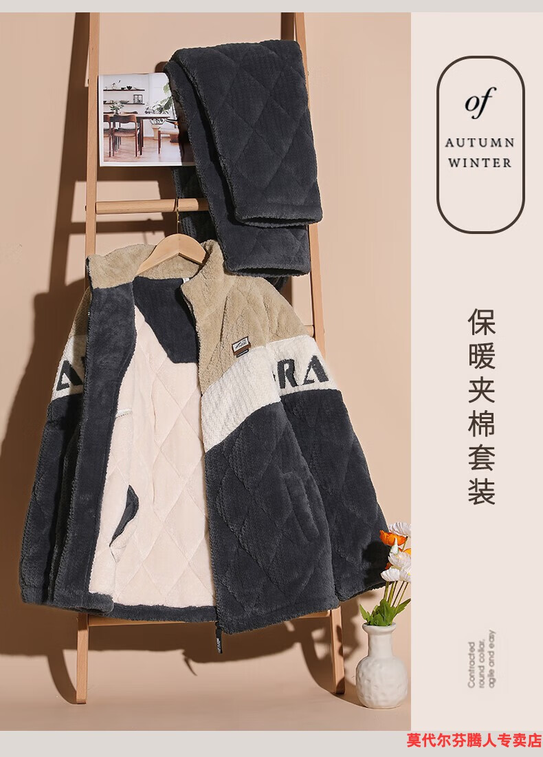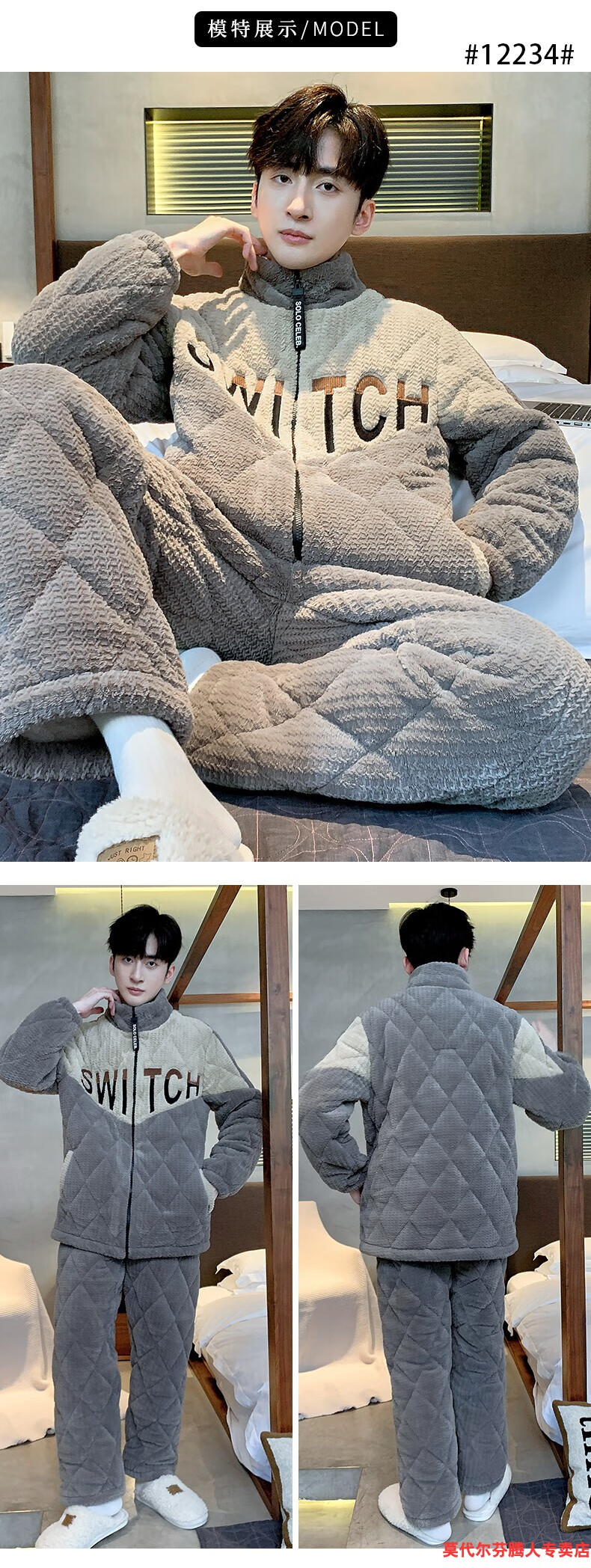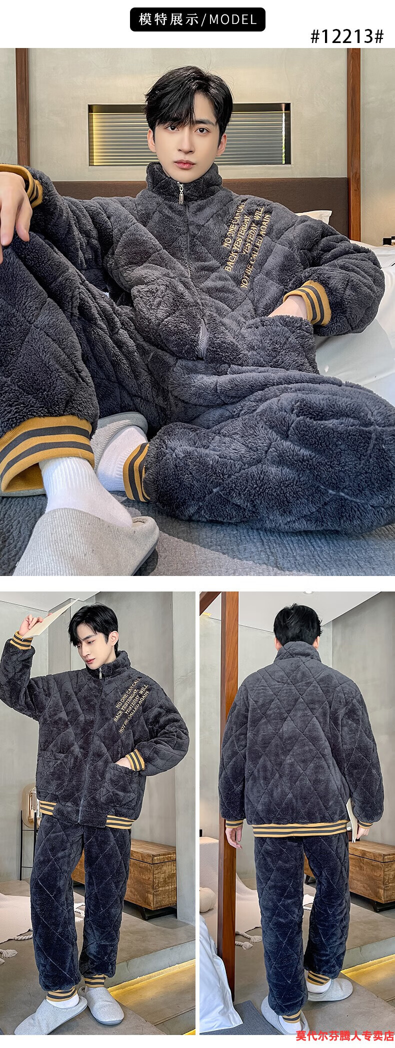 Modal winter men's pajamas coral velvet three-layer quilted zipper home clothes youth Internet celebrity winter style plus velvet thickening YXO12240 coral velvet quilted men's style XL