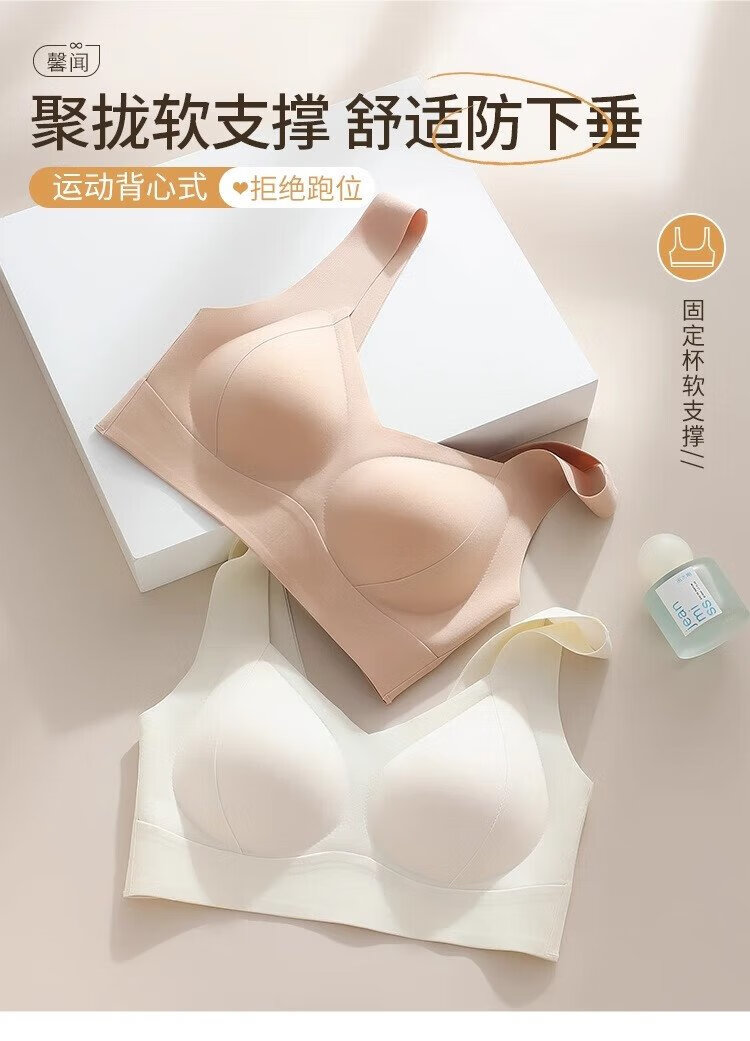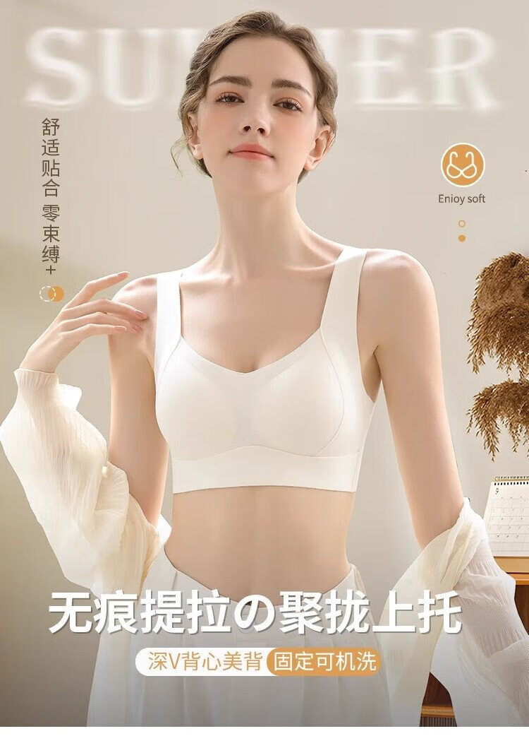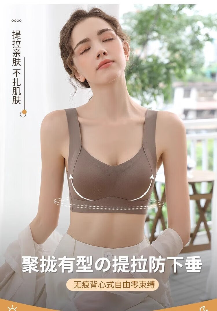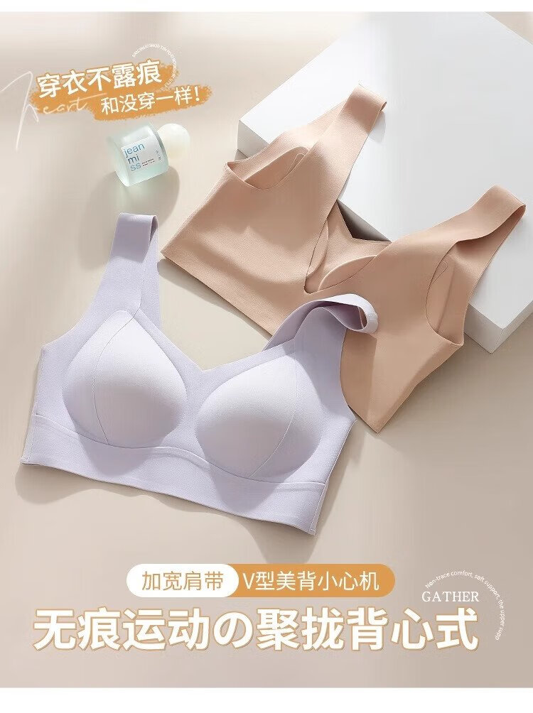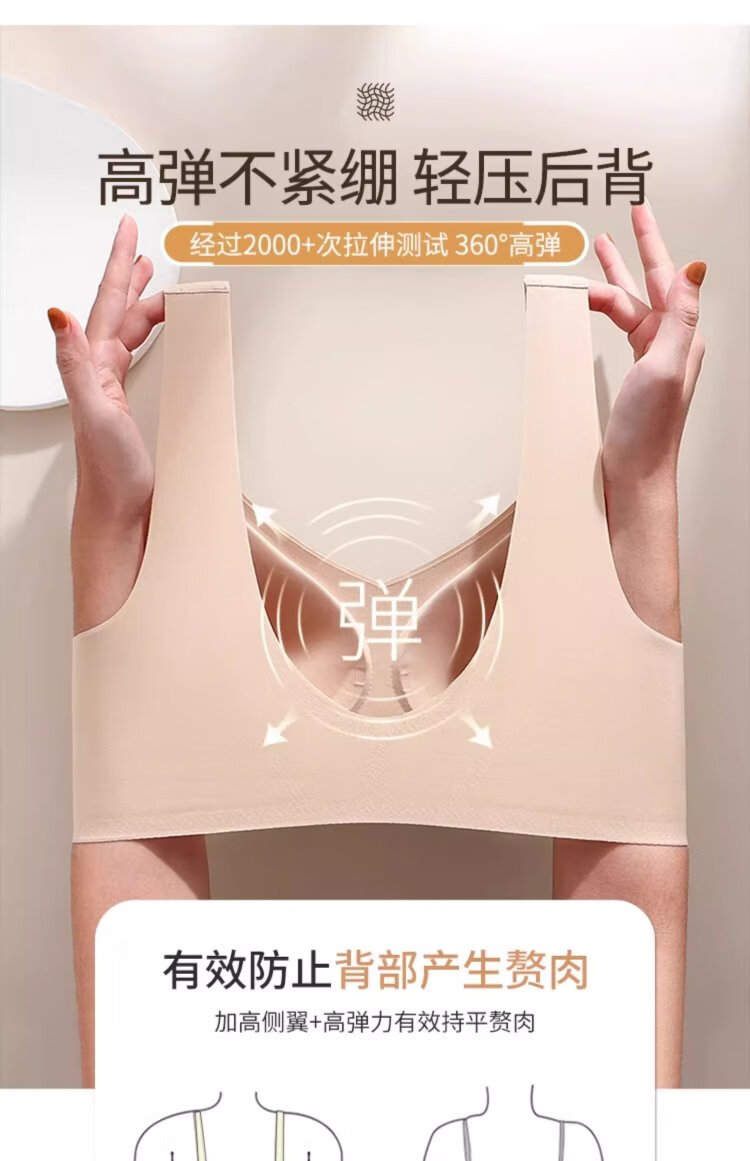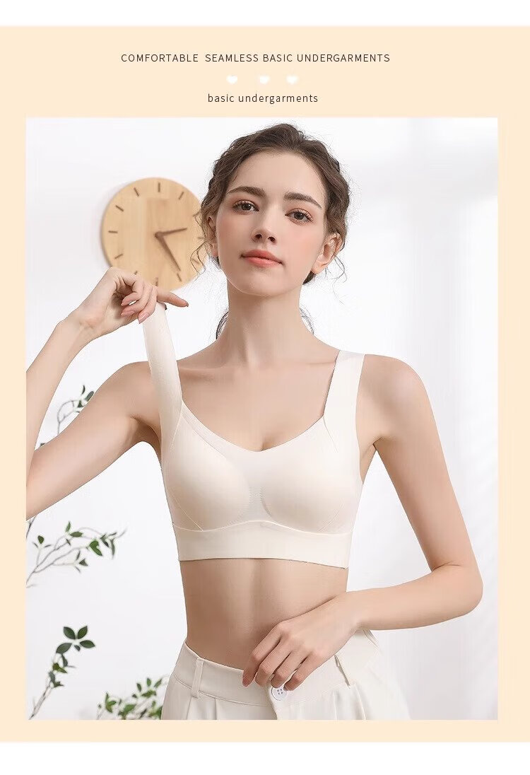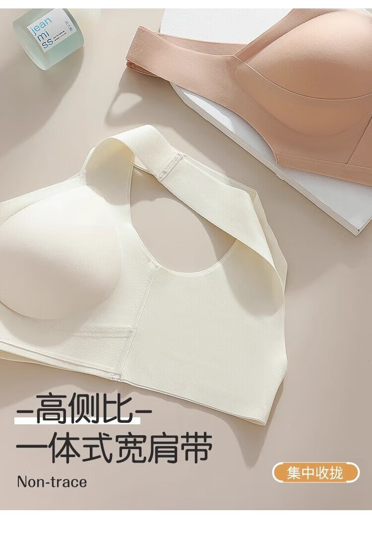 莫代尔无痕内衣女小胸聚拢提拉收副乳防下垂胸罩运动美背心式无钢圈文胸 奶白【单件装 提拉聚拢】 M 【推荐95-110斤】