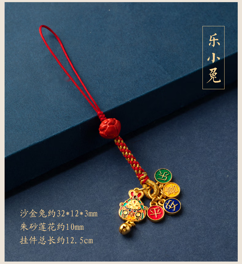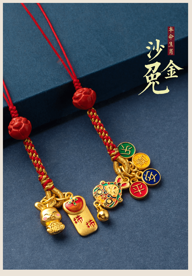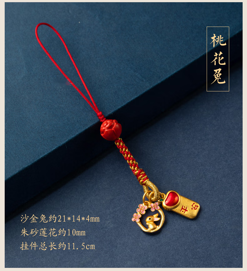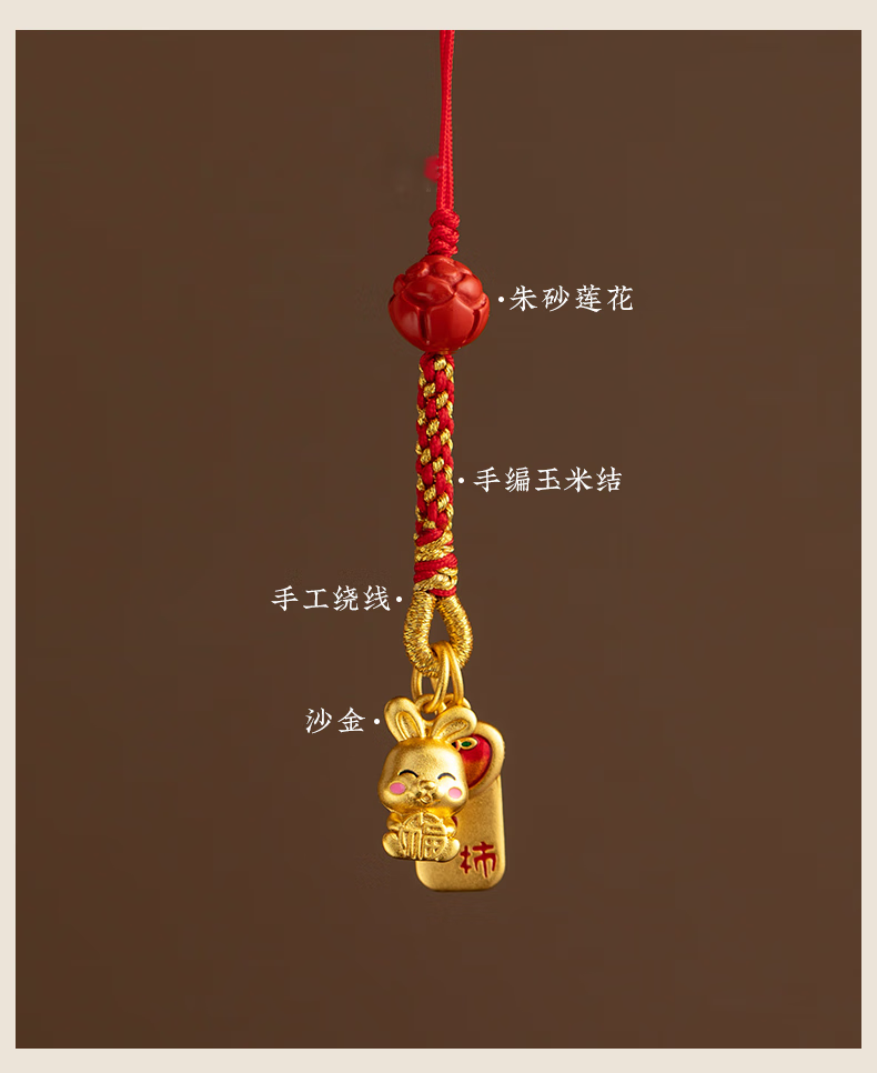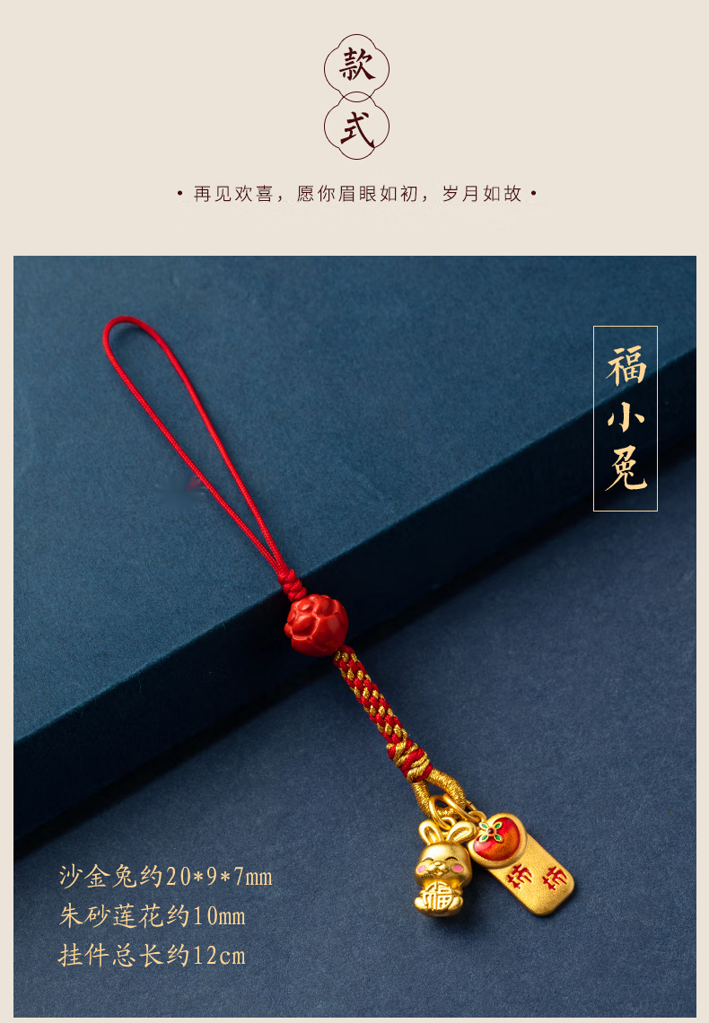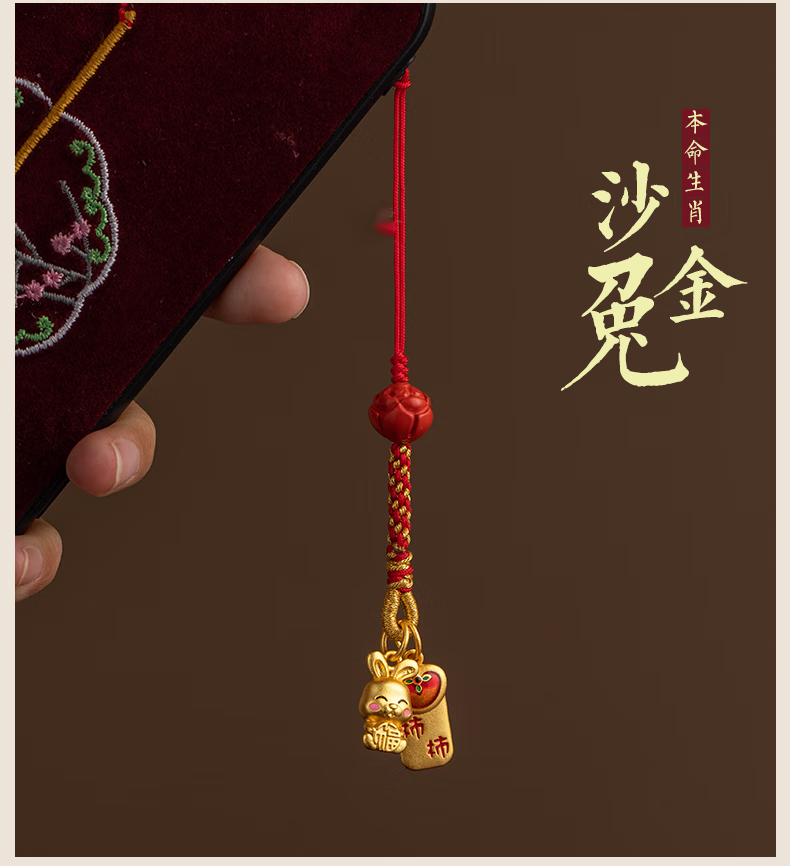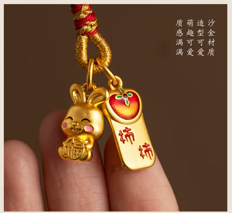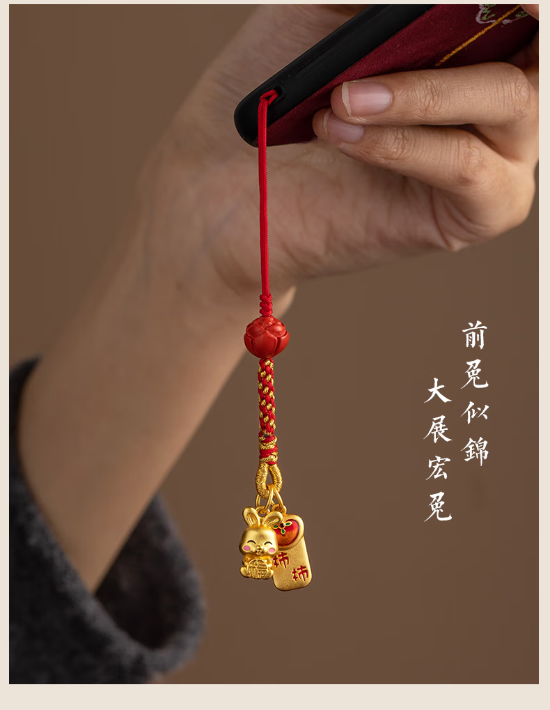 初享(CHUXIANG)本命年生肖手机链挂绳古法金兔子柿柿如意平安喜乐挂件中国风 福小兔