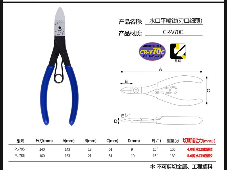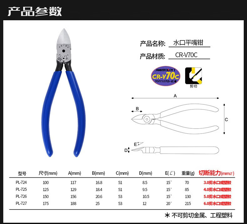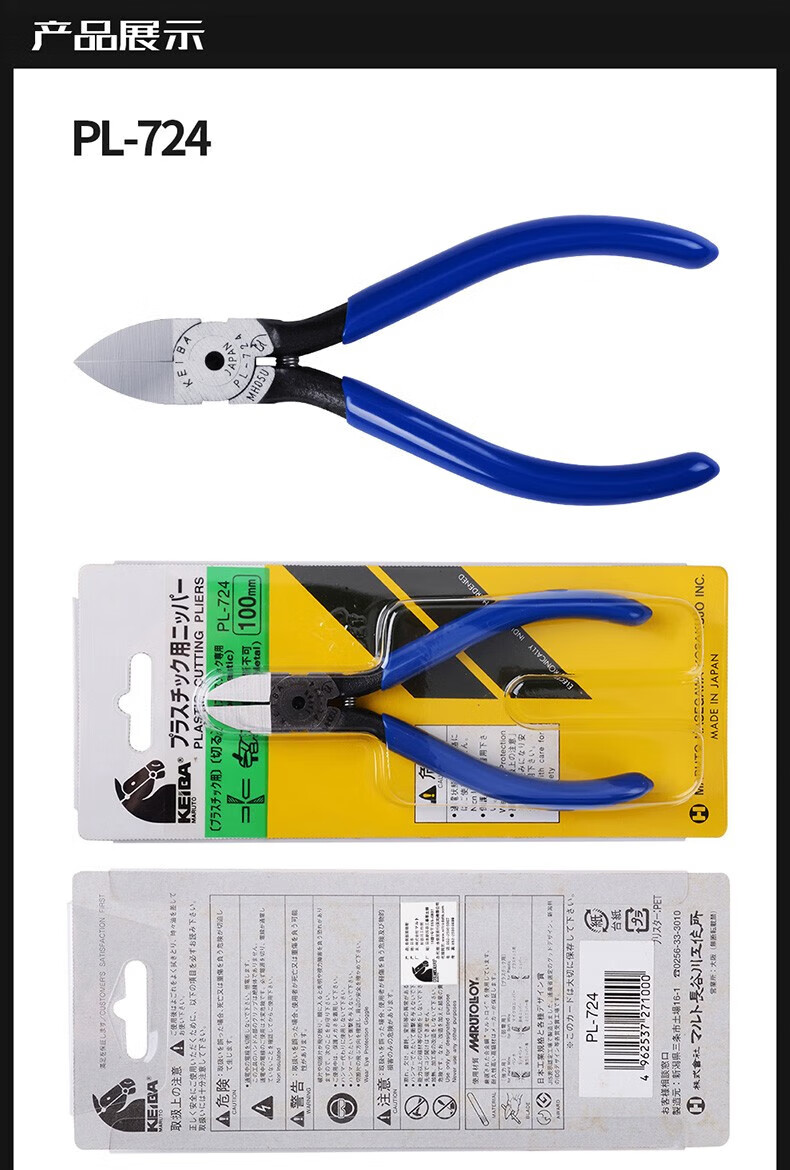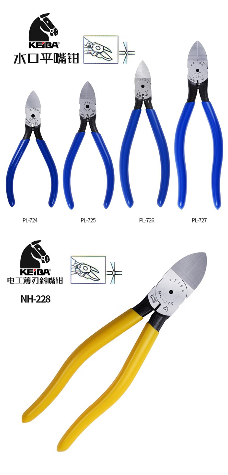 Alicates de punta diagonal KEIBA, cortadores de alambre electrónicos de precisión de grado industrial, alicates de punta diagonal de acero inoxidable, alicates de boca de agua para electricista, alicates de punta diagonal, alicates de punta plana, PL-724, alicates de punta plana con boca de agua de 4 pulgadas