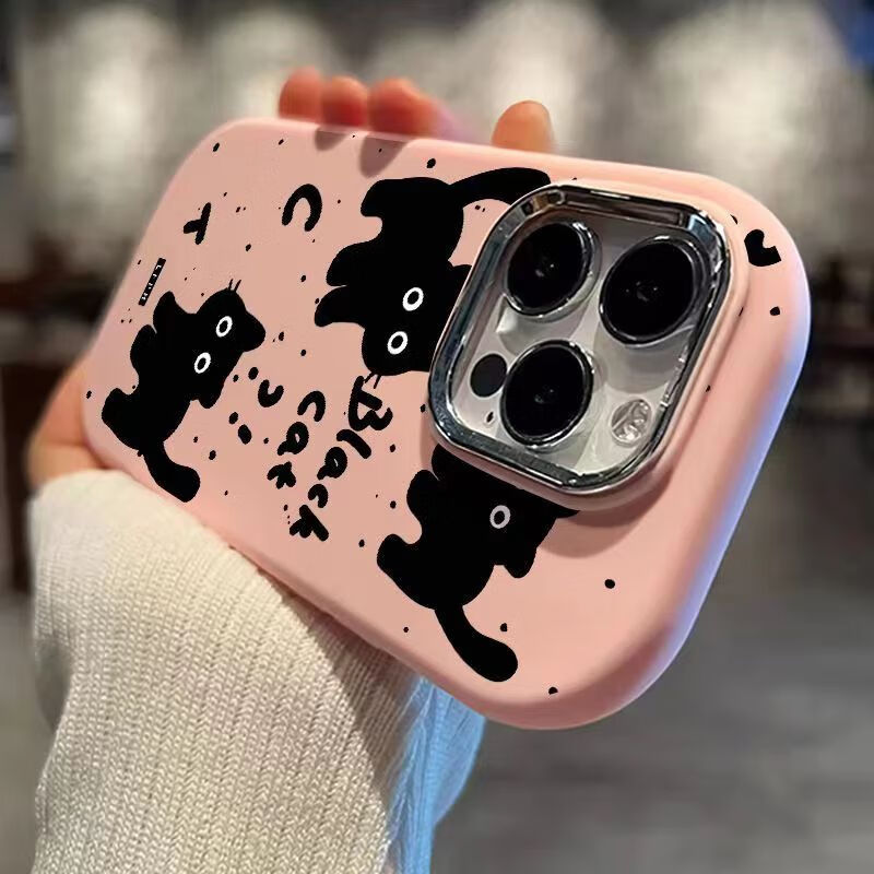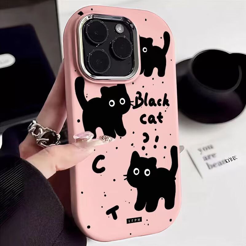 Trendy and cute cats suitable for Redmi K70 mobile phone case Xiaomi 14 oval silicone Note13 cartoon soft case 12TPRO men's and women's K60 anti-wear and fall-proof three black cats on blue background soft case Xiaomi 14