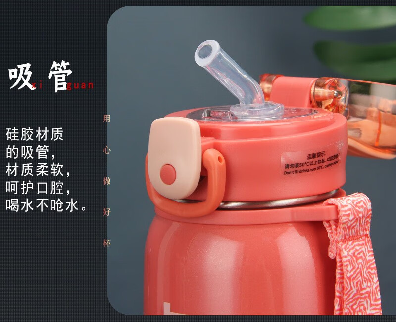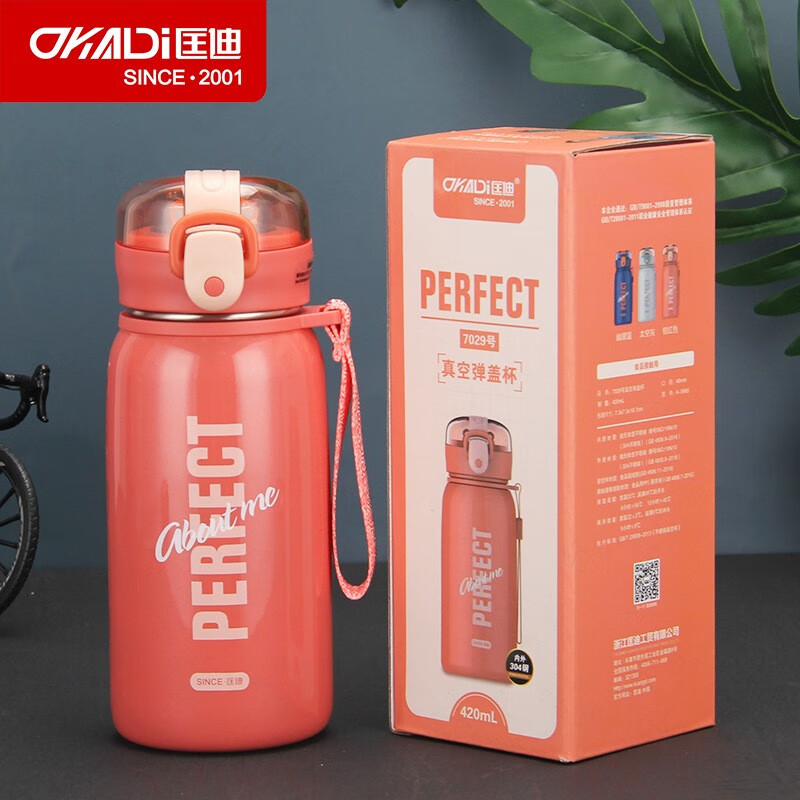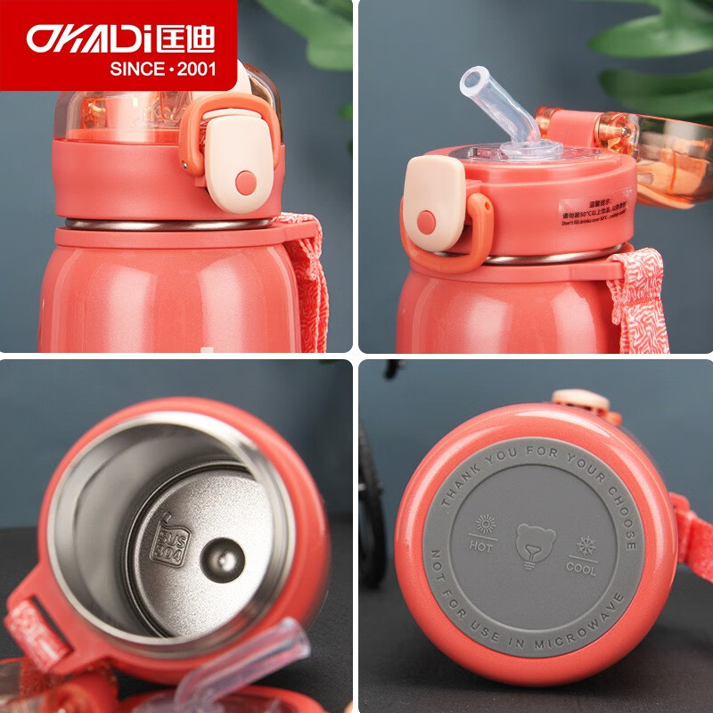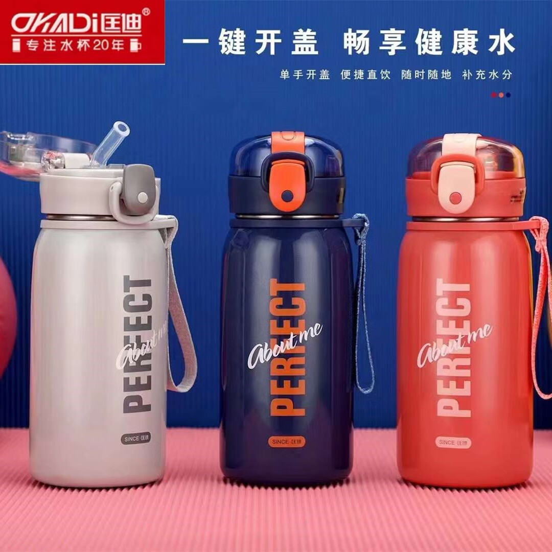 Kuangdi Nr. 7029 Thermobecher für erwachsene Schüler mit Strohhalm, 304 Edelstahl-Wasserbecher, kleiner tragbarer Wasserbecher, Kuangdi Nr. 7029-420 ml/grau