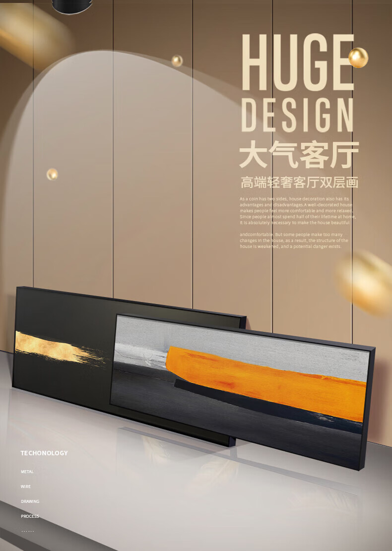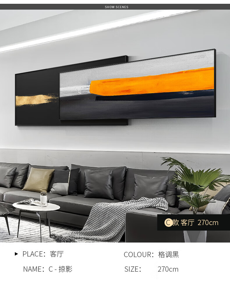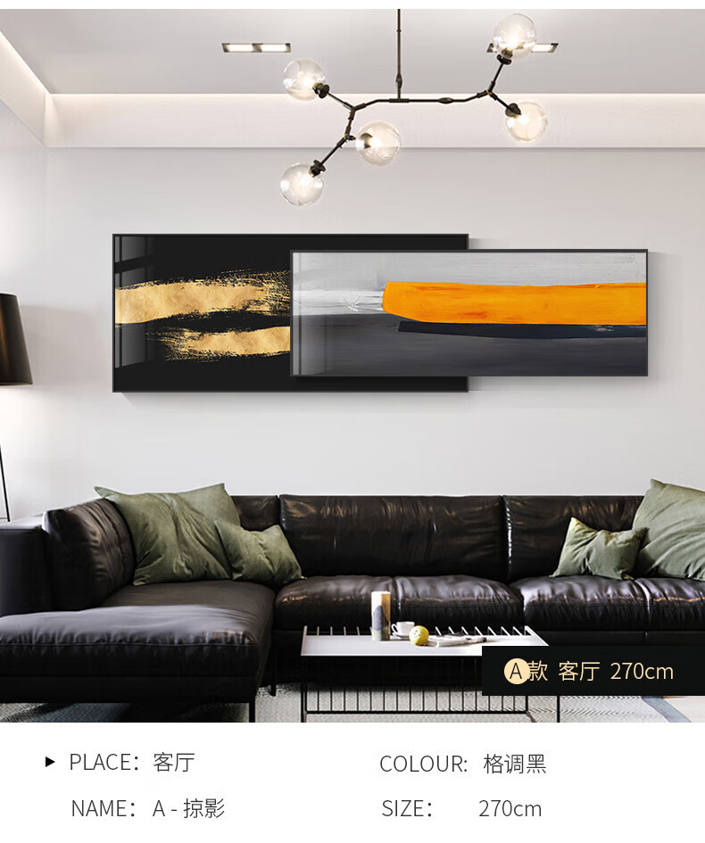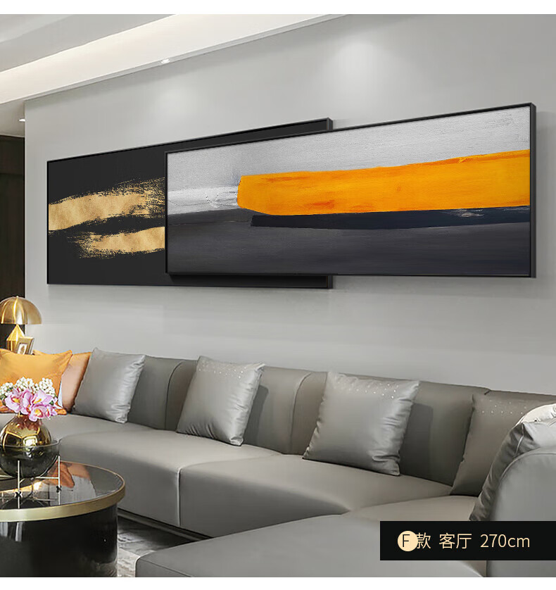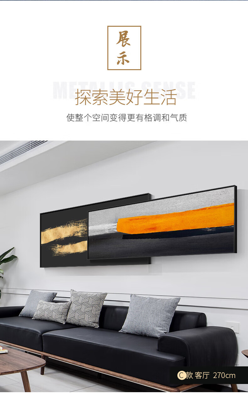 木典兴现代简约客厅装饰画沙发背景墙挂画办公室大气叠加抽象壁画 A-掠影亮橙色 50*12040*120 轻奢金 油画布