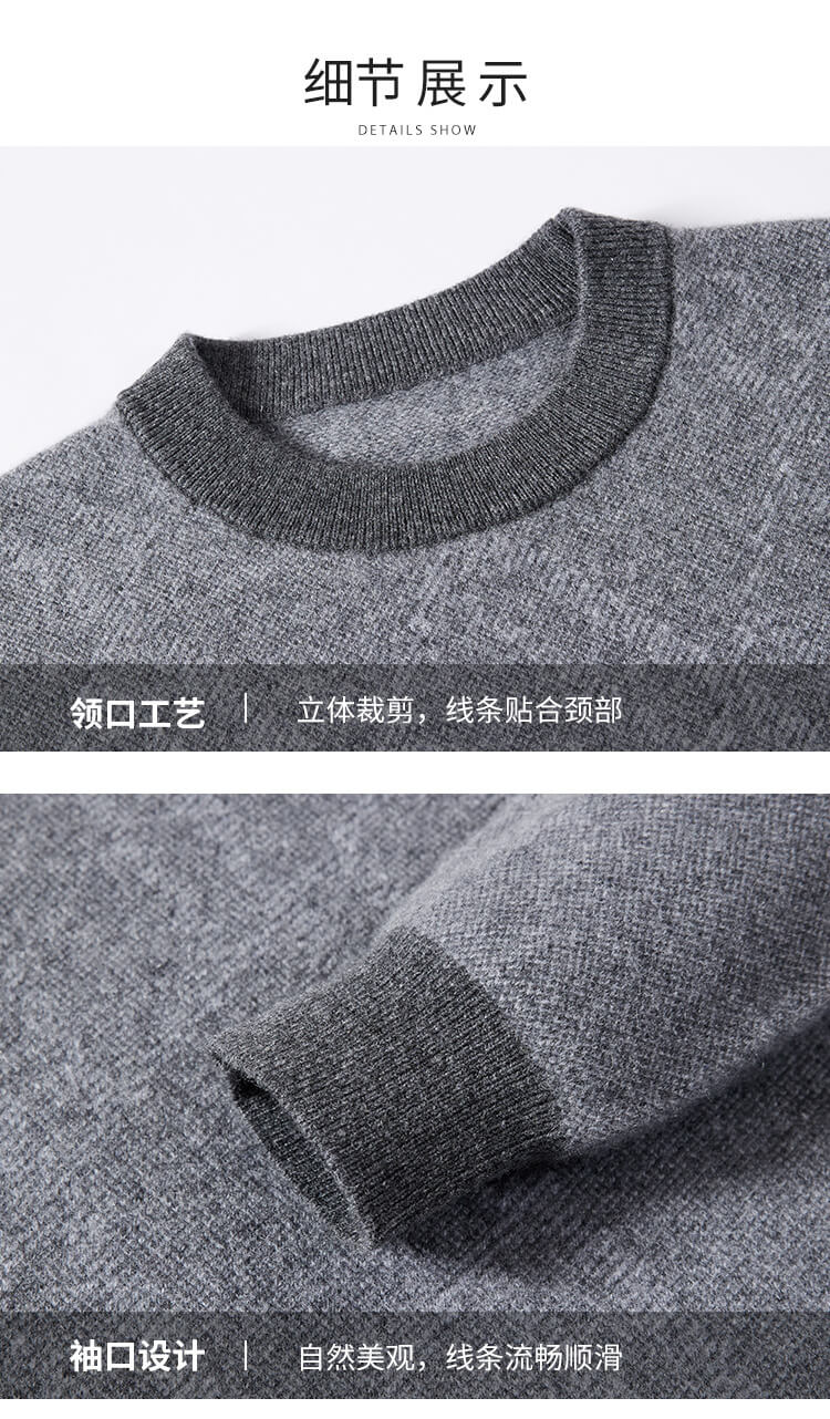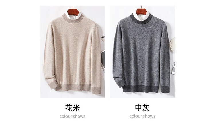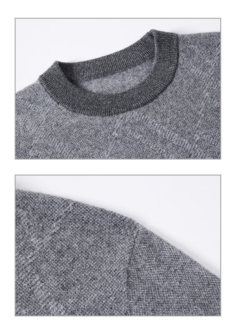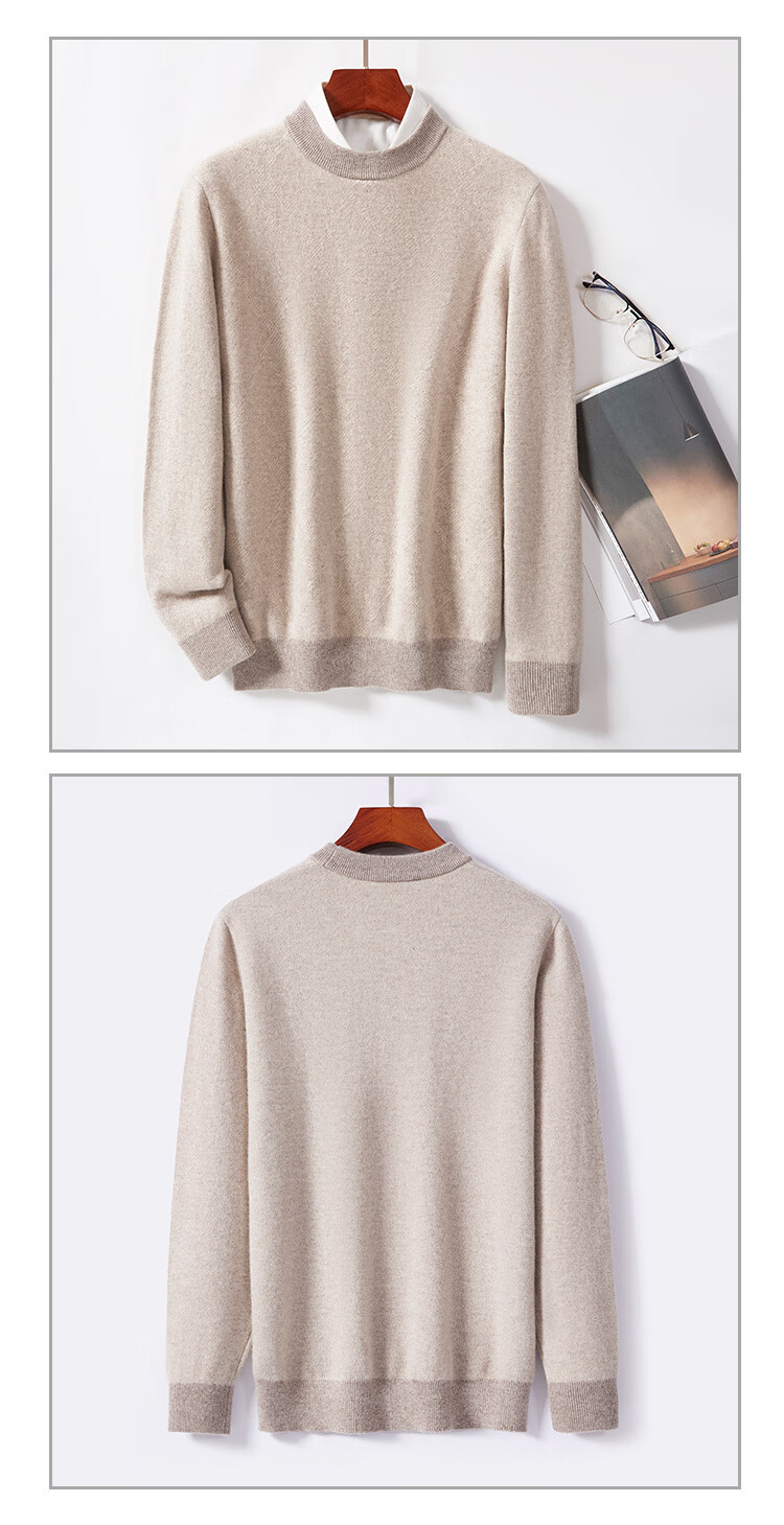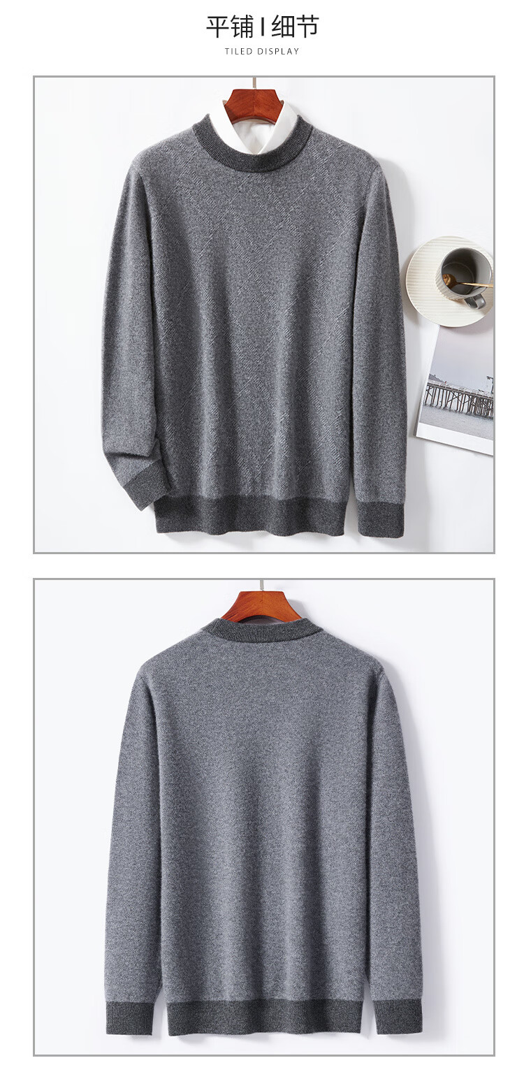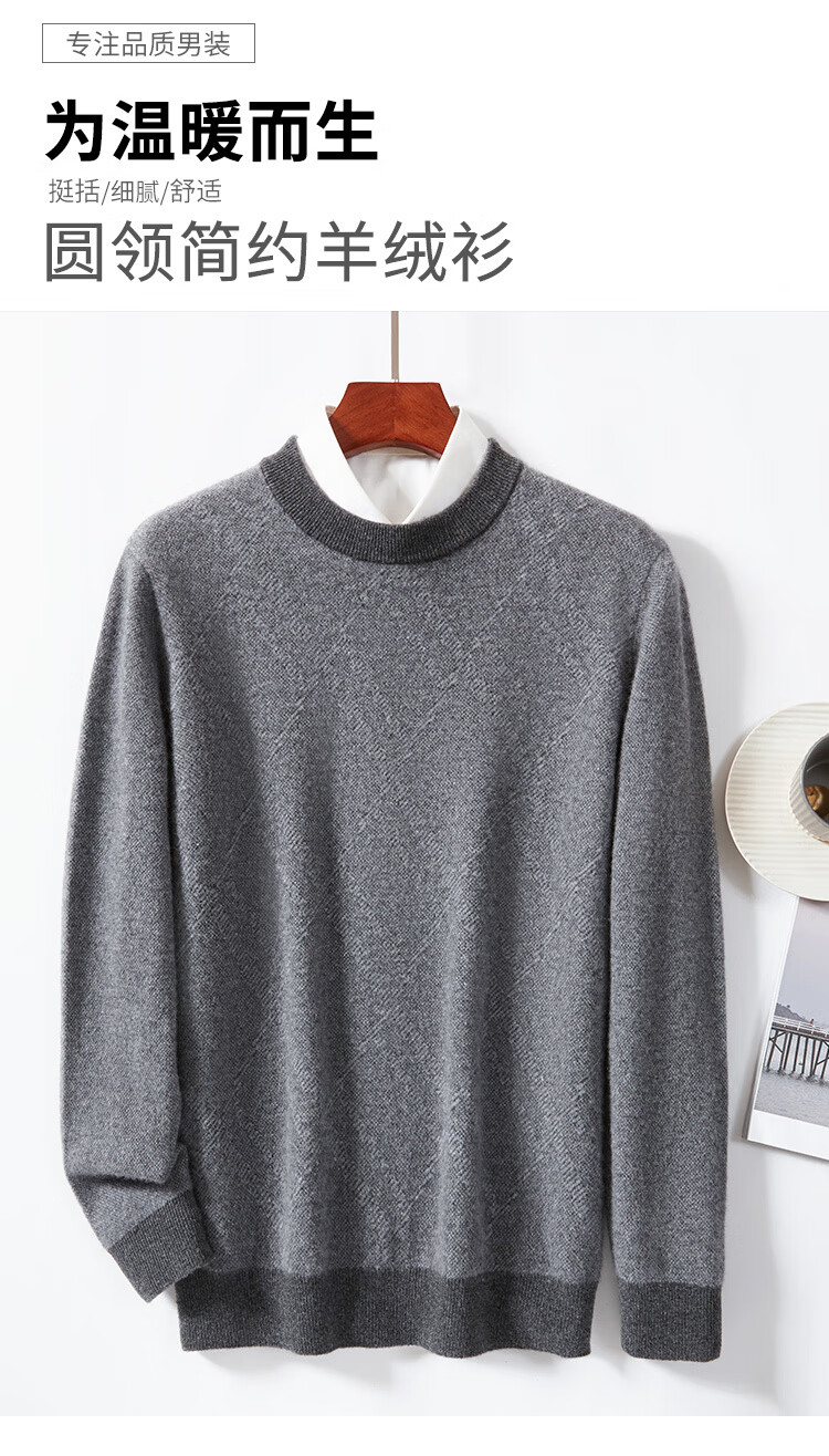 金菊100%山羊绒秋冬清仓款打底保暖套头圆领提花毛衣男式羊绒衫打底衫 花米 M