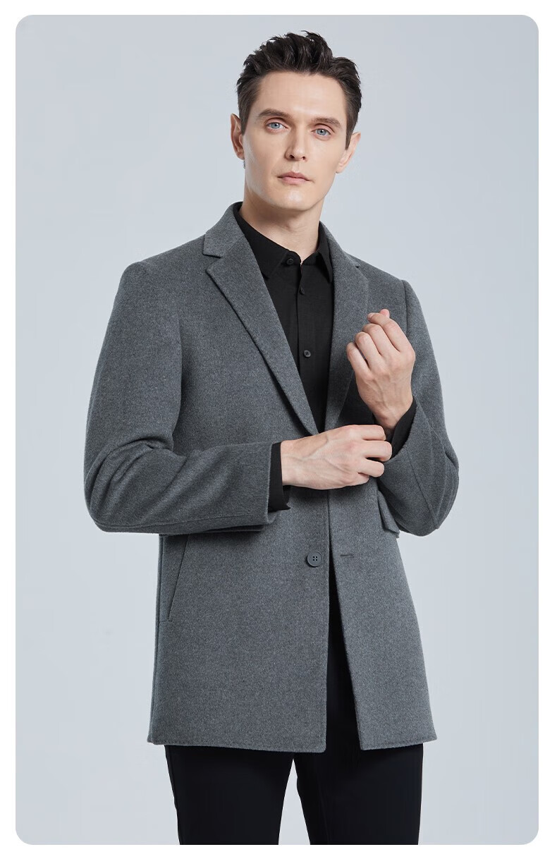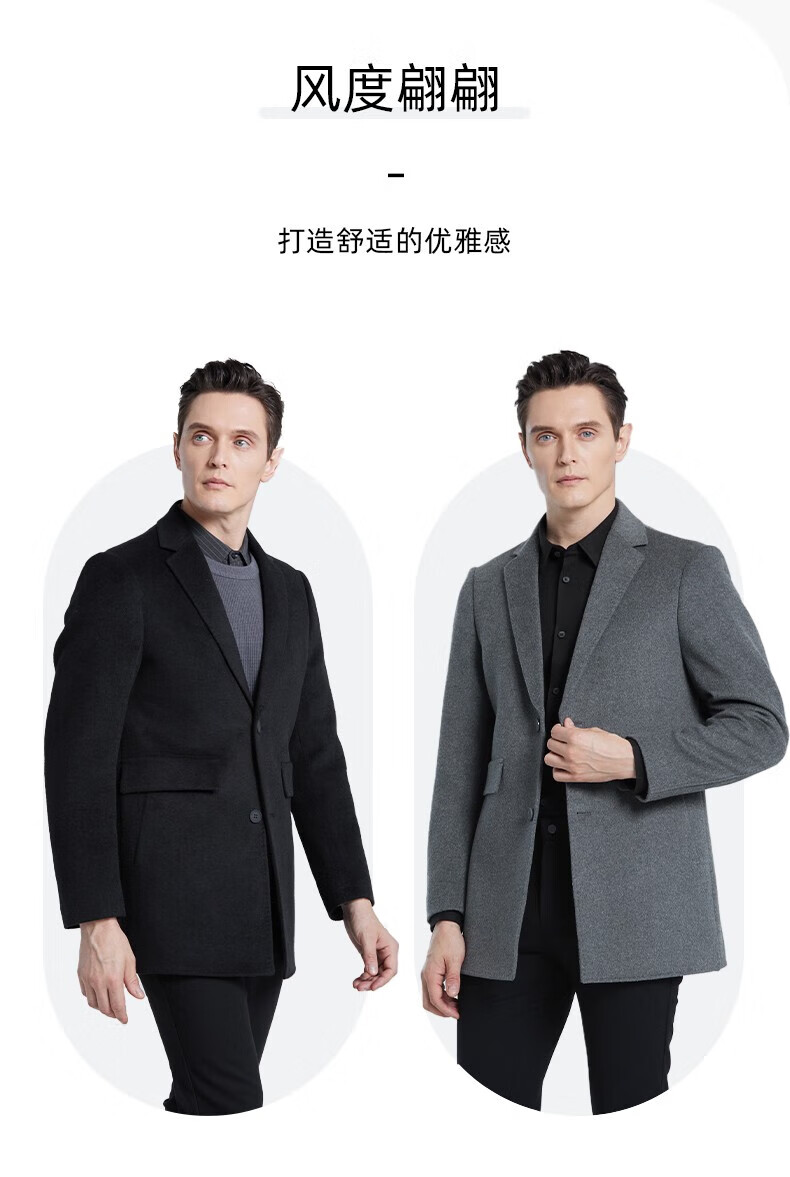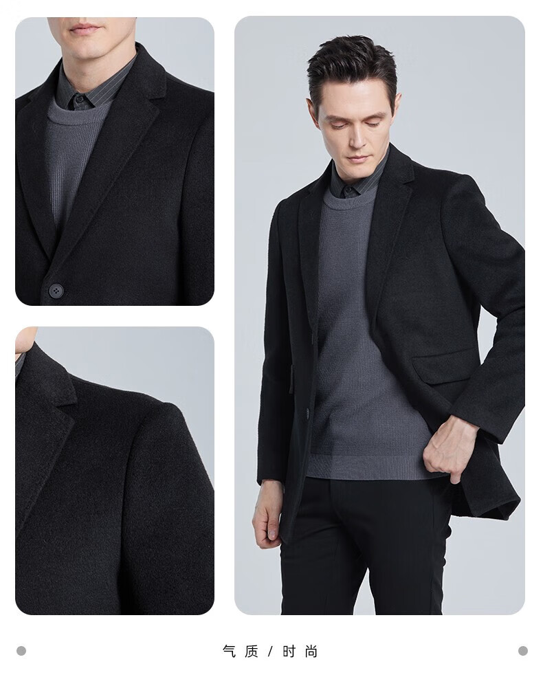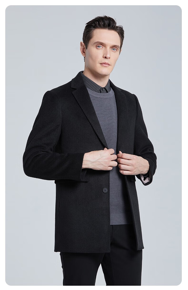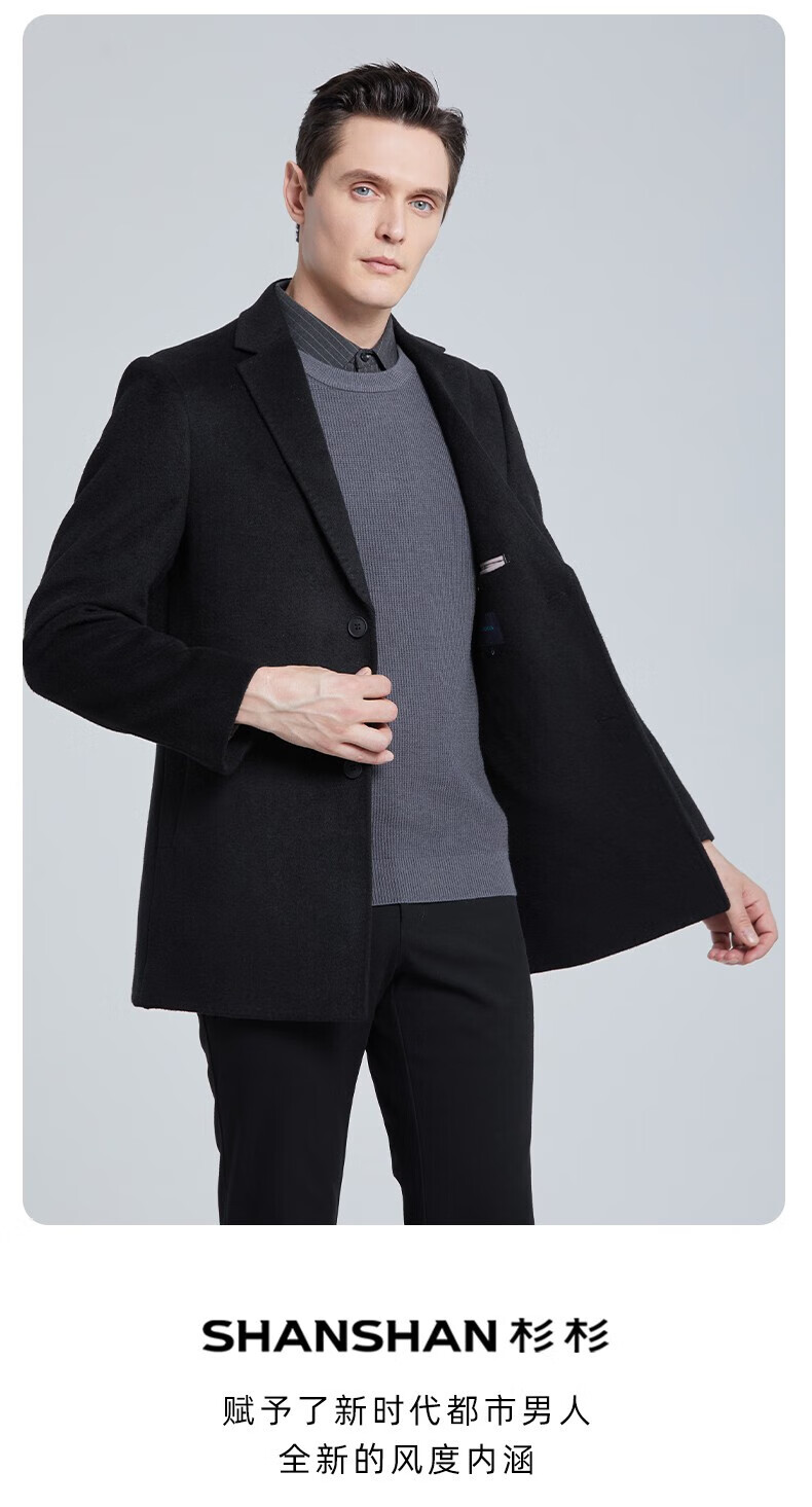 SHANSHAN杉杉羊毛双面呢毛呢大衣男士中青年冬季中长款商务厚款呢子外套男 99黑色H725N6608A M(170/88A)