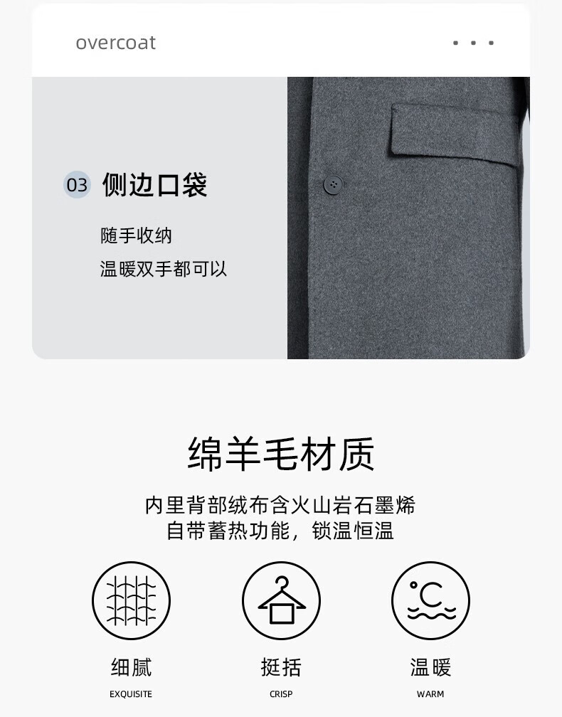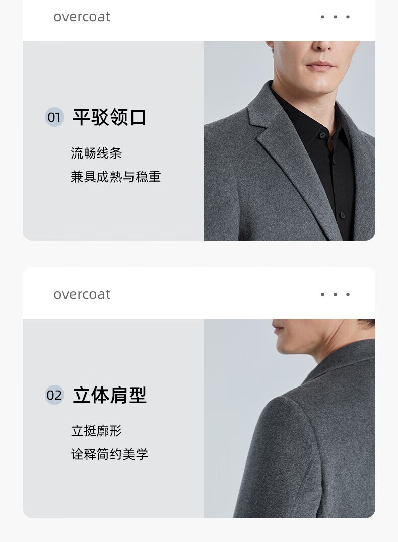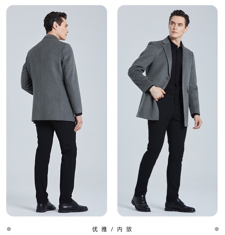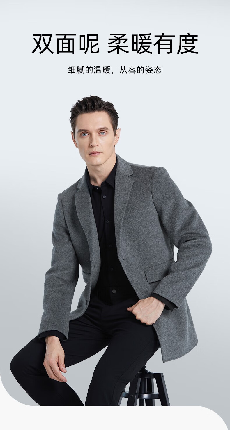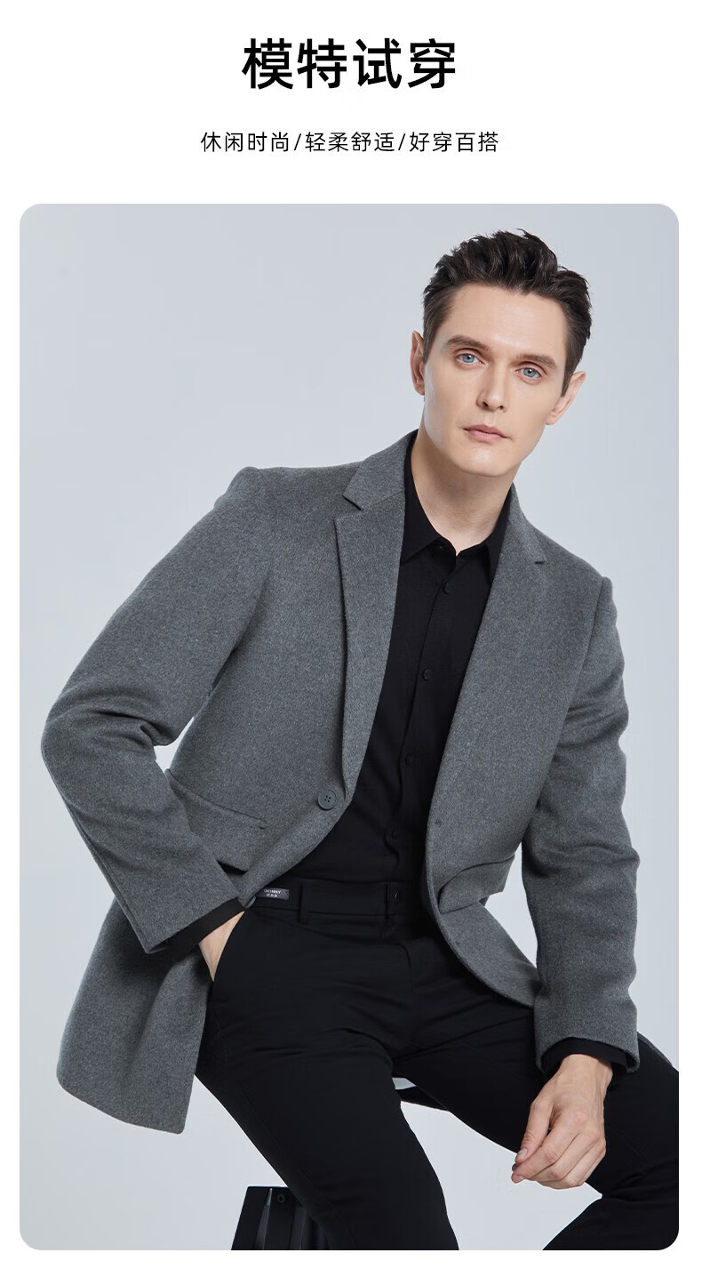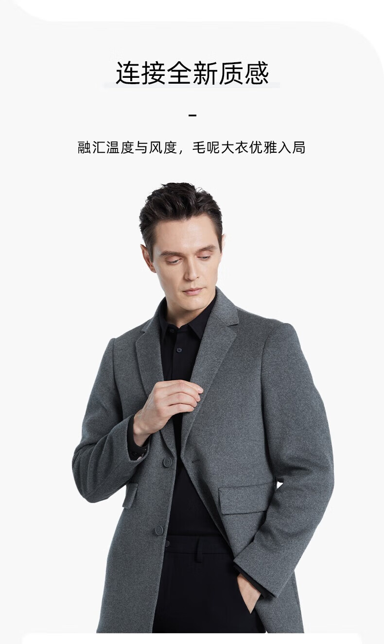 SHANSHAN杉杉羊毛双面呢毛呢大衣男士中青年冬季中长款商务厚款呢子外套男 99黑色H725N6608A M(170/88A)
