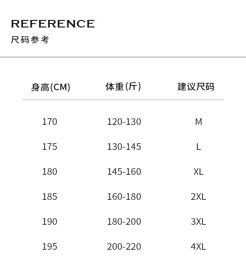 China (cm) 165 / 88-90 170 / 96-98 175 / 108-110 180 / 118-122 185 / 126-130